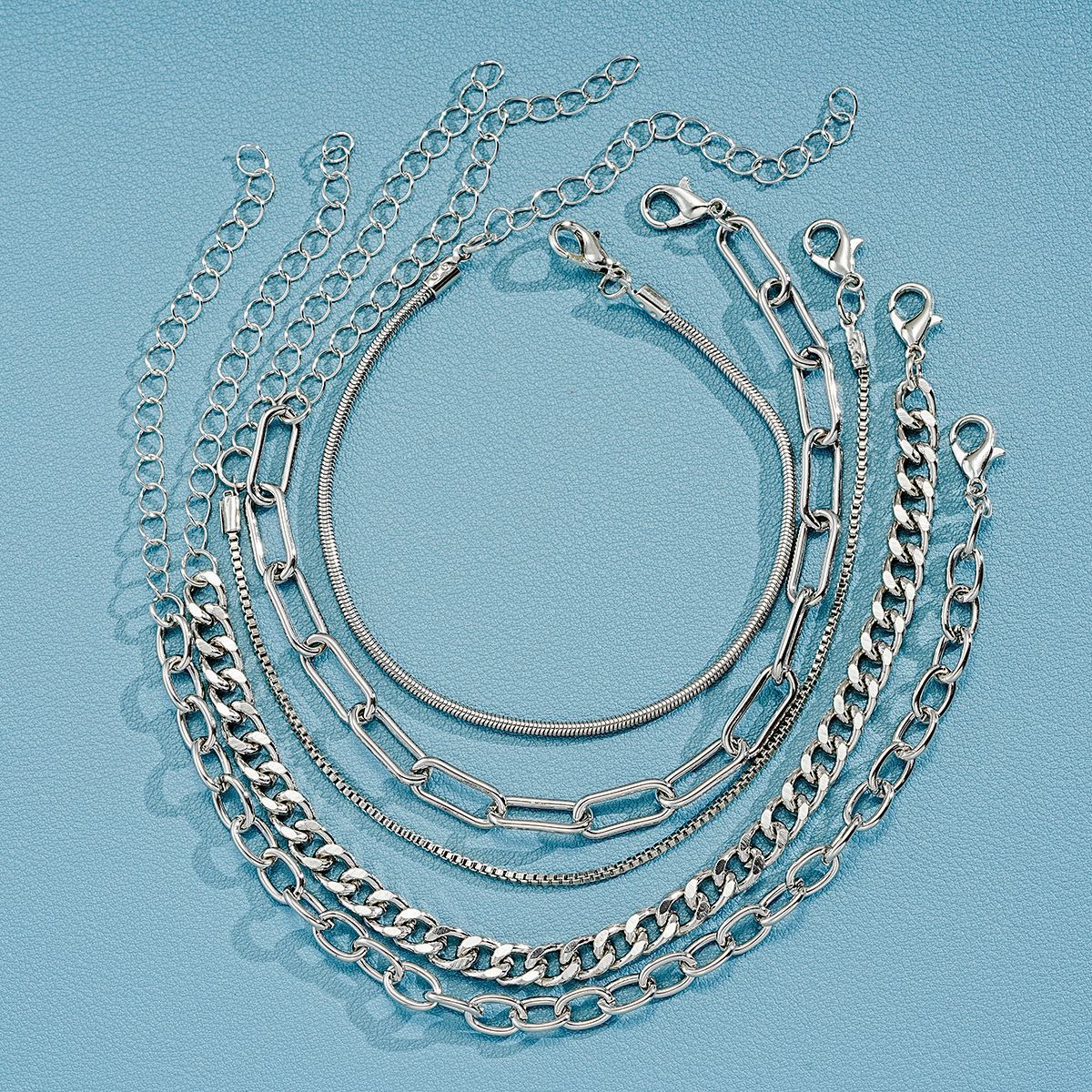 跨境时尚多层金属链条手链5件套 ins简约银色百搭手链