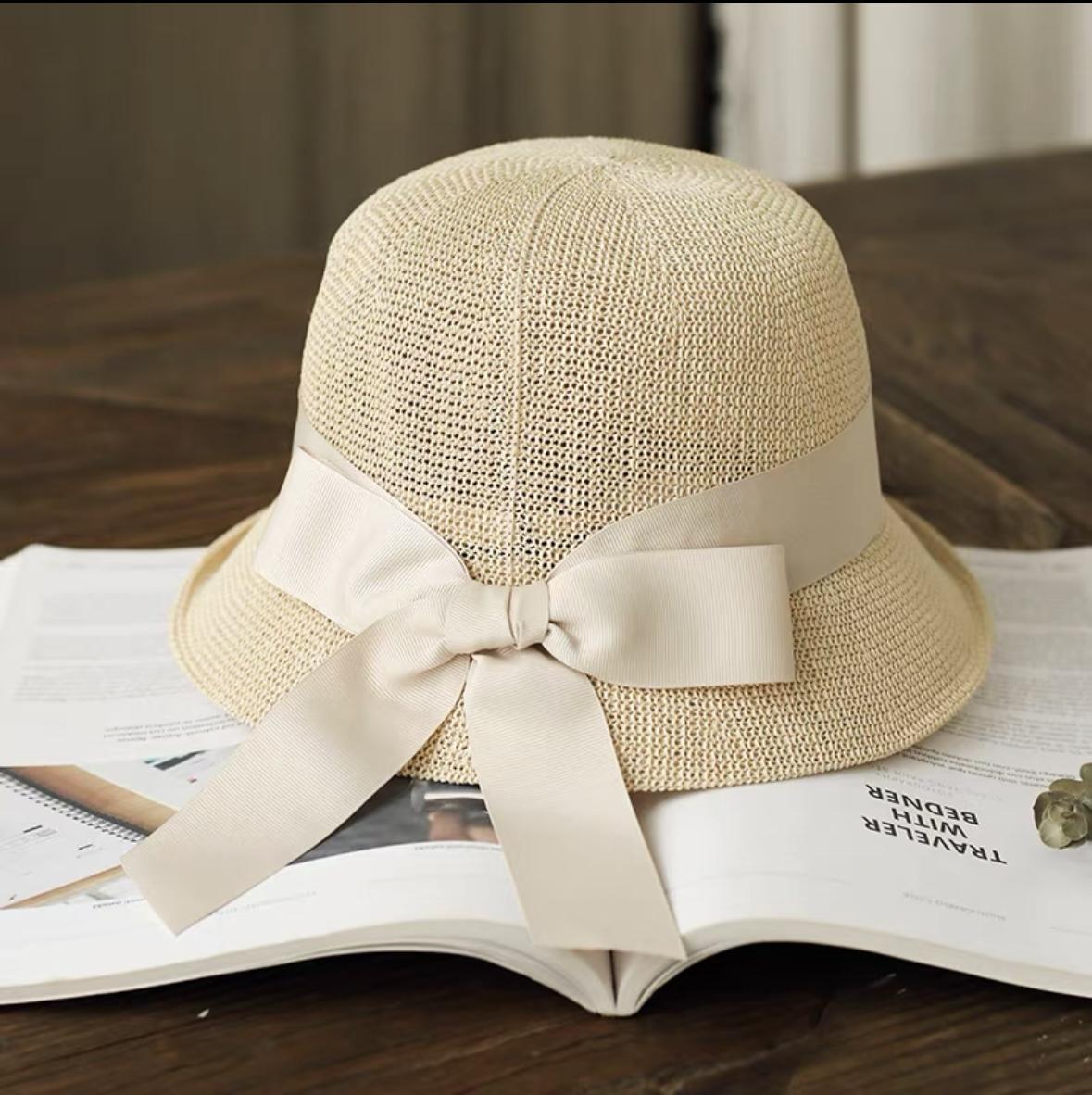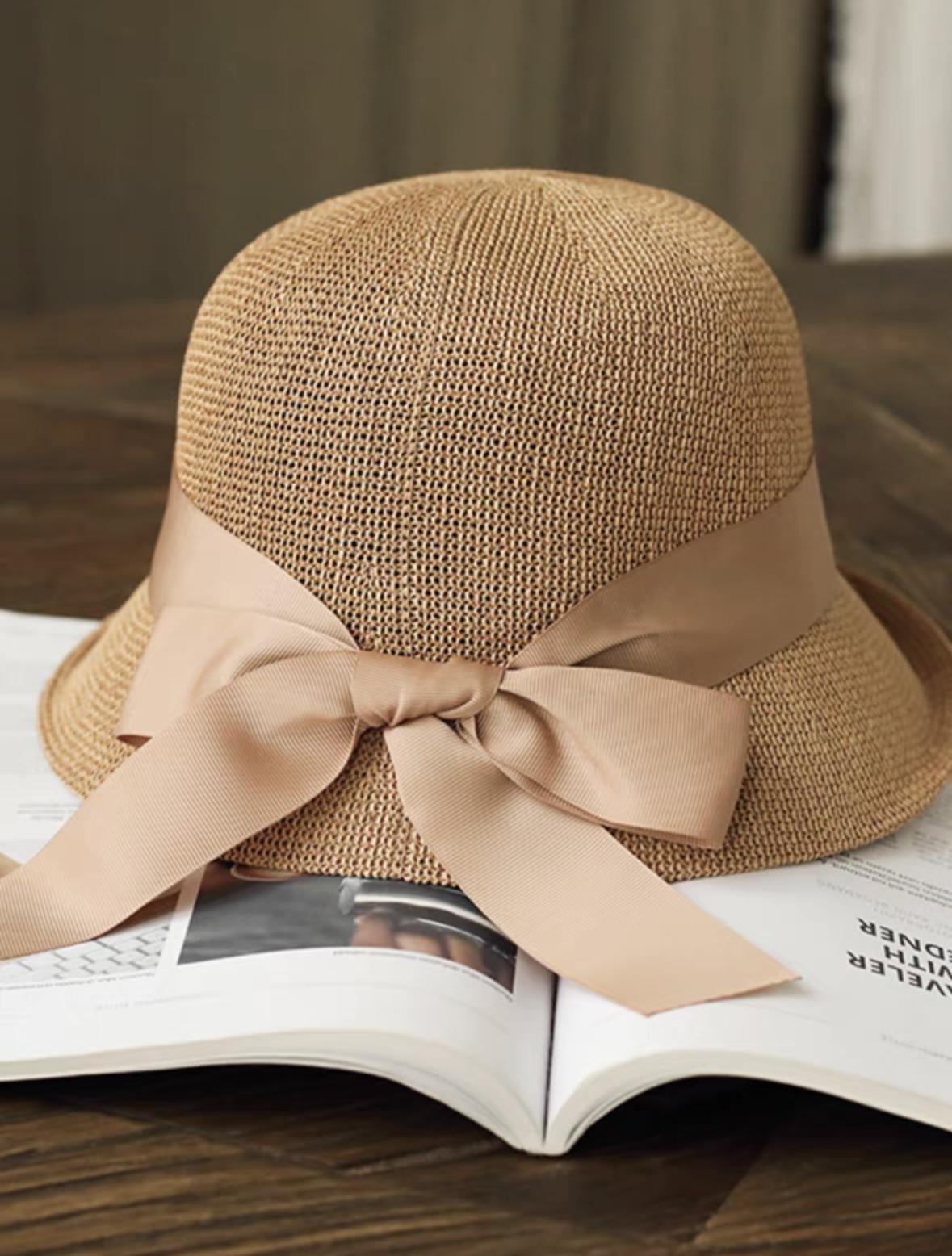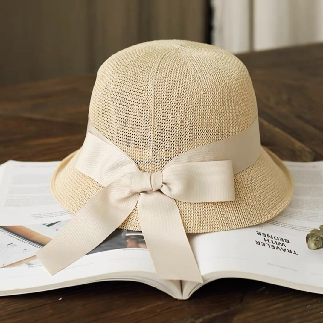 太阳帽女夏季防晒遮阳帽子甜美渔夫帽透气蕾丝蝴蝶结大帽檐草帽女