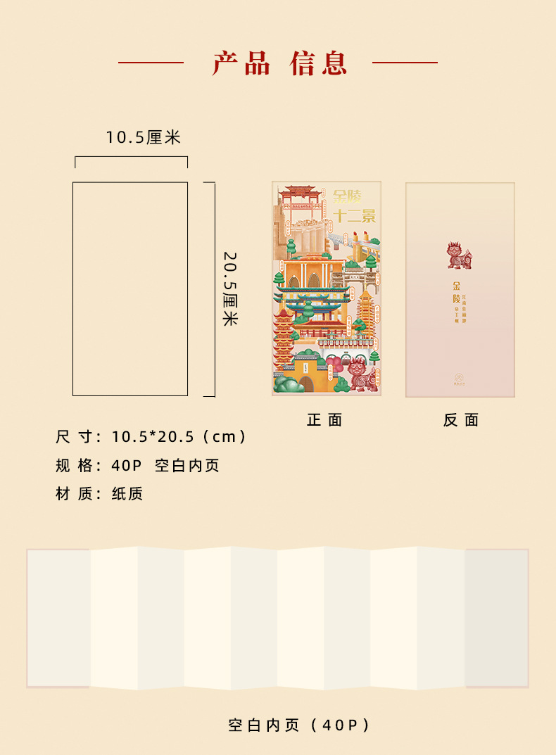 金陵十二景旅游打卡盖章集章本南京城市旅游奏折本风琴本经折折页