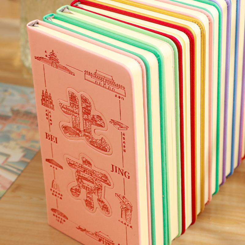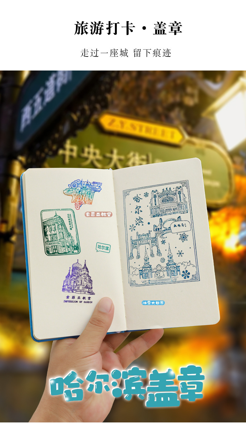 高端皮革记事本城市旅游打卡本盖章笔记本冰箱贴皮面本集章打卡本
