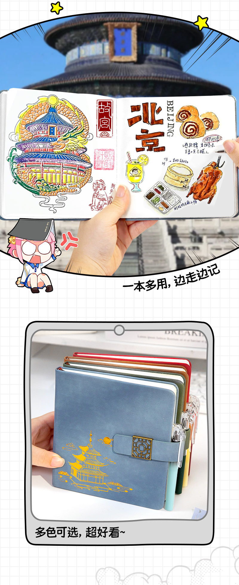 旅行盖章本旅游盖章本高颜值打卡集章本南京北京博物馆故宫景点空