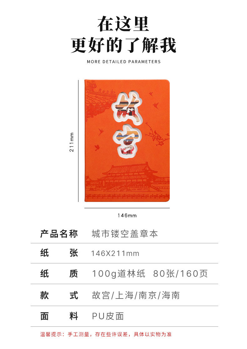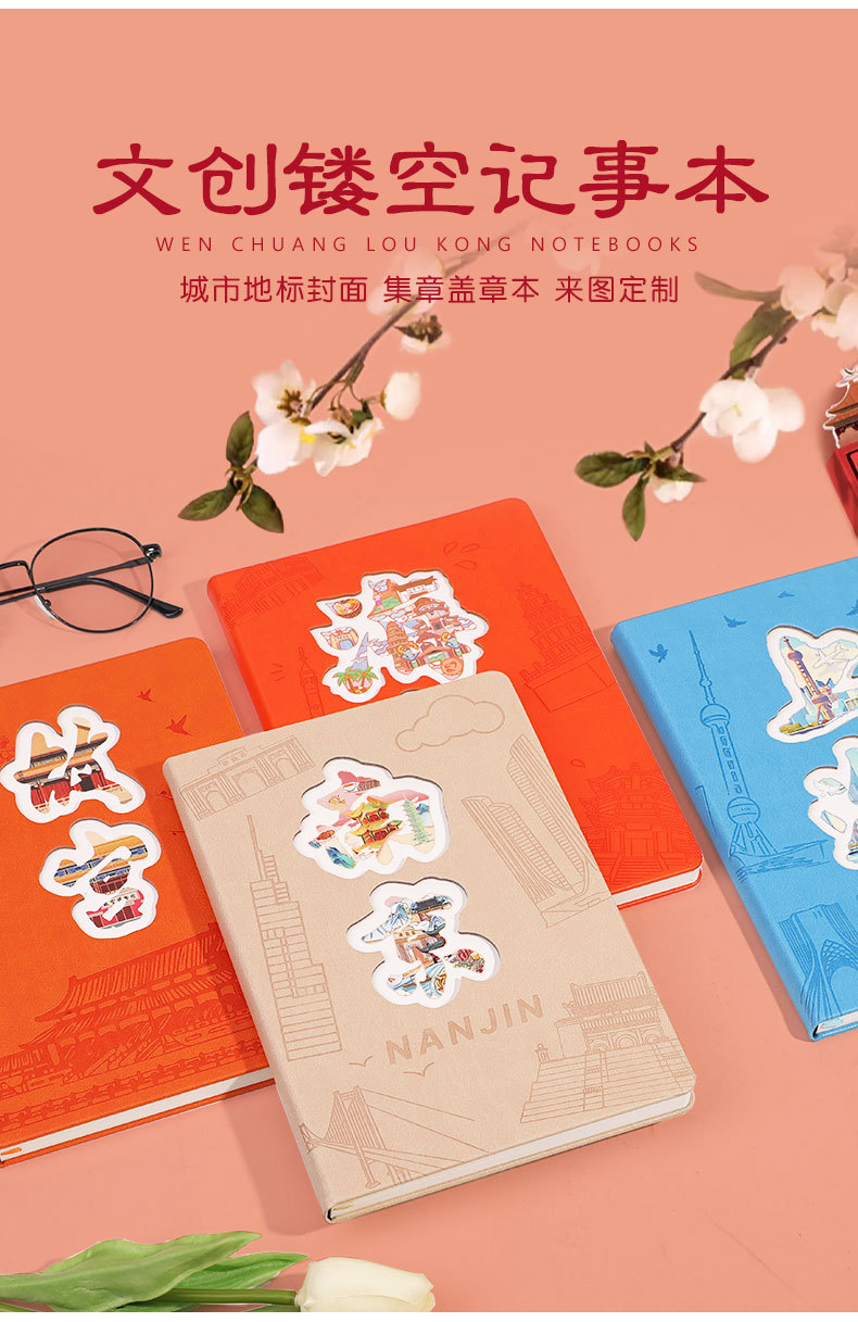 城市A5笔记本盖章本打卡本旅行本软皮外壳空白本集章册印章本