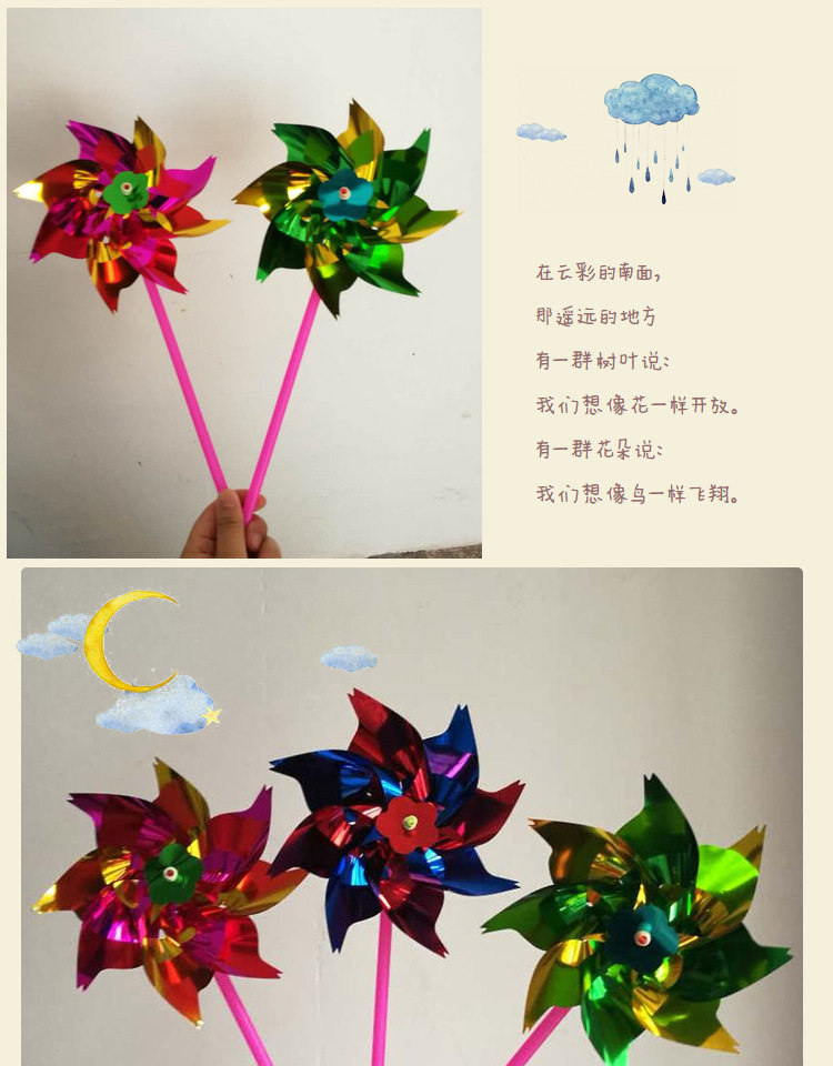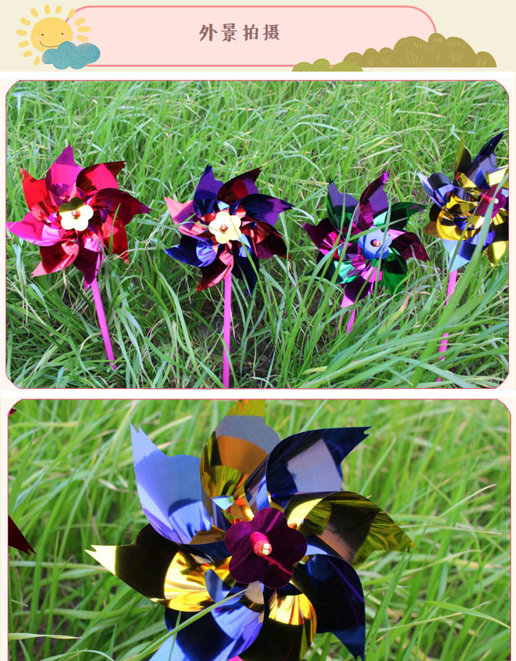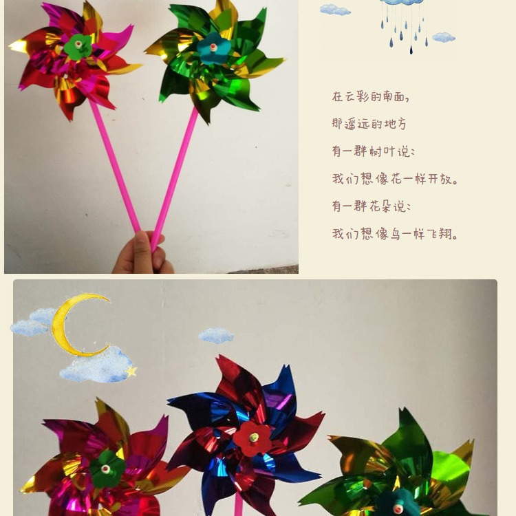塑料薄片小风车广场七彩装饰diy幼儿园地摊儿童卡通玩具厂家批发