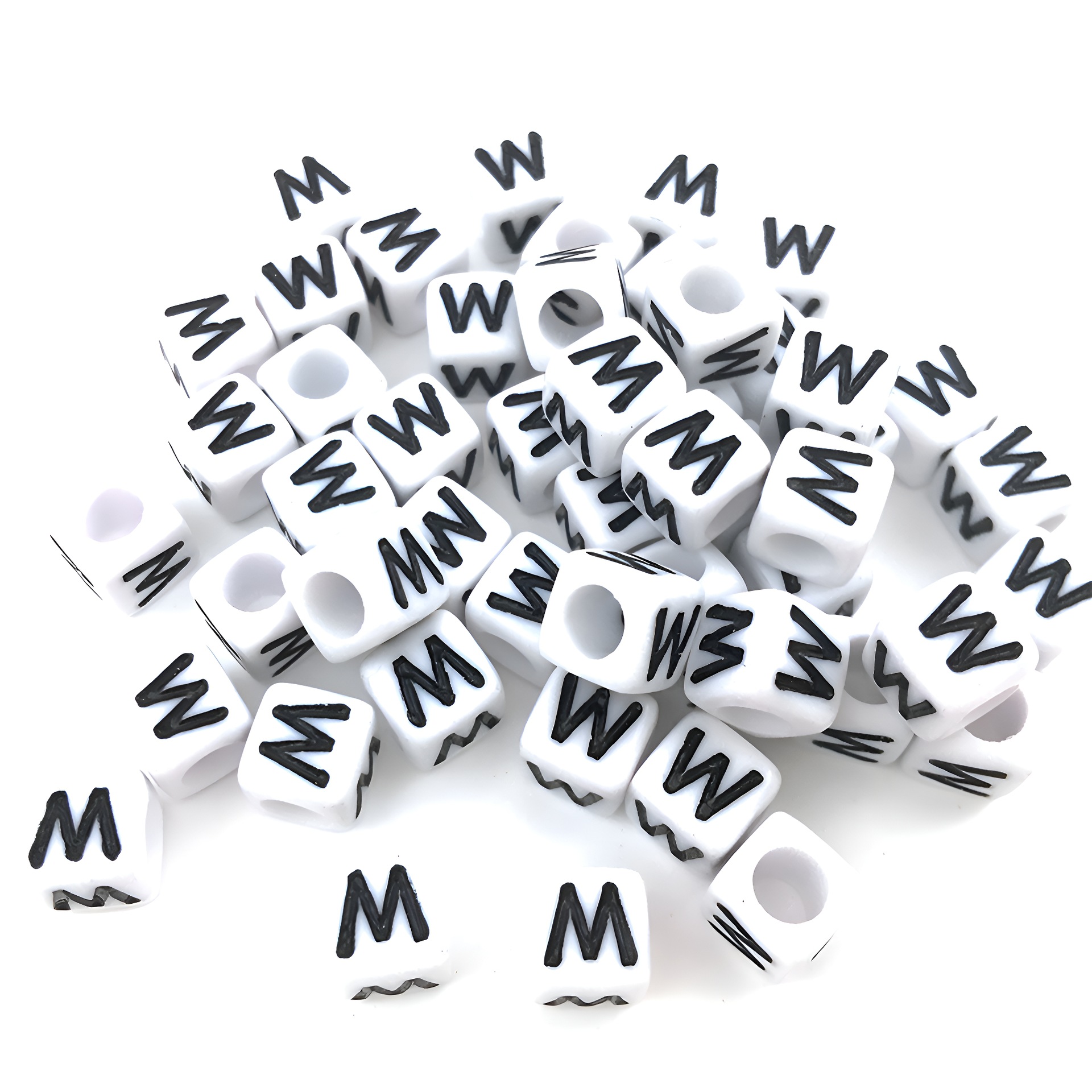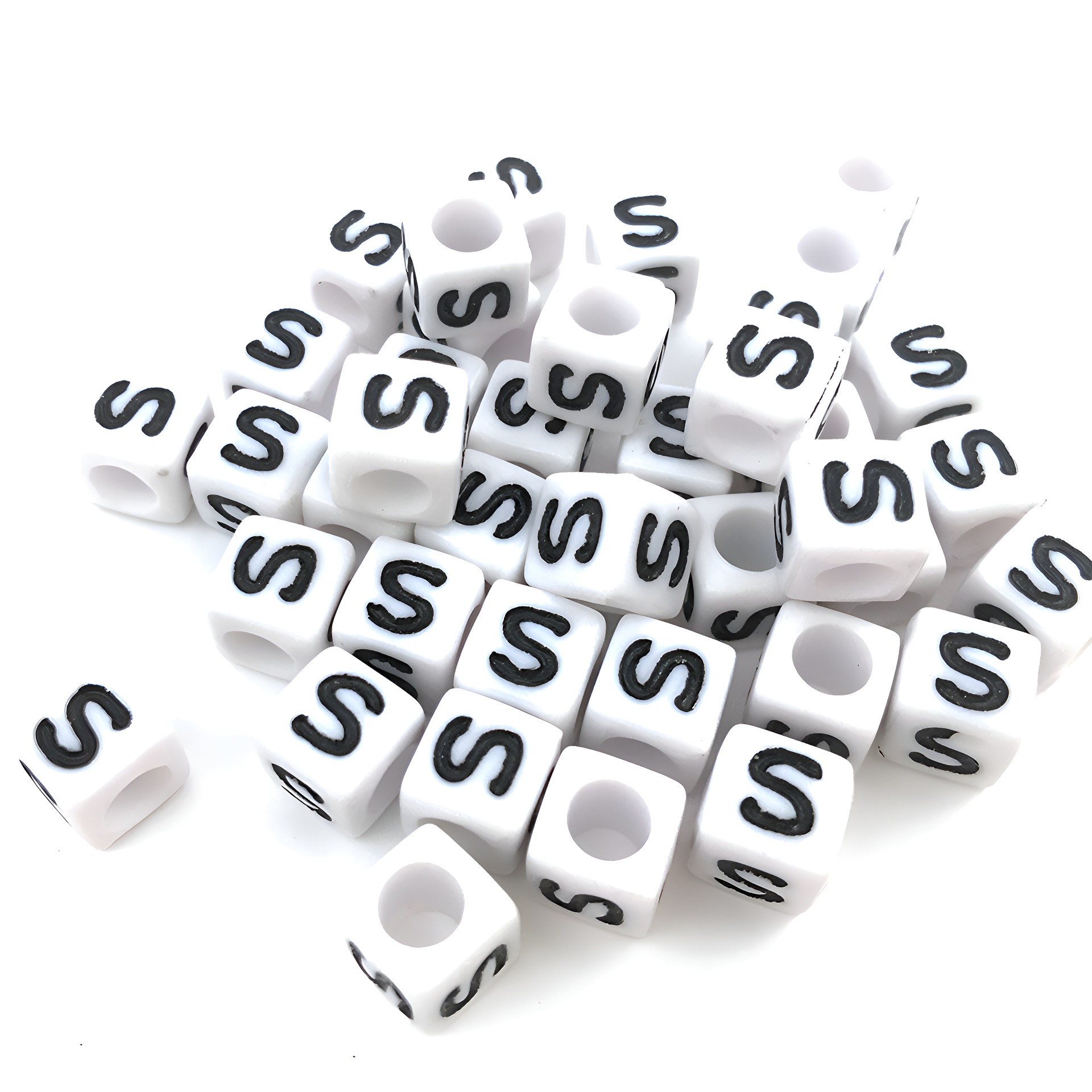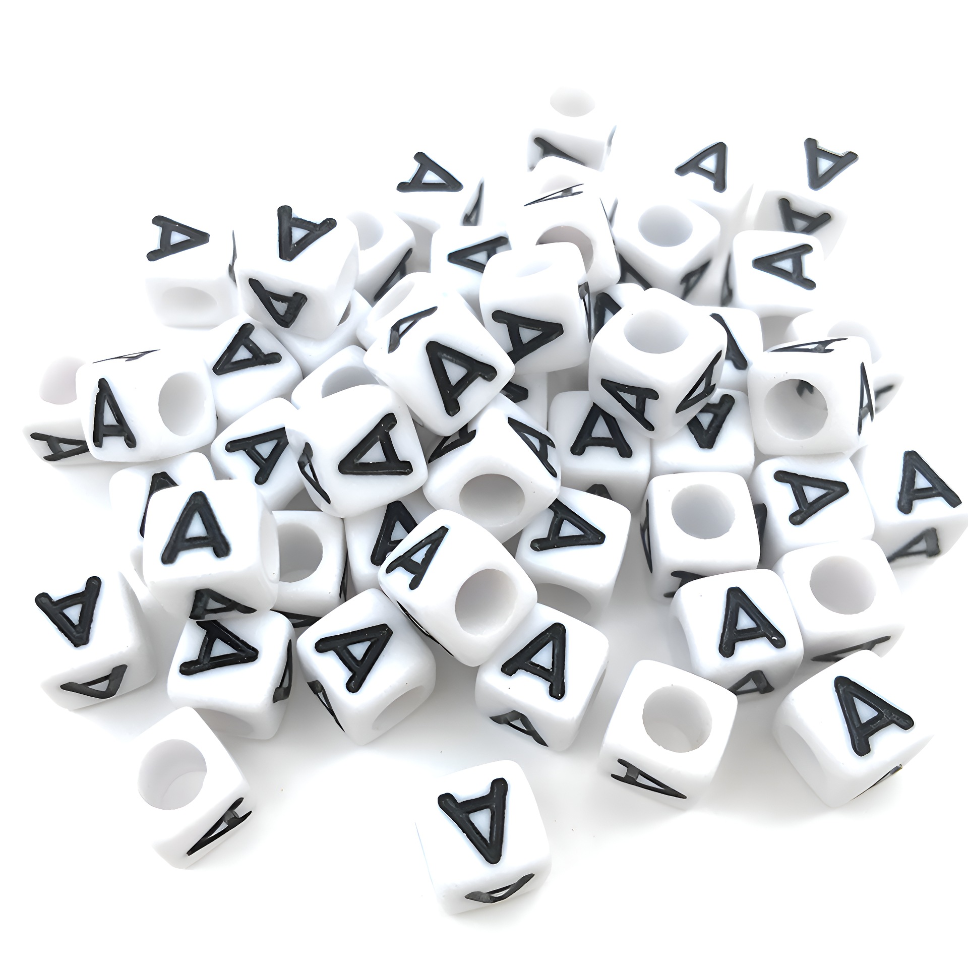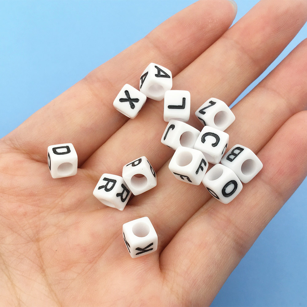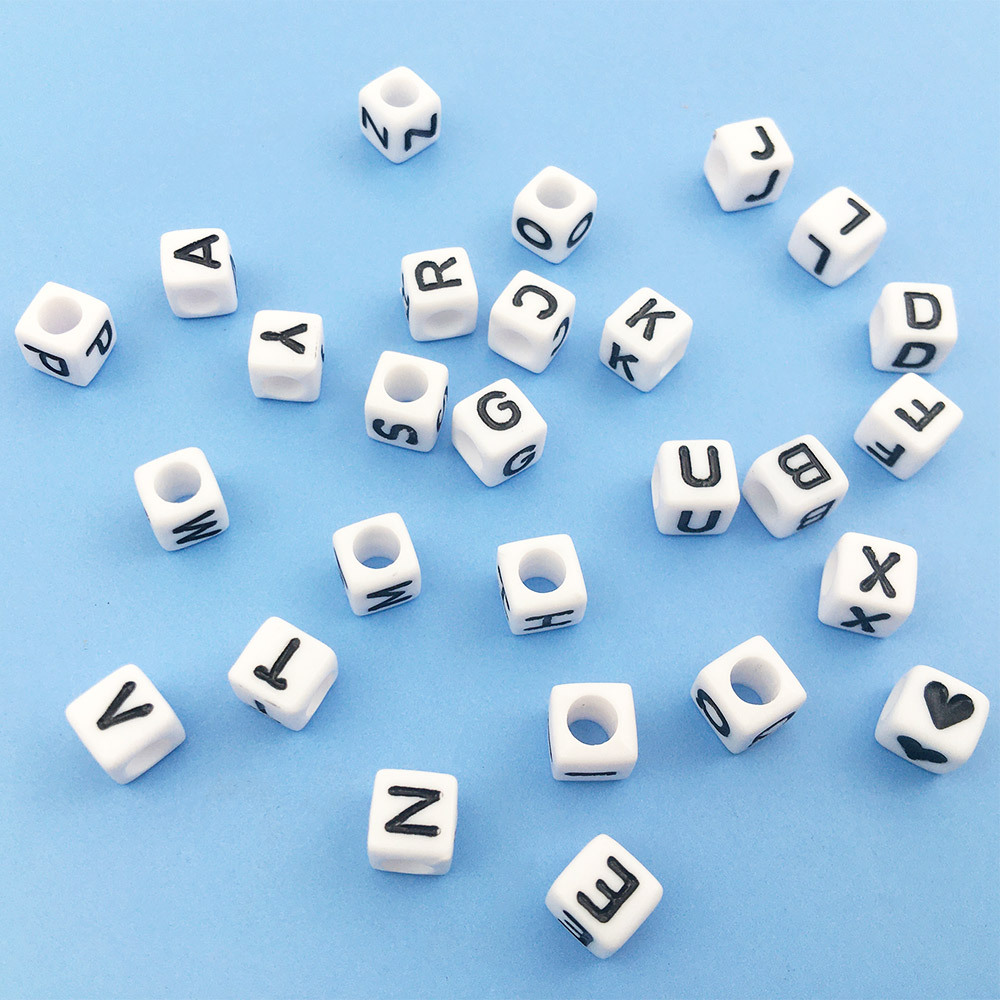 6x6mm白底黑色字母亚克力方块珠DIY串珠手链项链散珠饰品配件批发