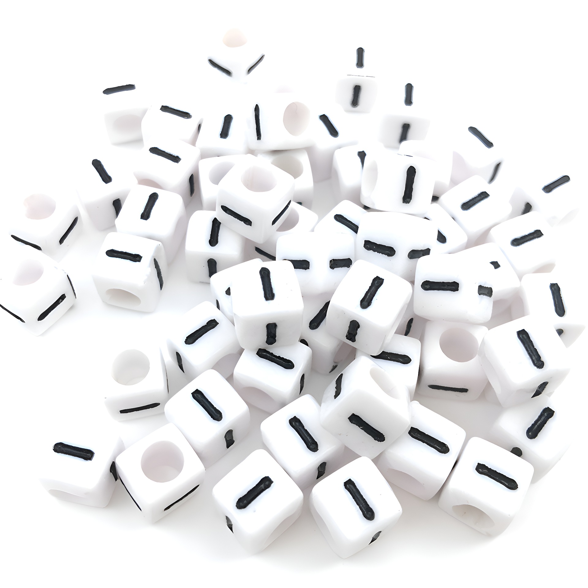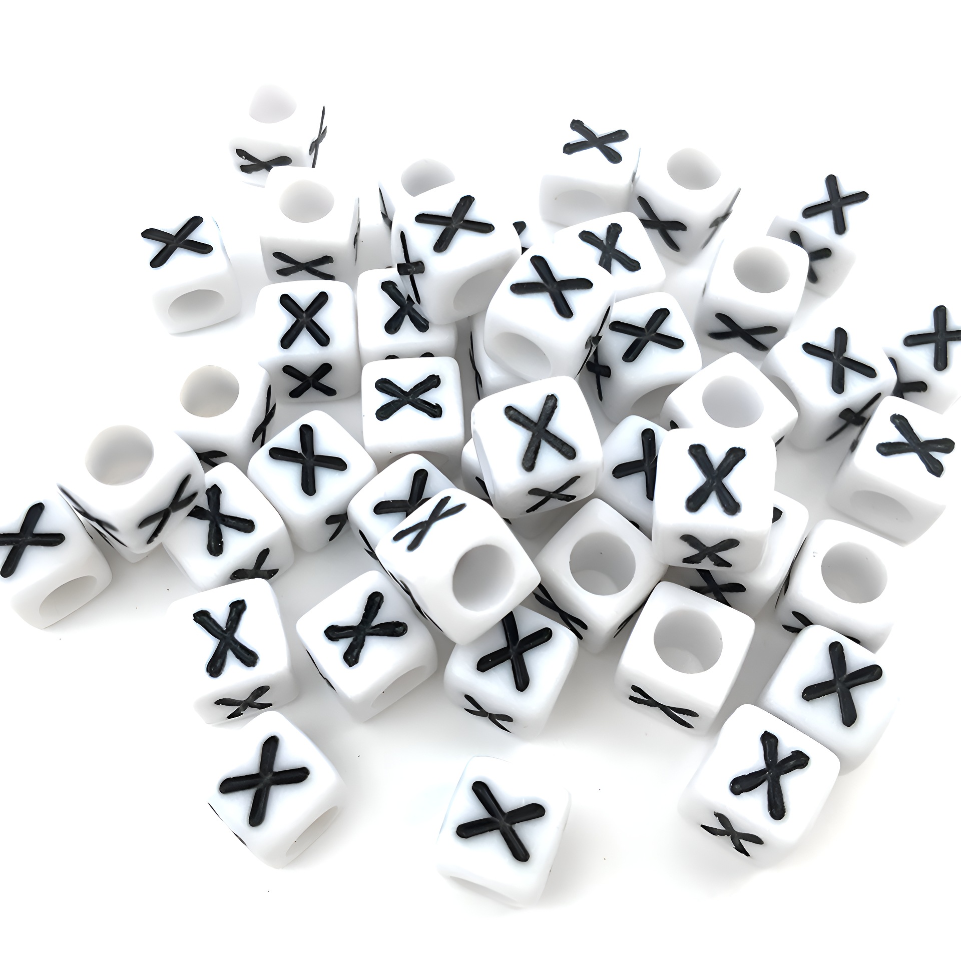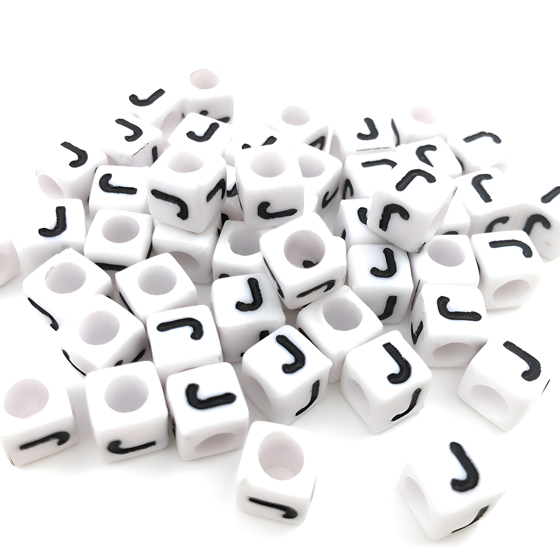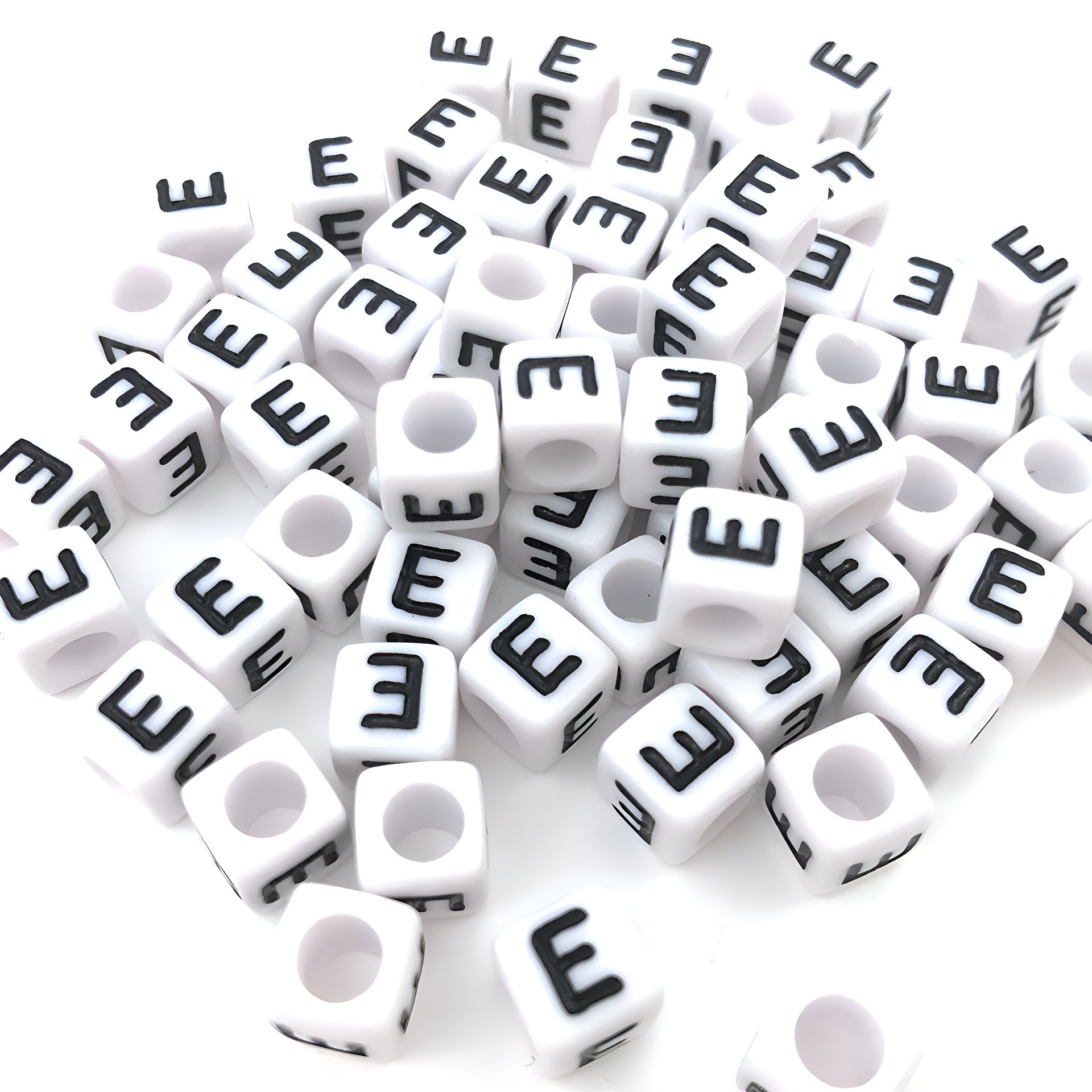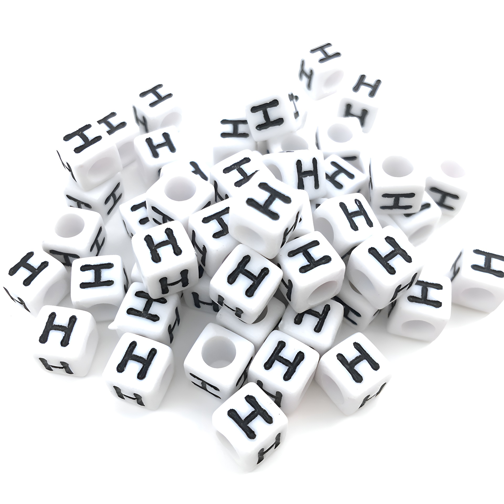 6x6mm白底黑色字母亚克力方块珠DIY串珠手链项链散珠饰品配件批发