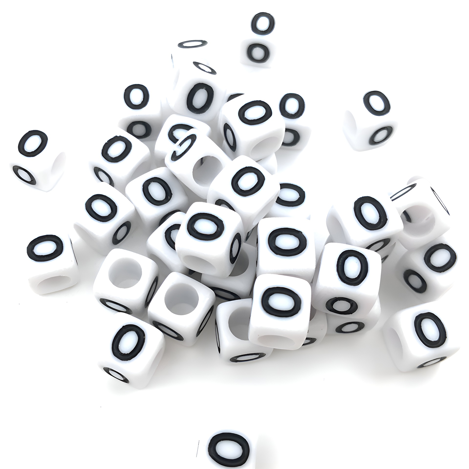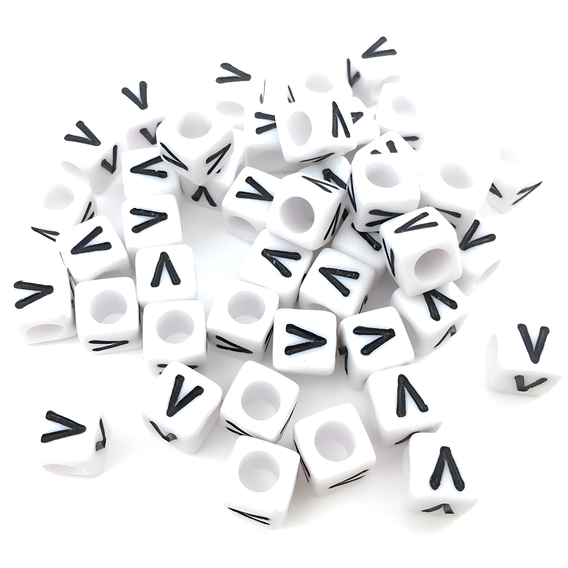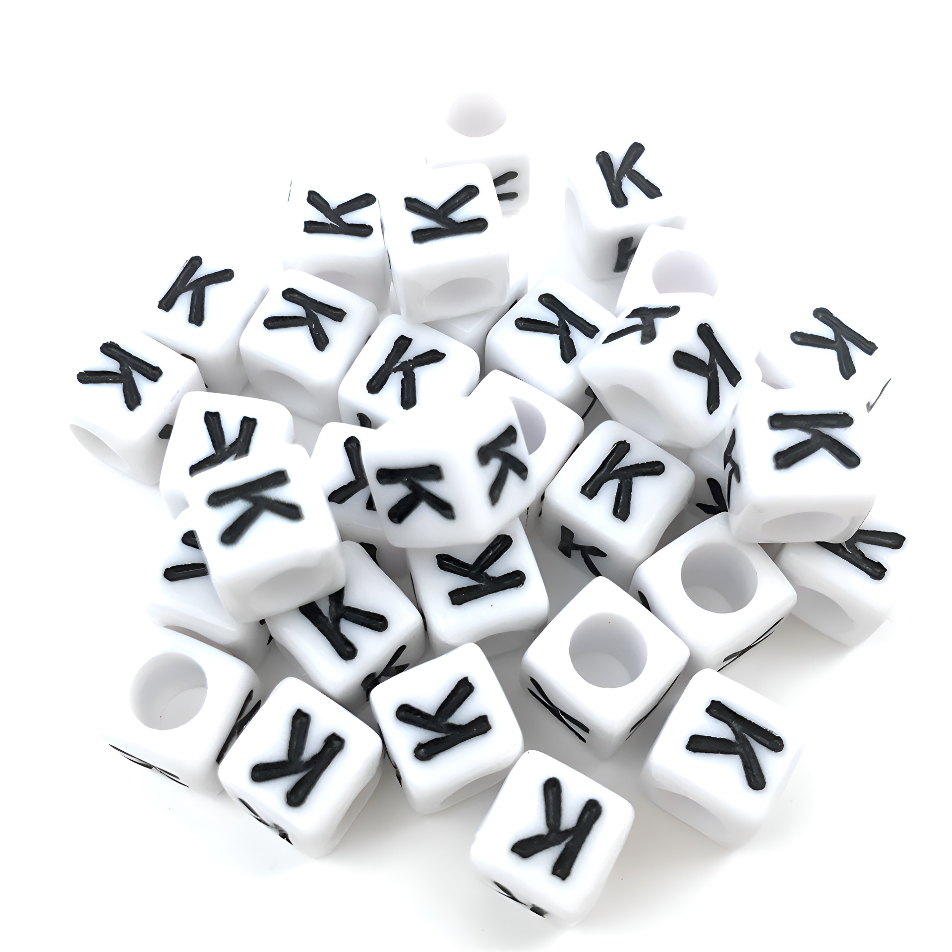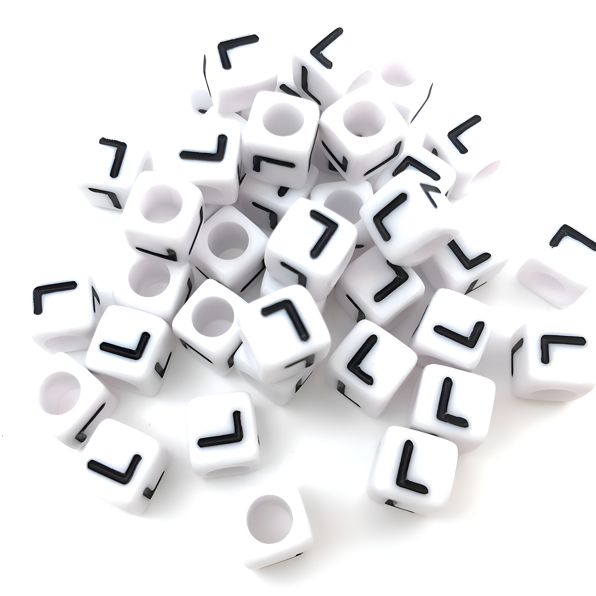 6x6mm白底黑色字母亚克力方块珠DIY串珠手链项链散珠饰品配件批发