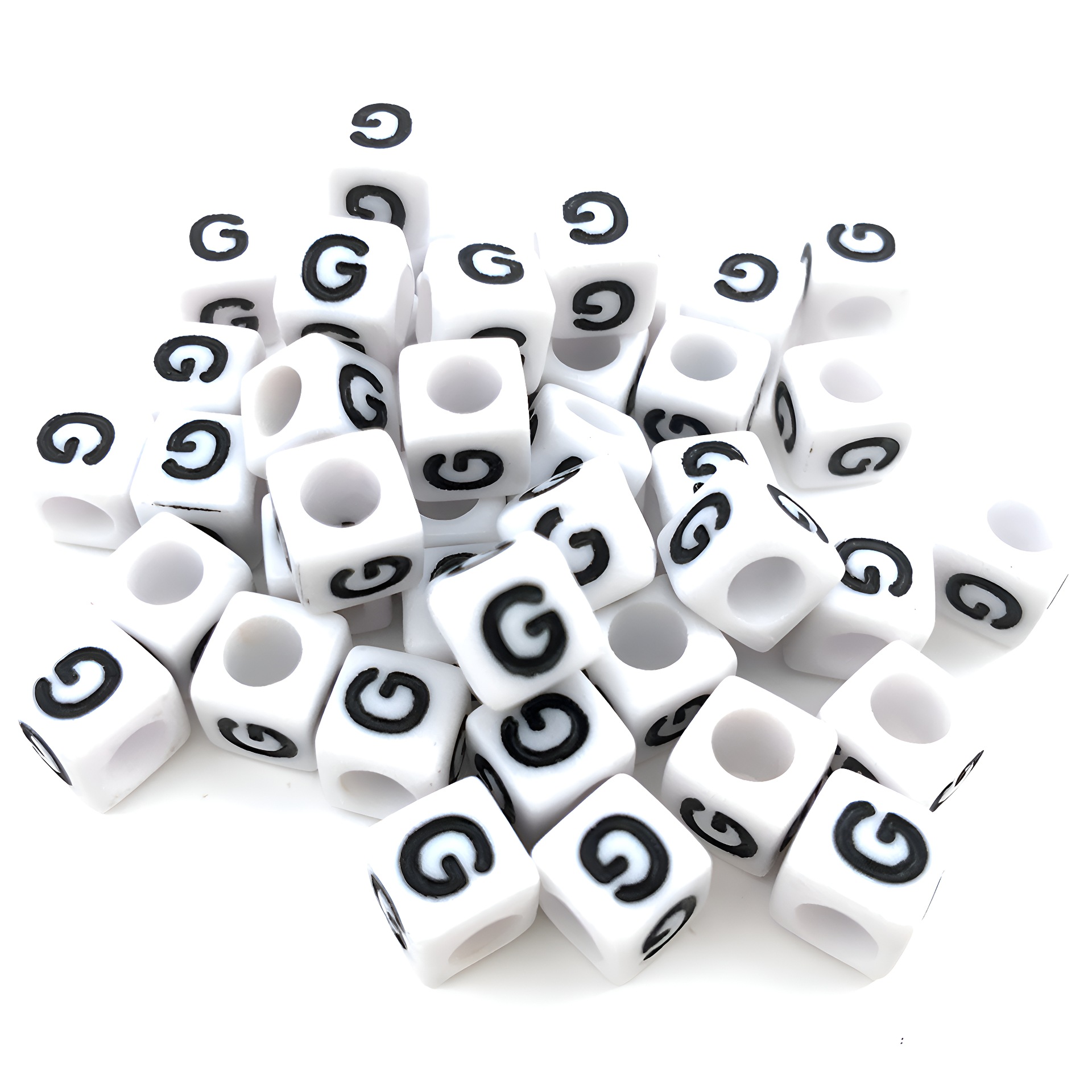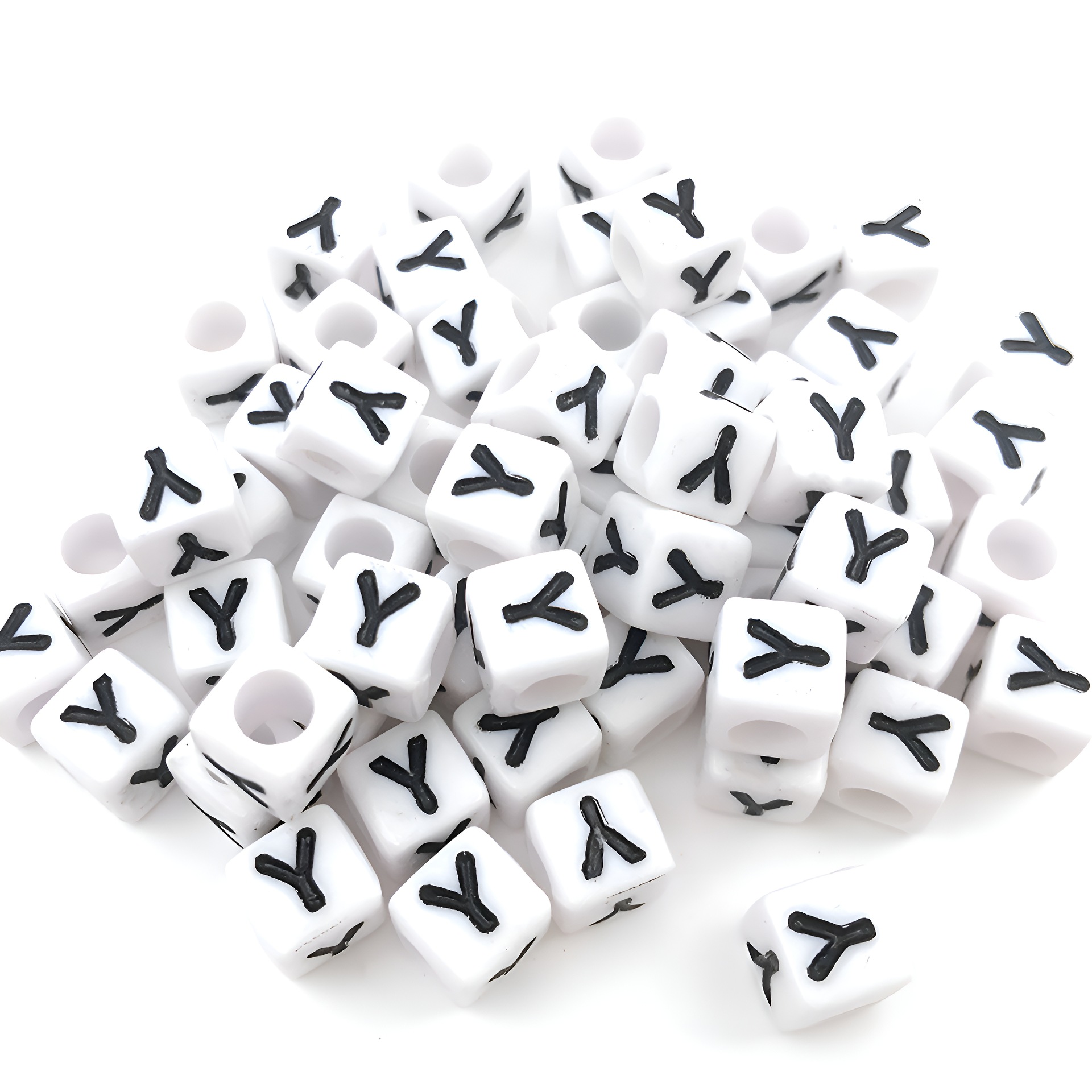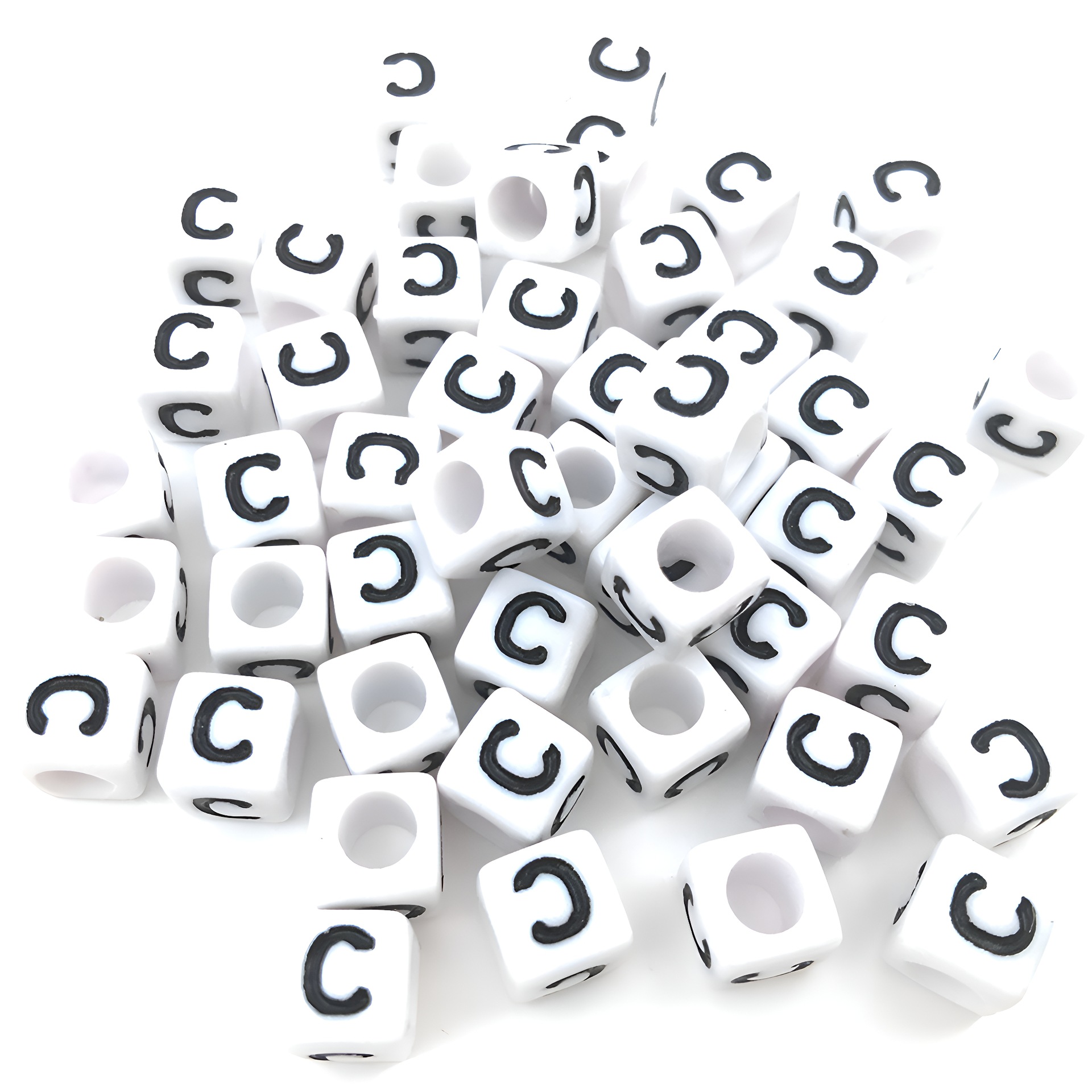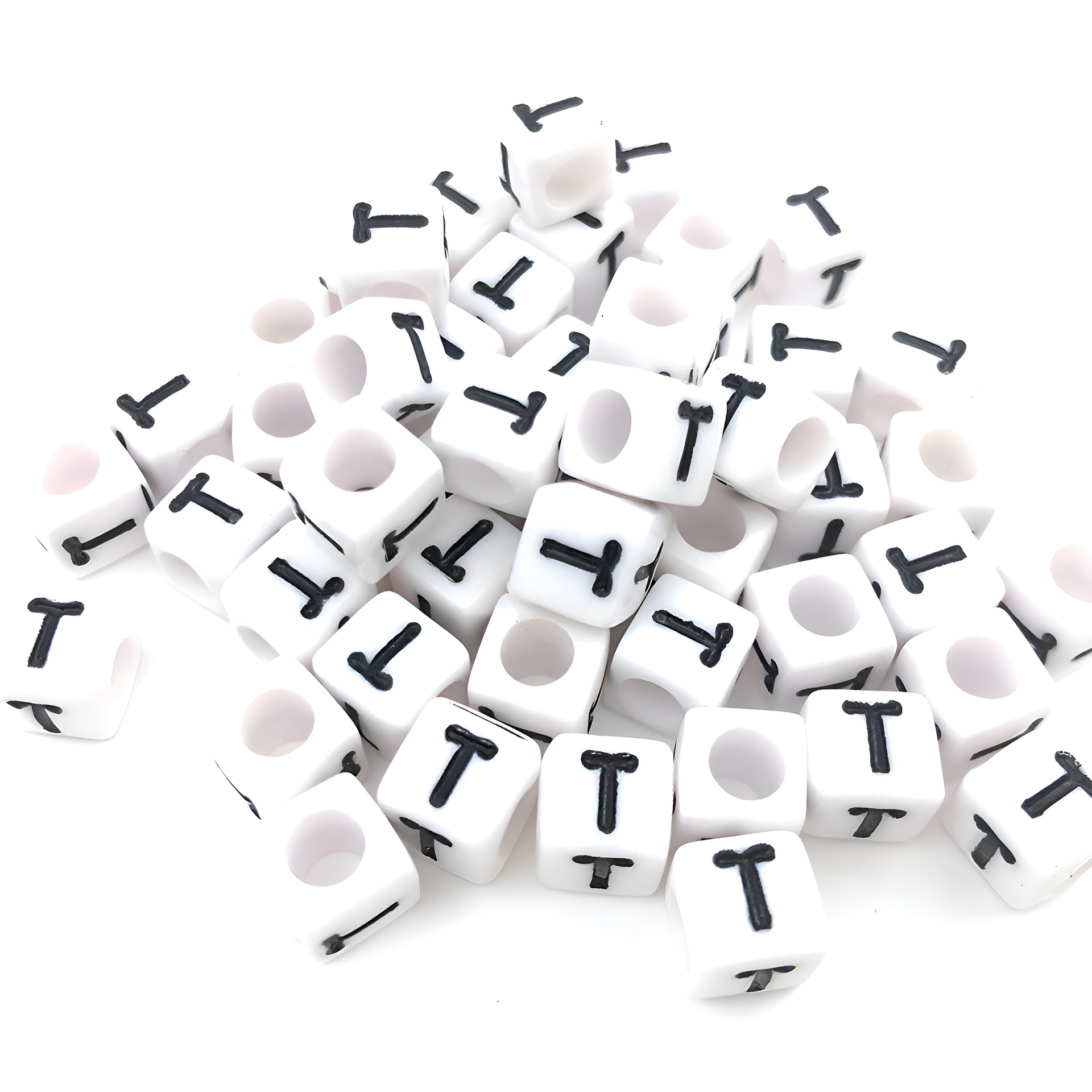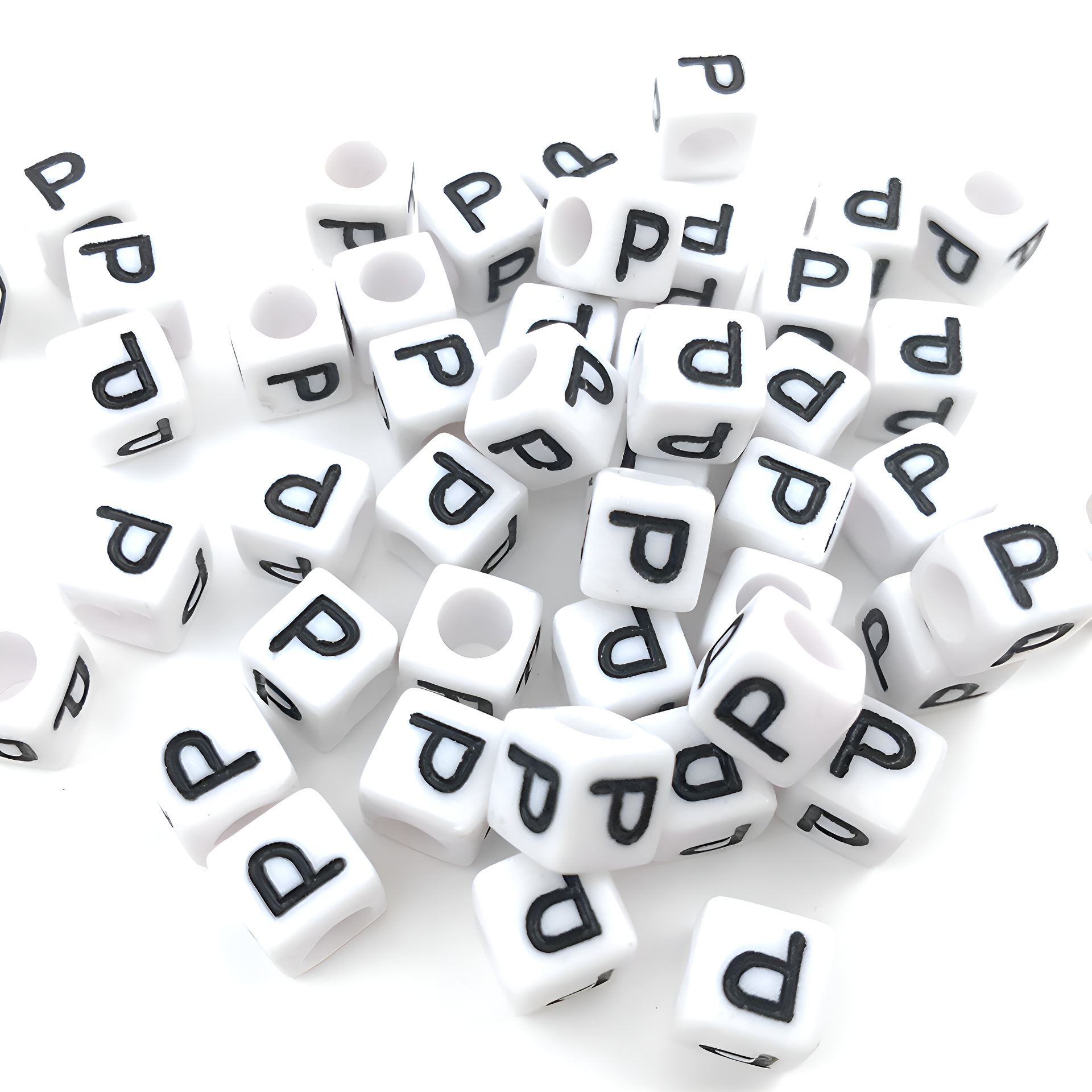 6x6mm白底黑色字母亚克力方块珠DIY串珠手链项链散珠饰品配件批发