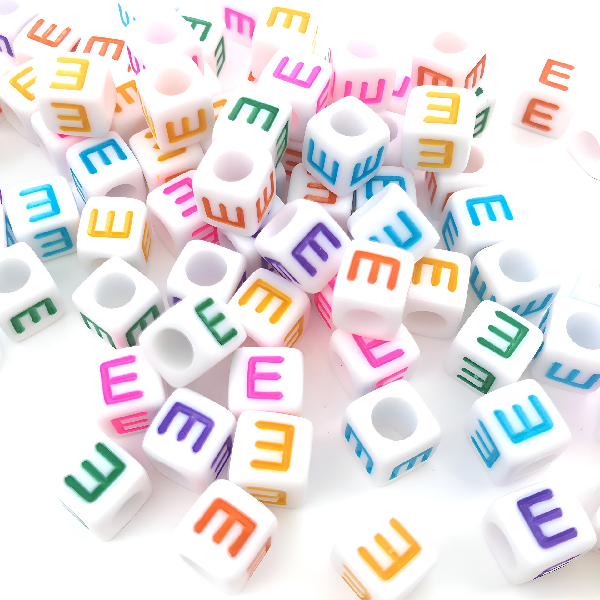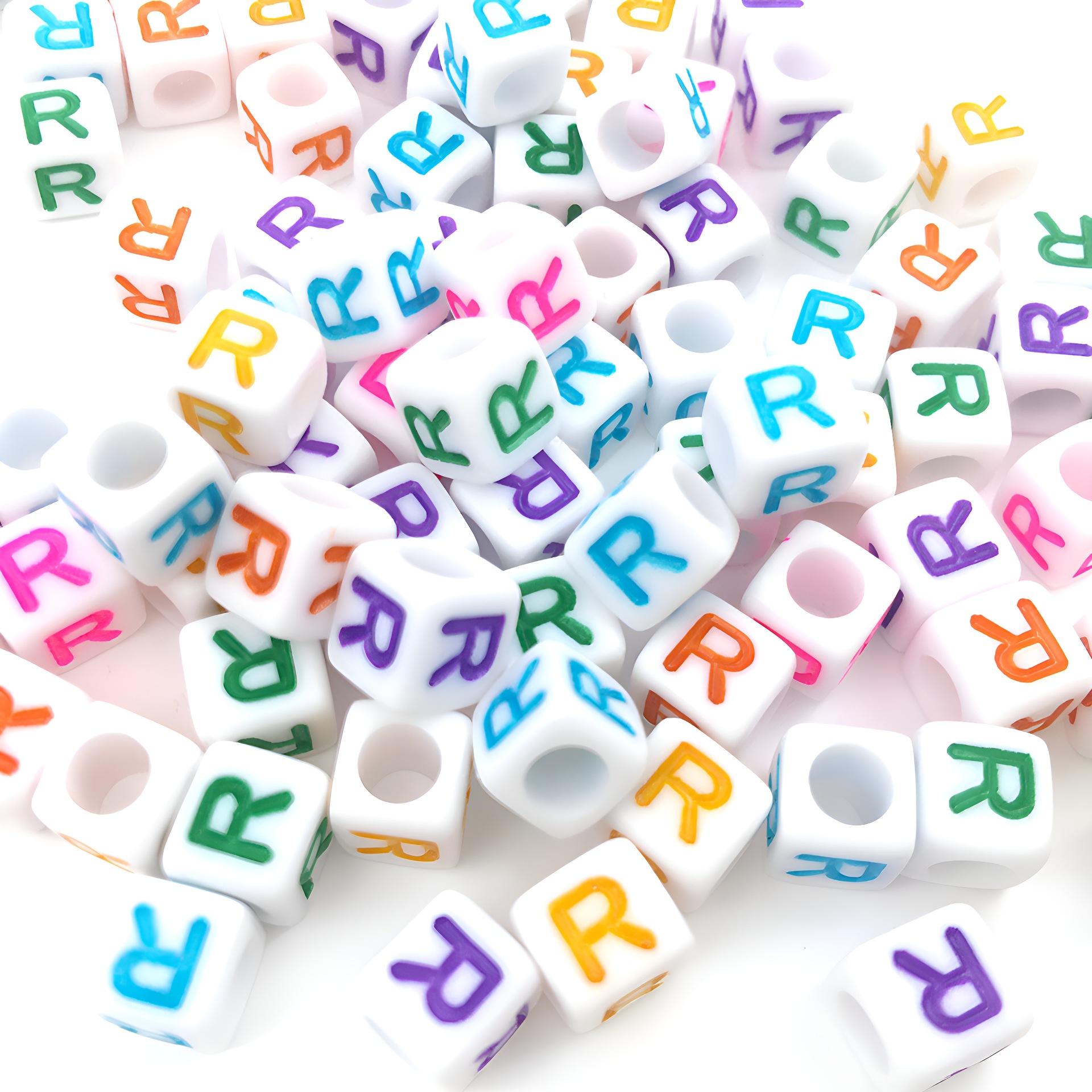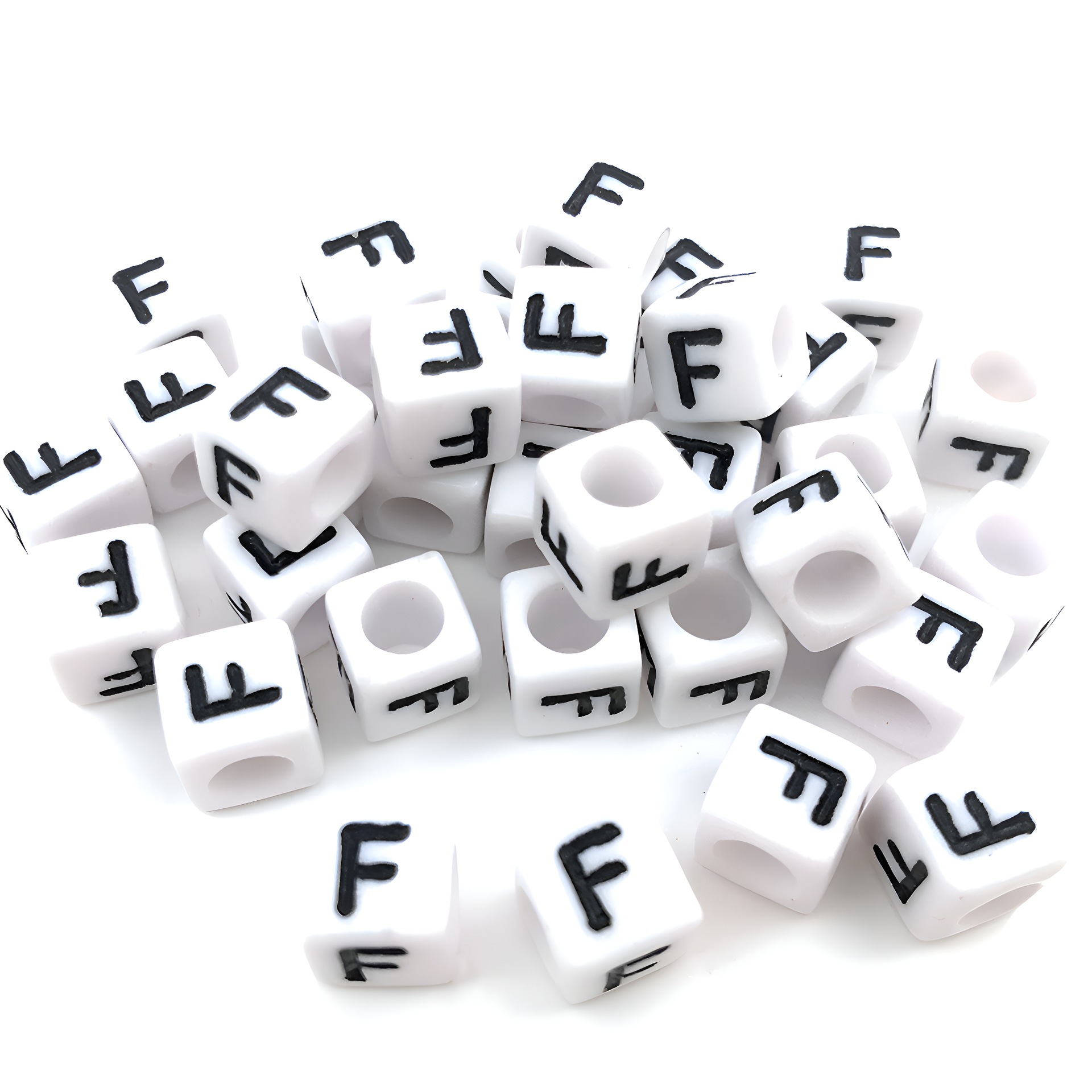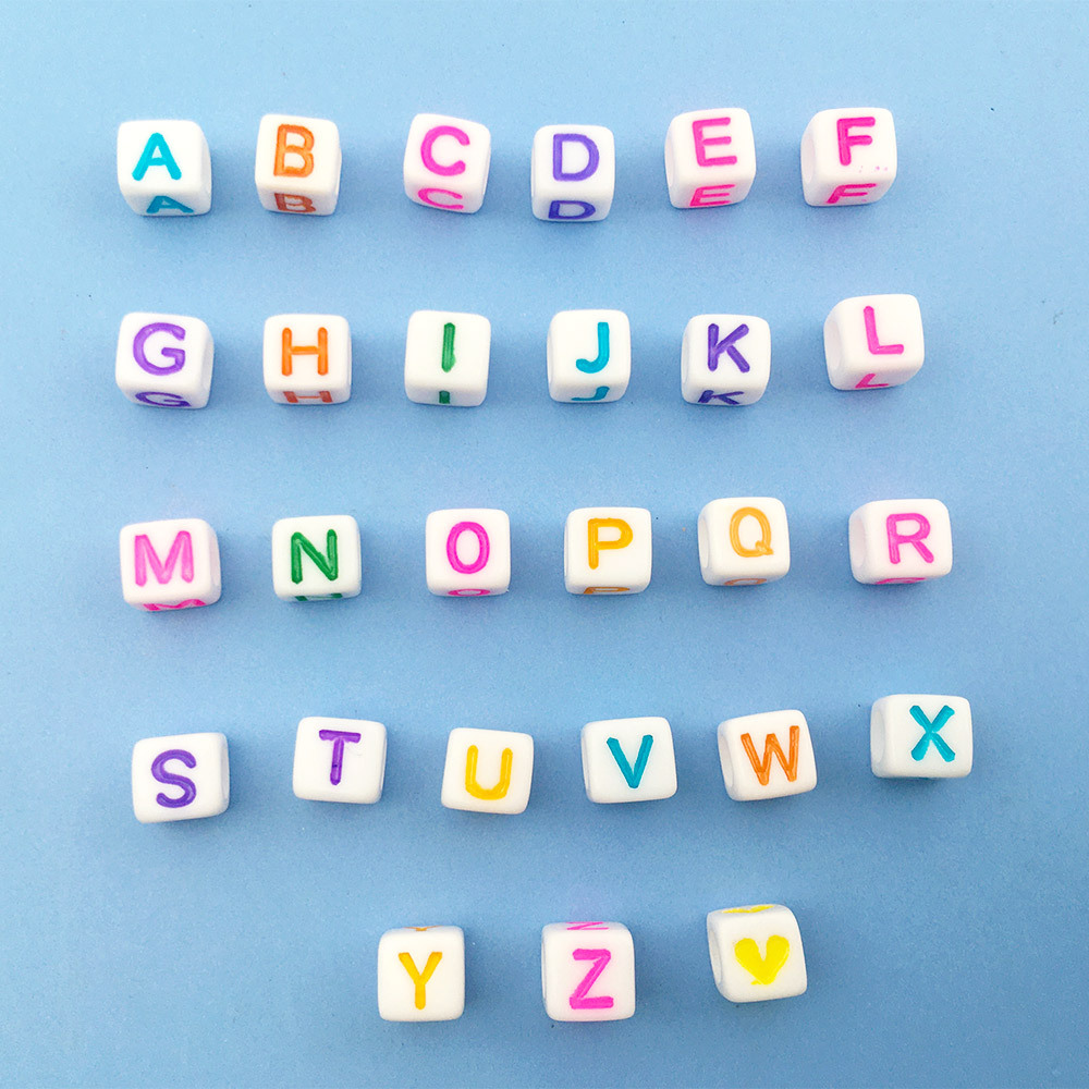 6x6mm白底黑色字母亚克力方块珠DIY串珠手链项链散珠饰品配件批发