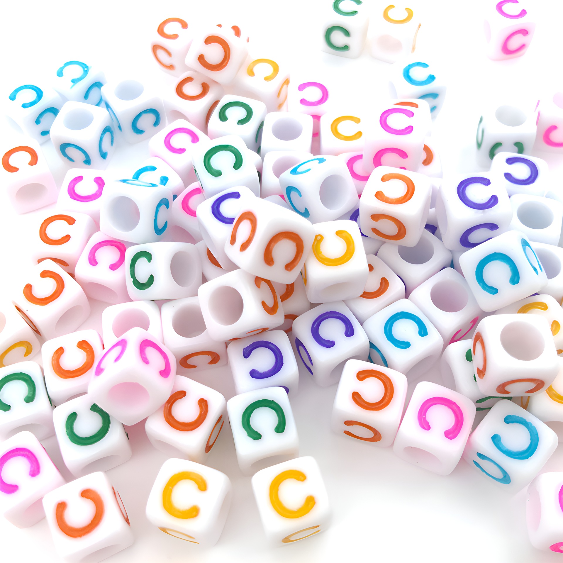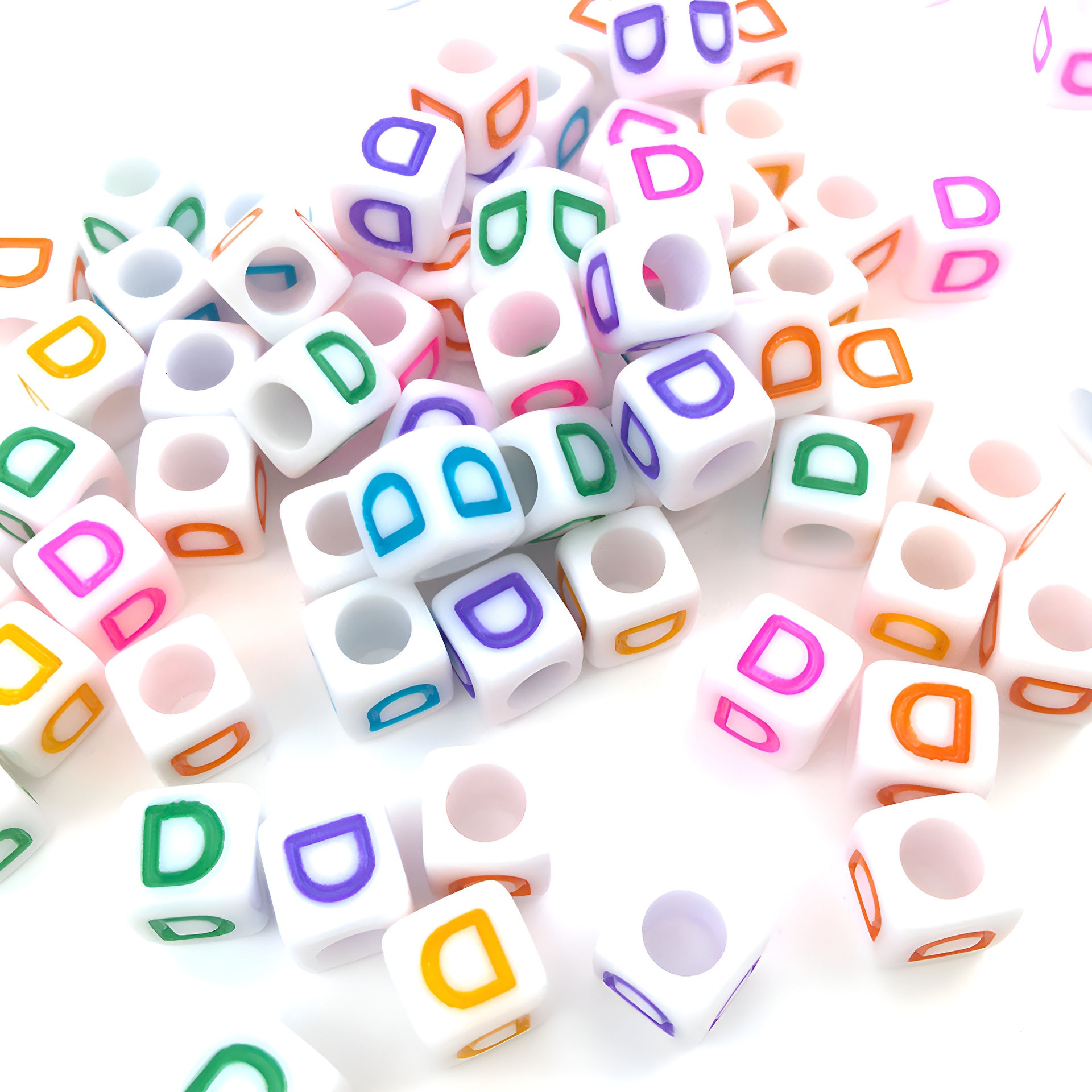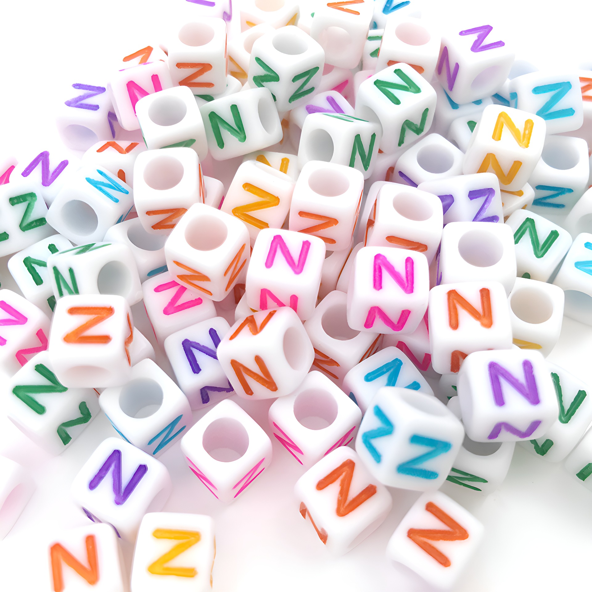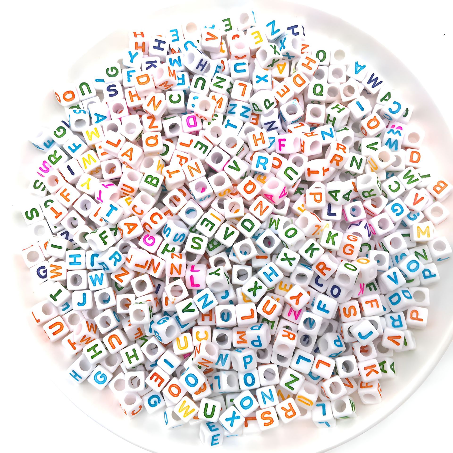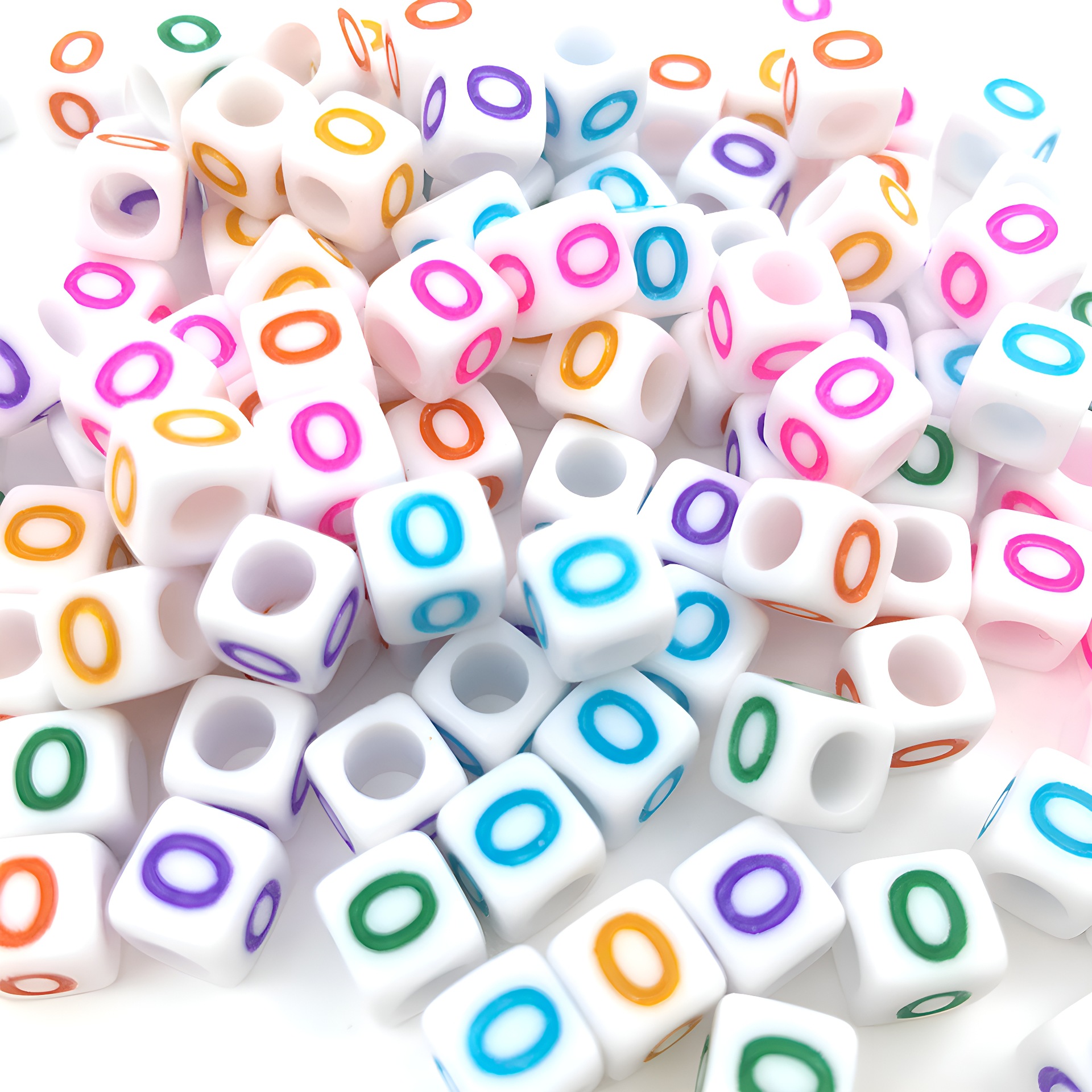 6x6mm白底黑色字母亚克力方块珠DIY串珠手链项链散珠饰品配件批发