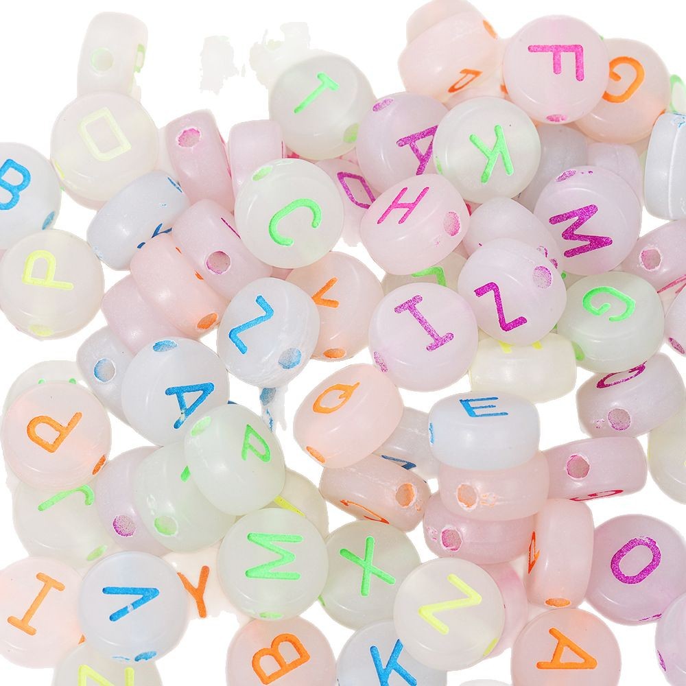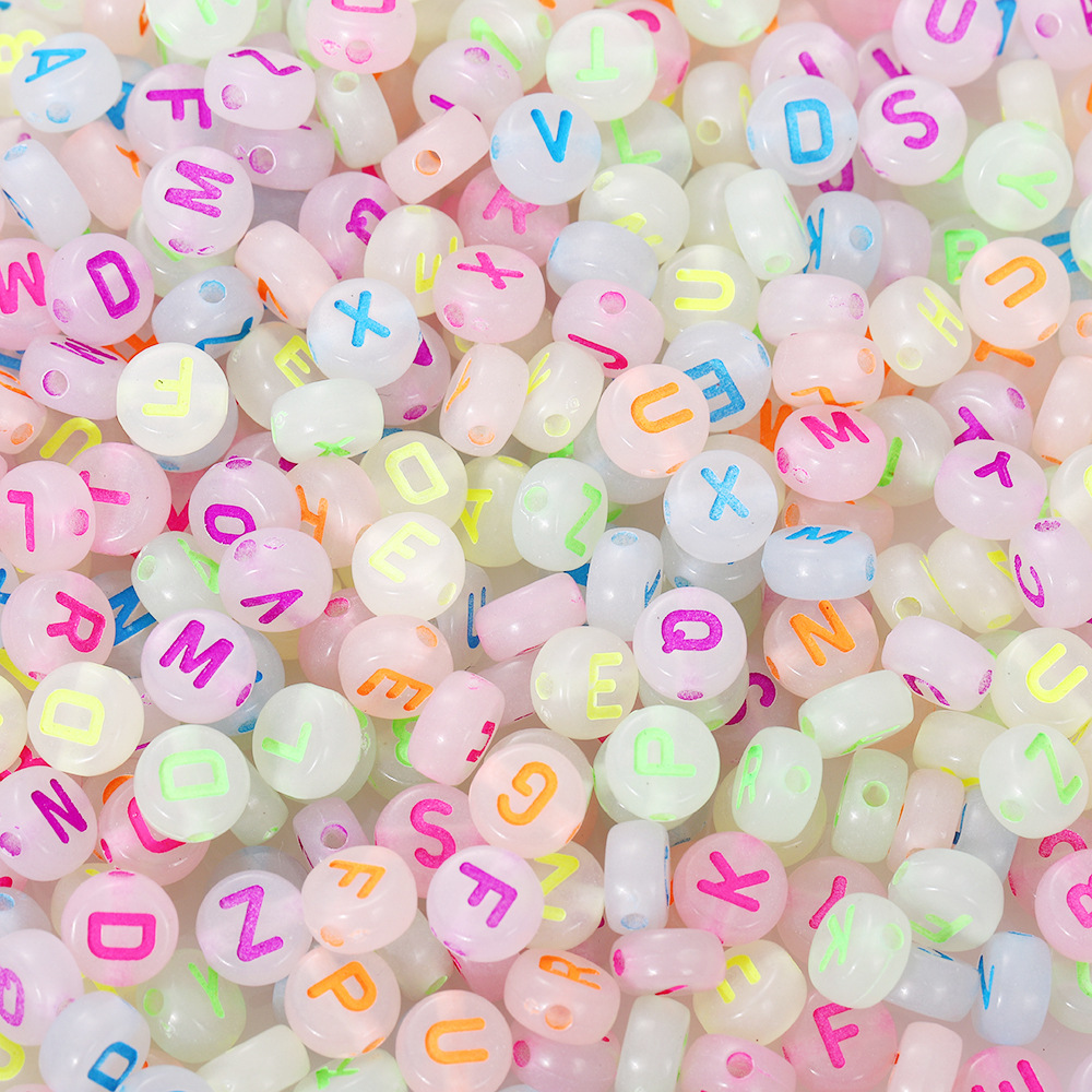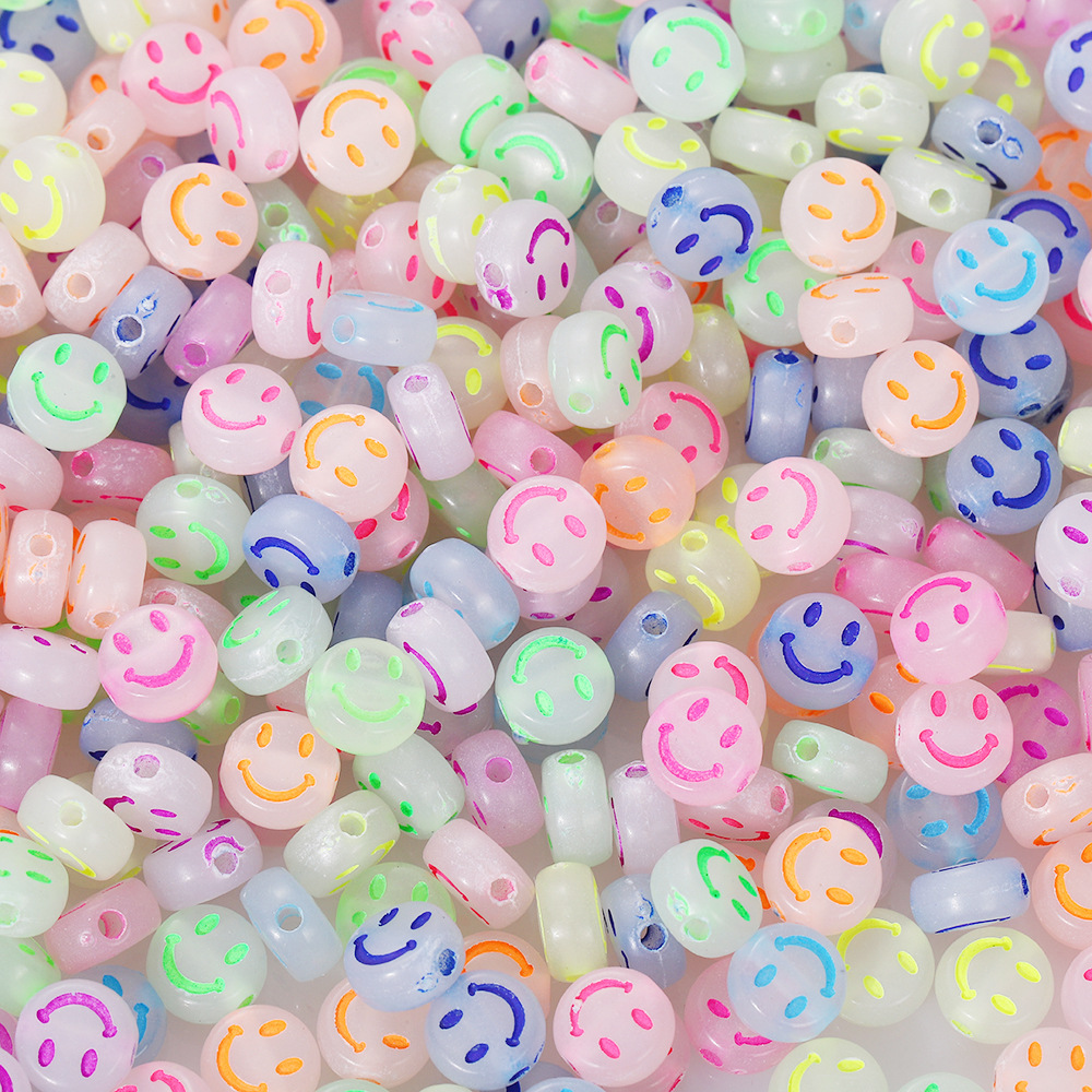 彩色表情字母珠子夜光笑脸串珠圆形扁珠手链材料手工diy散珠配件