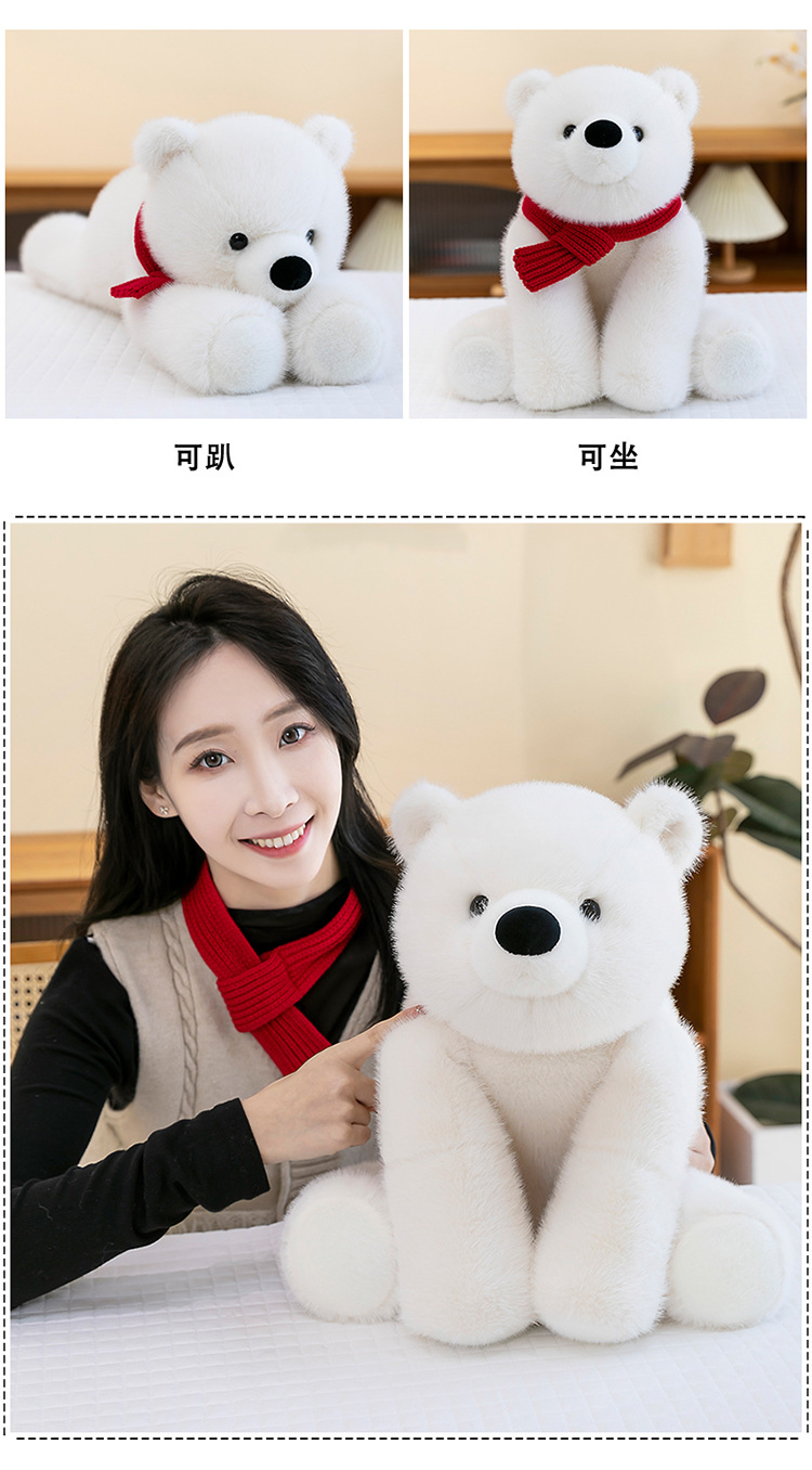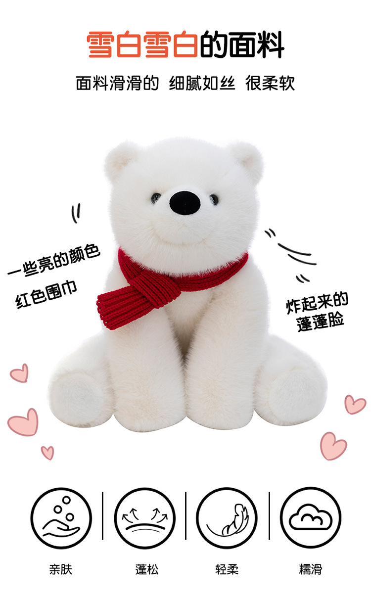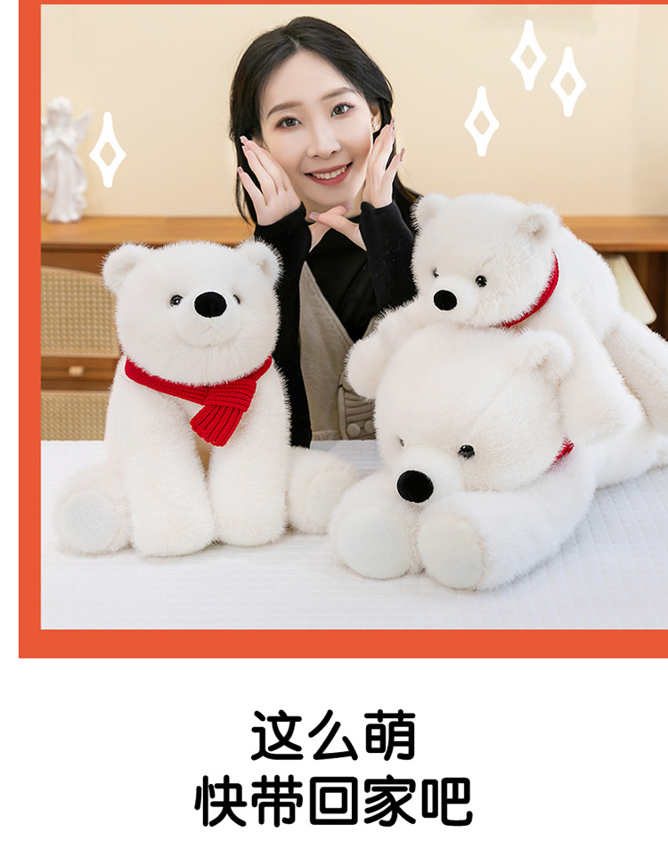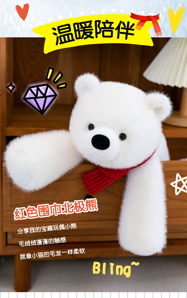 短毛绒仿真围巾北极熊情人节告白礼物儿童陪睡厂家现货外贸批发