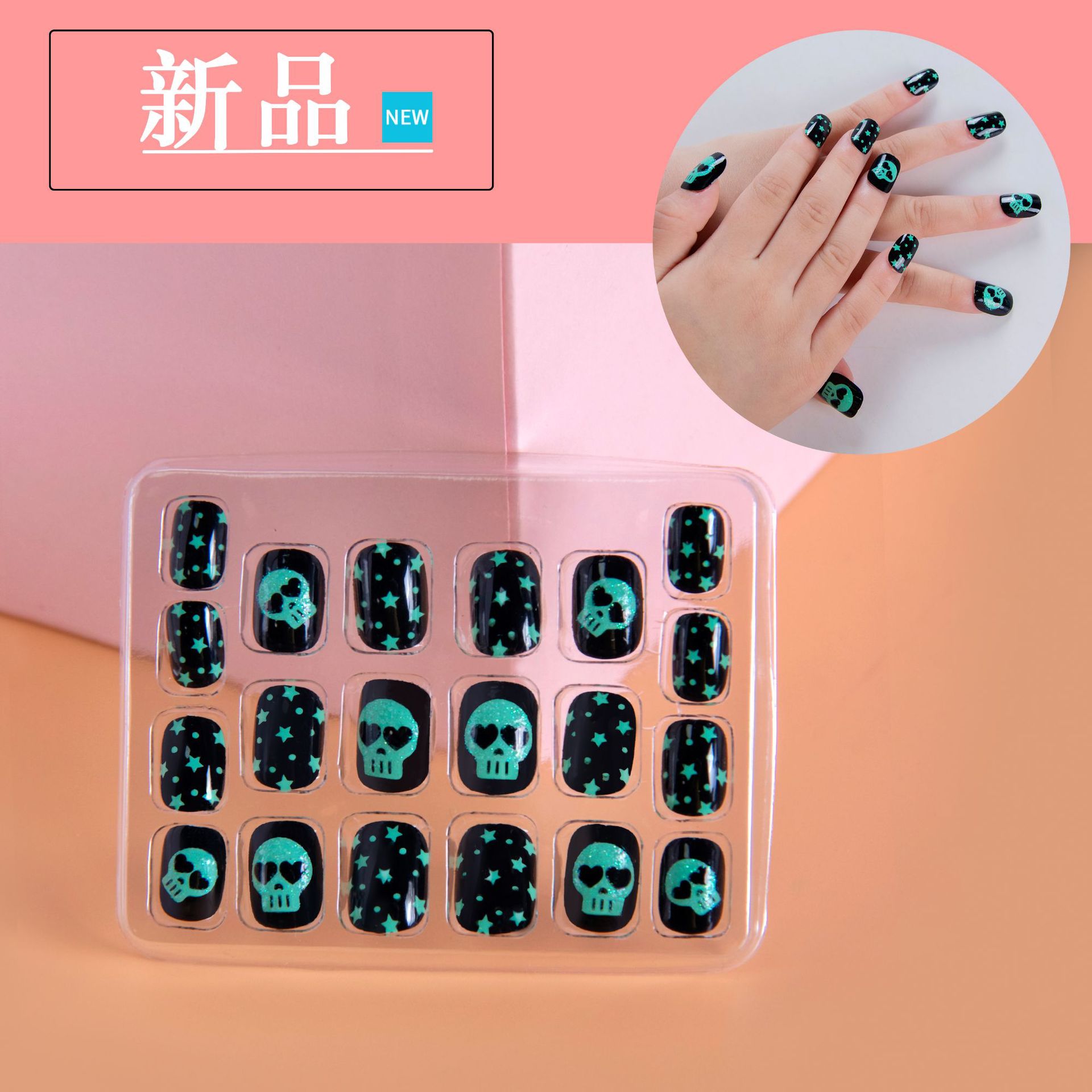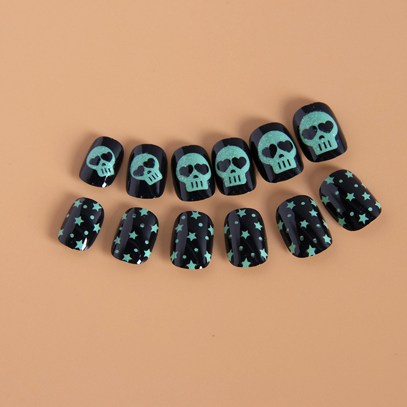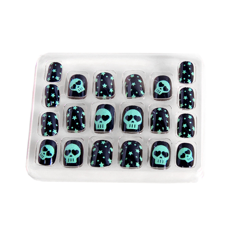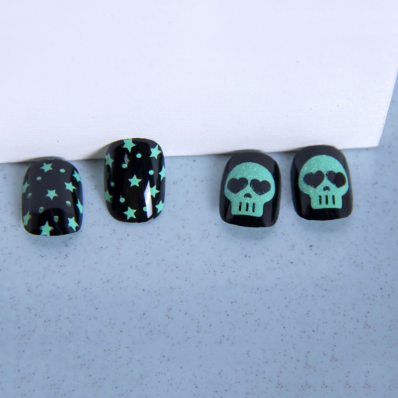 吸塑包装骷髅美甲片儿童指甲贴片可拆卸节日黑色图案假指甲定制
