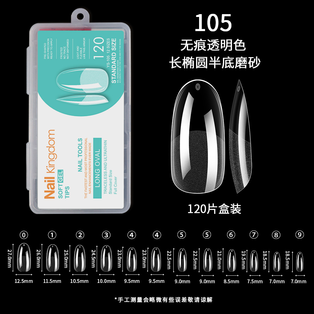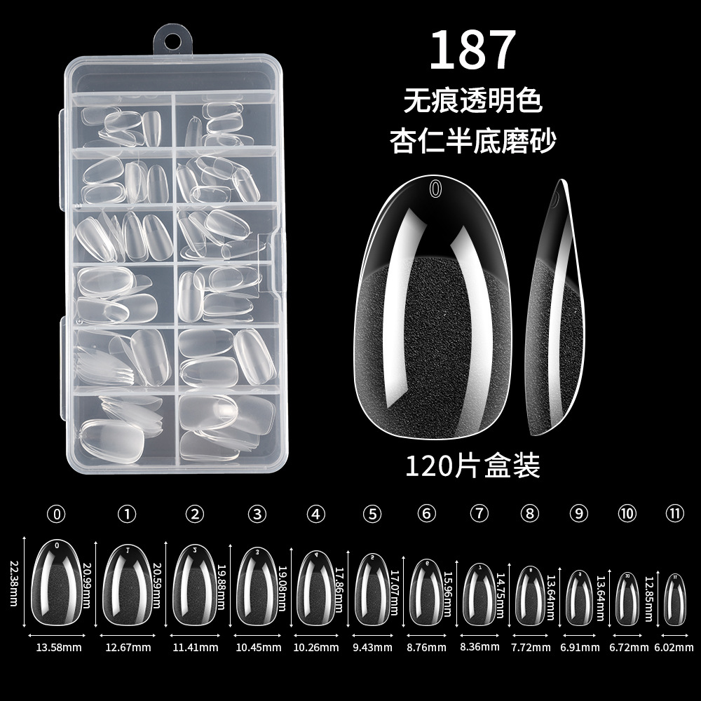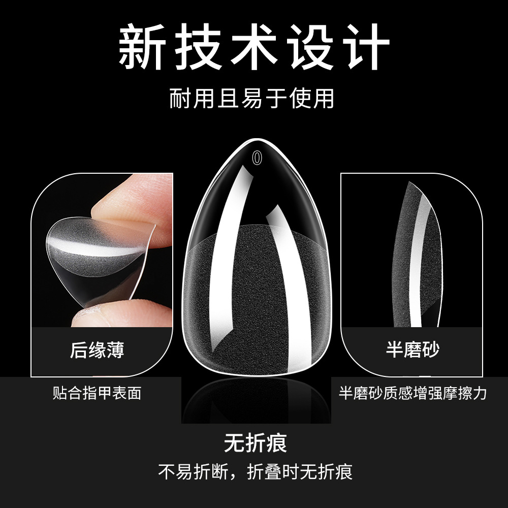 跨境欧美甲片半磨砂甲片延长无痕假指甲全贴杏仁薄甲片批发120片