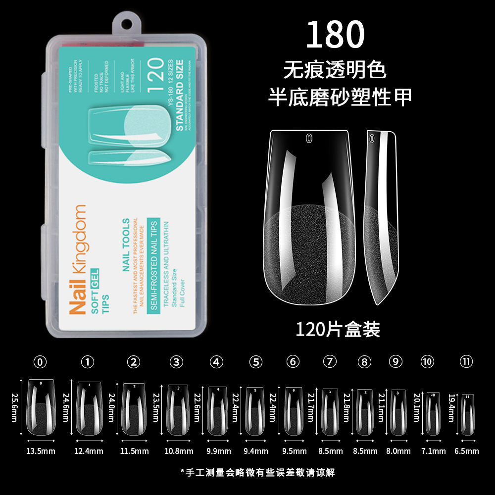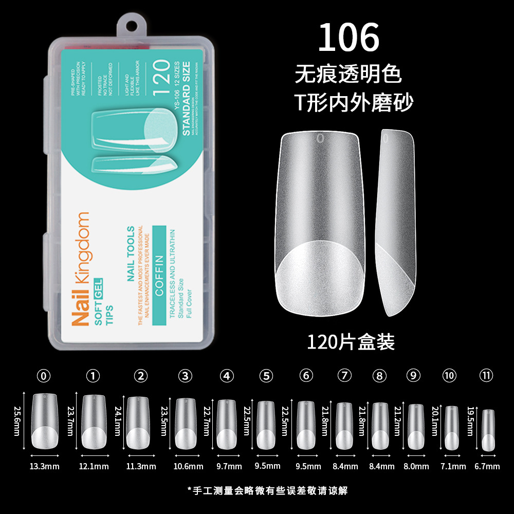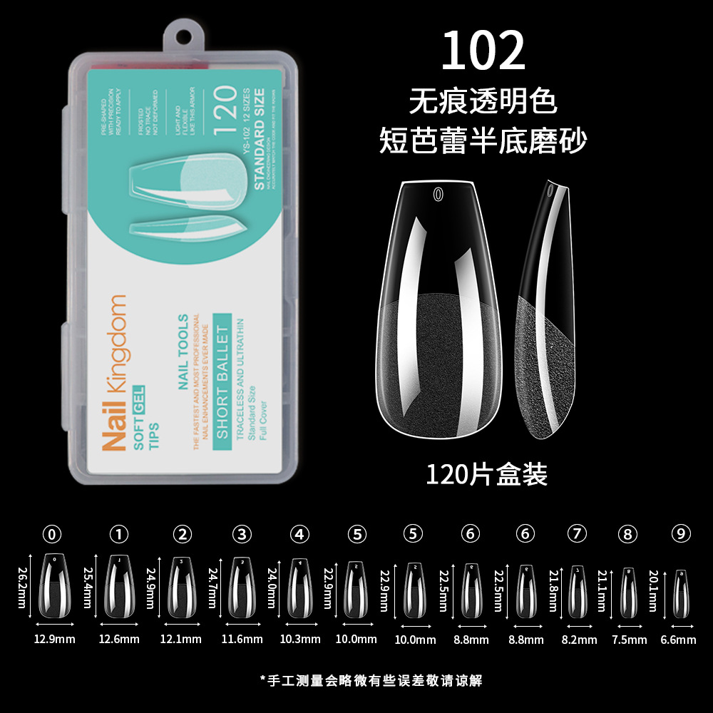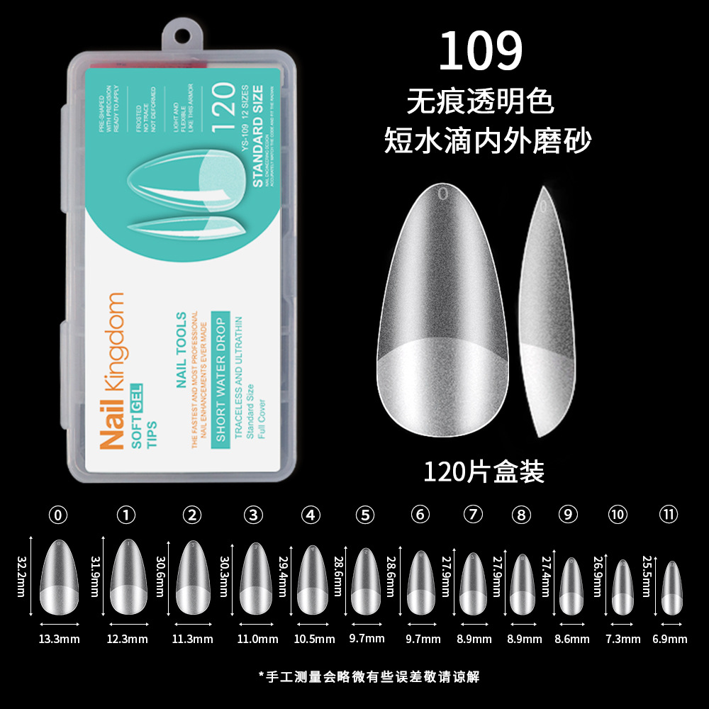 跨境欧美甲片半磨砂甲片延长无痕假指甲全贴杏仁薄甲片批发120片