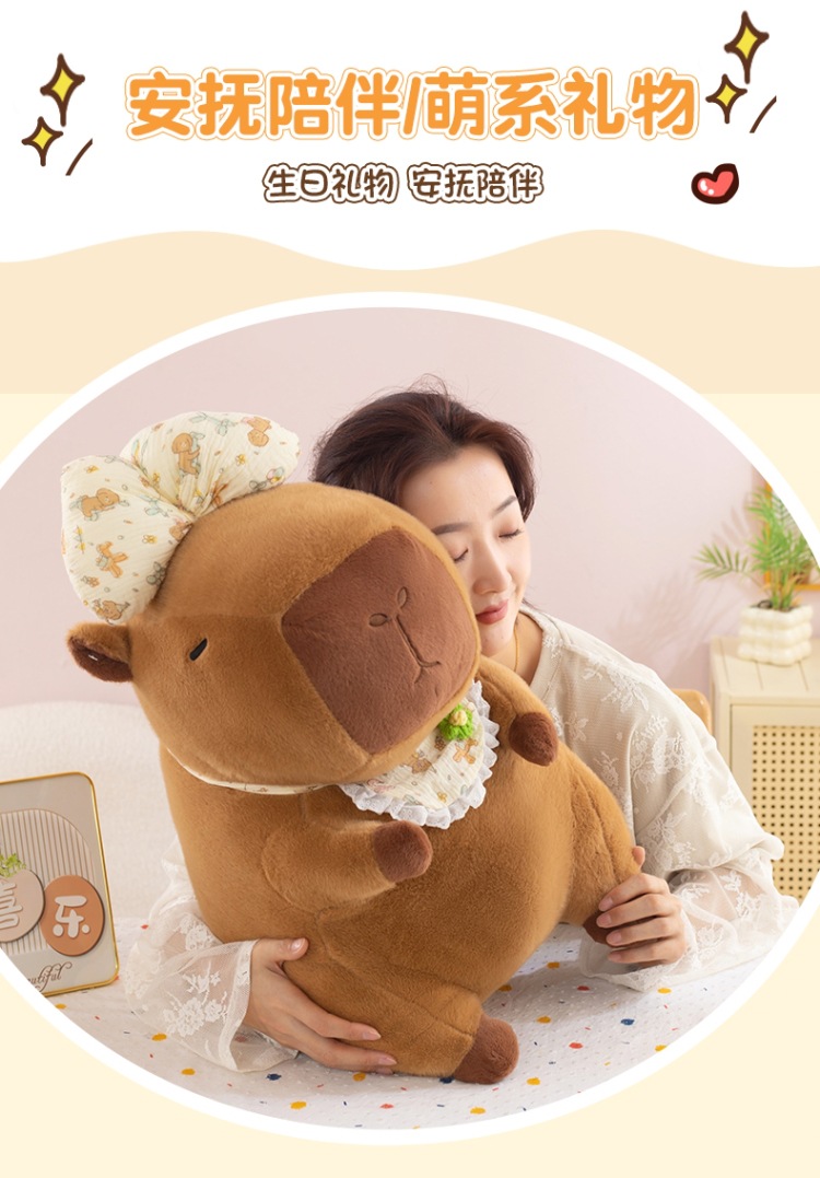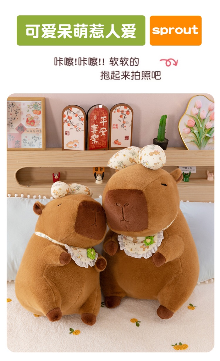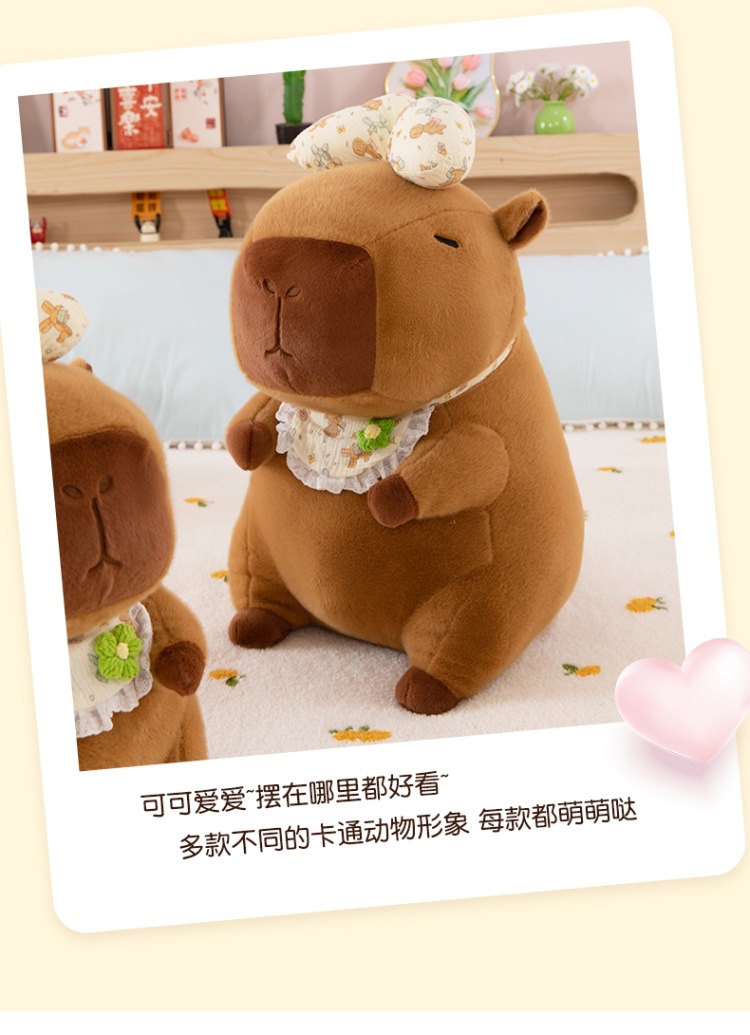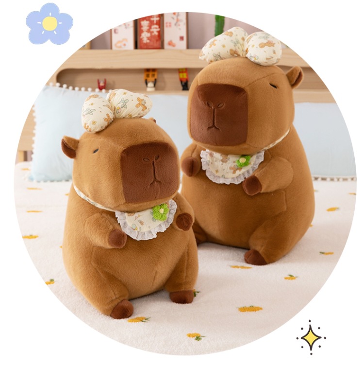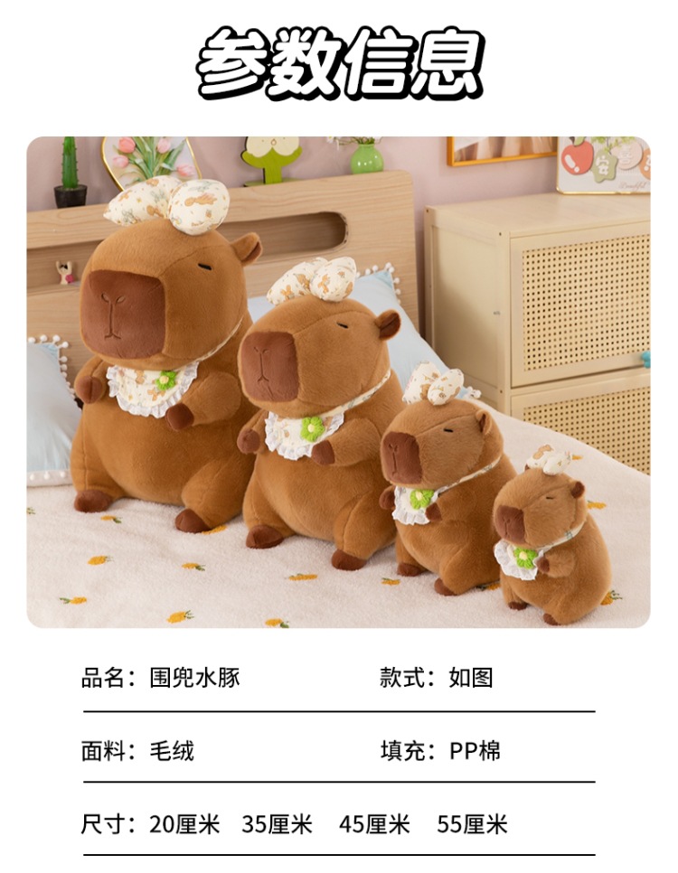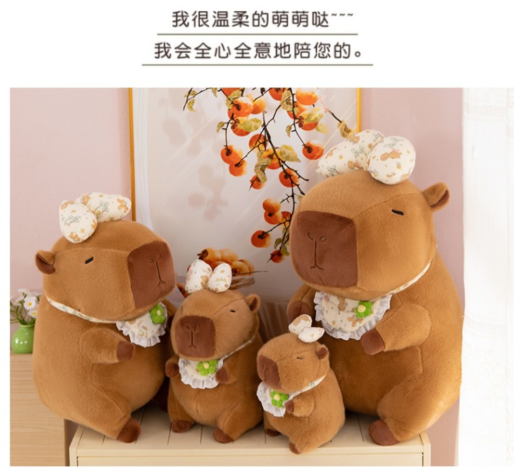 卡皮巴拉系列网红围兜水豚毛绒玩具呆萌君公仔抱枕水豚鼠玩偶礼品