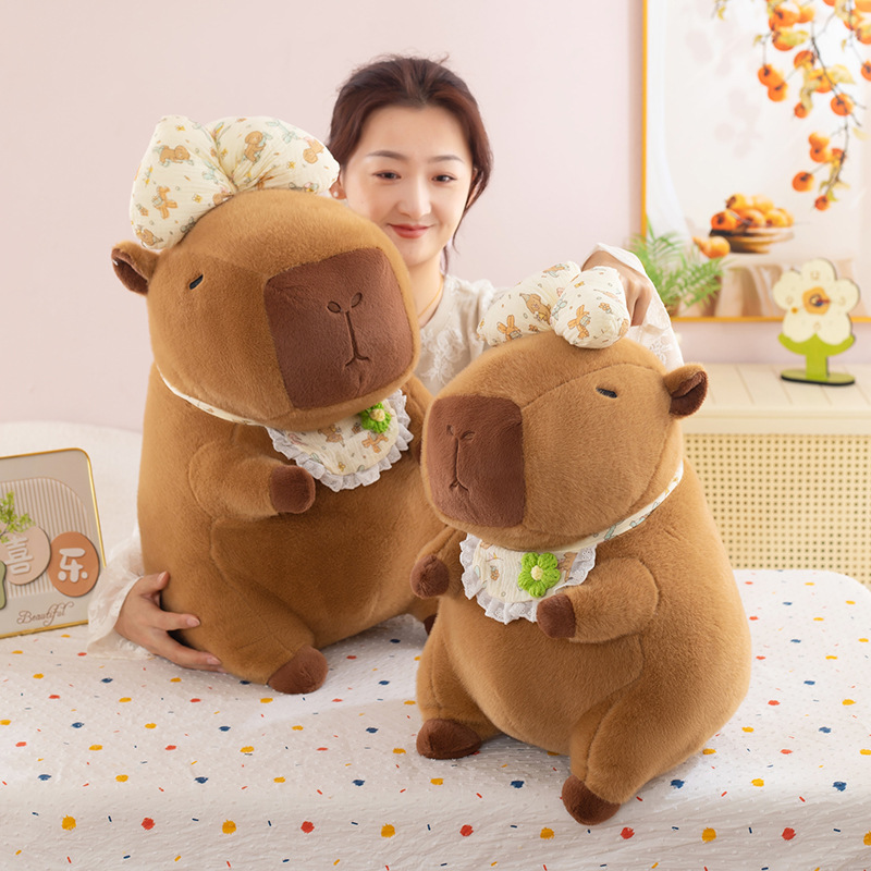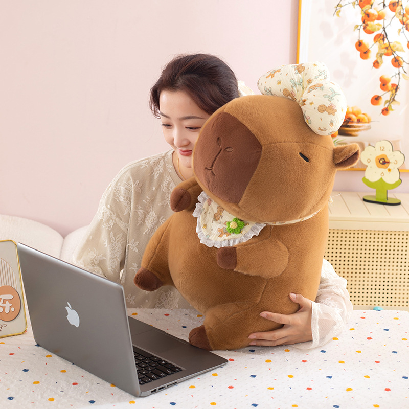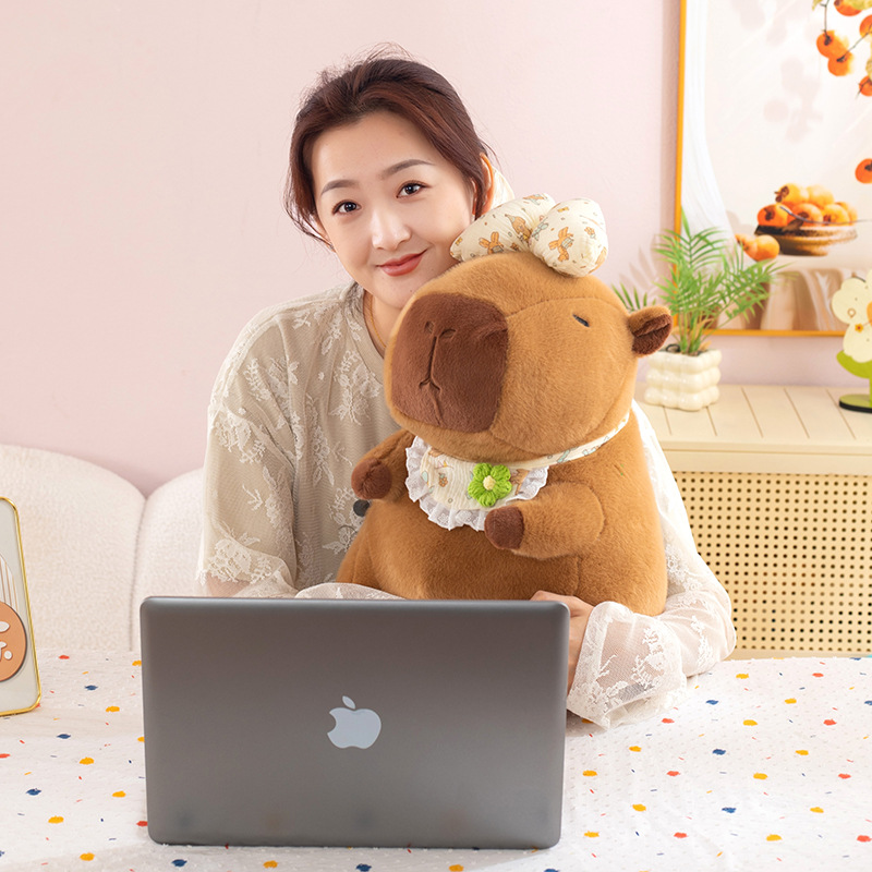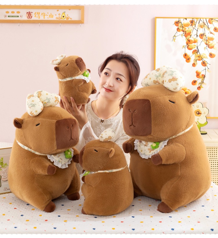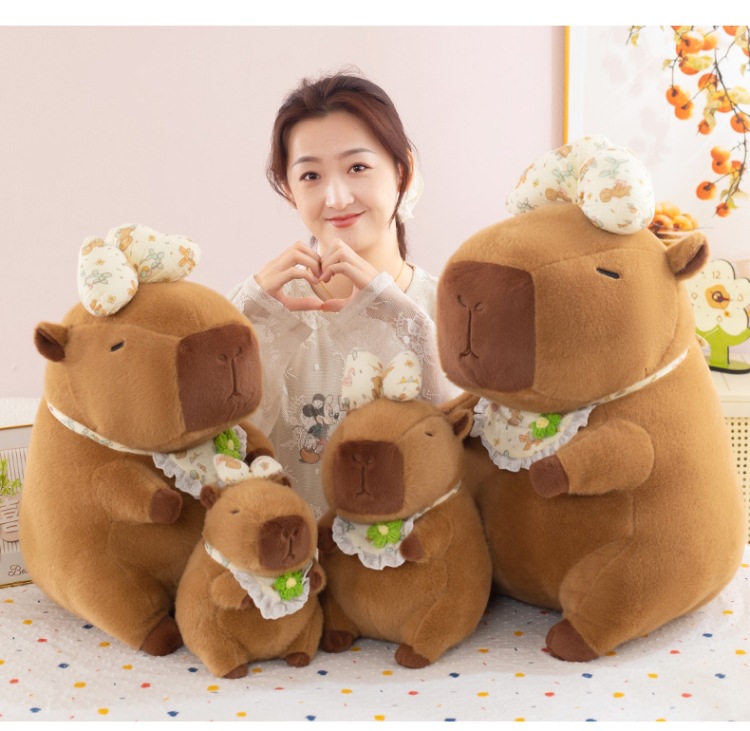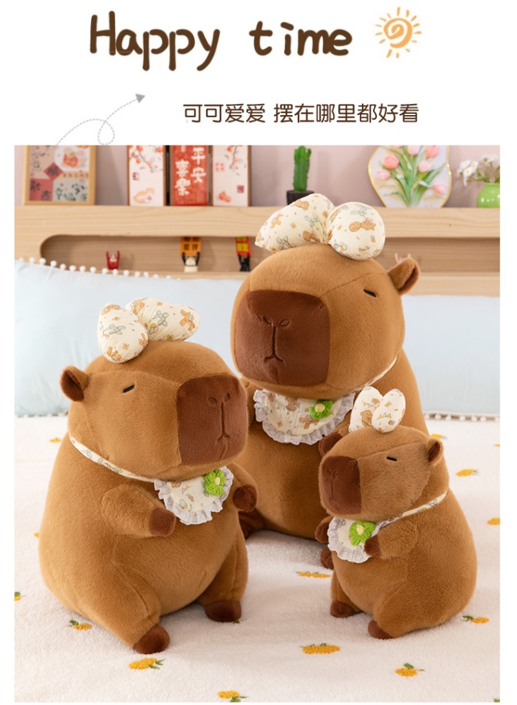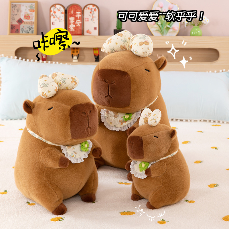 卡皮巴拉系列网红围兜水豚毛绒玩具呆萌君公仔抱枕水豚鼠玩偶礼品