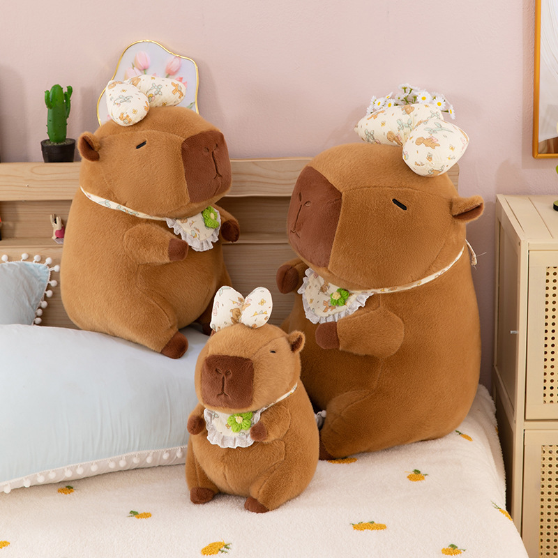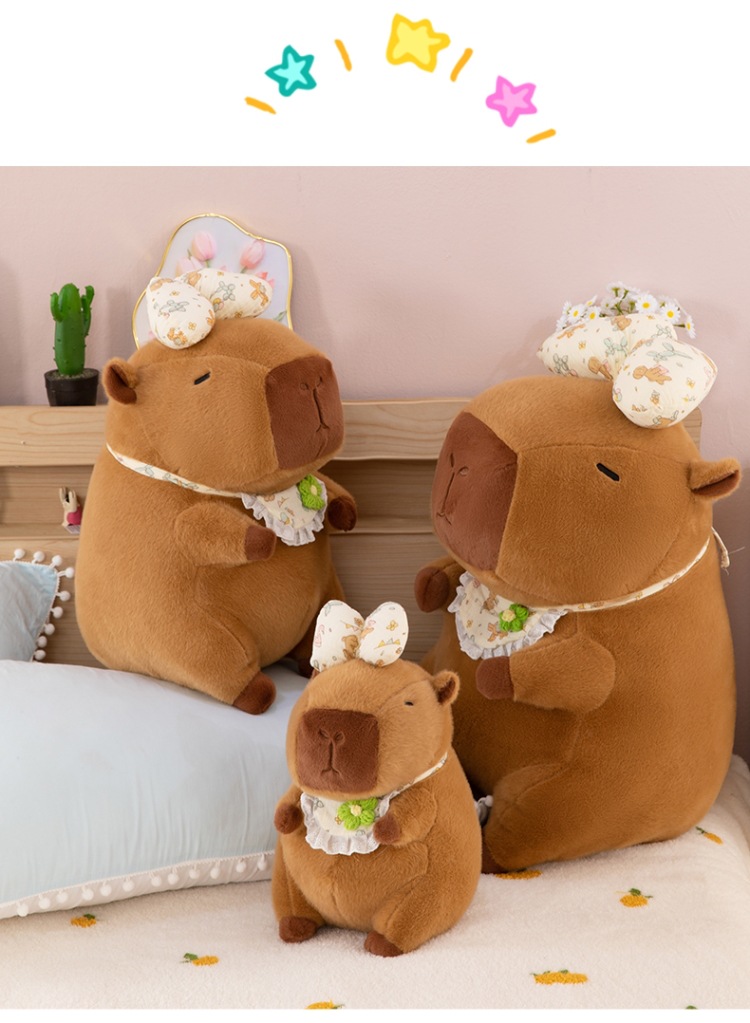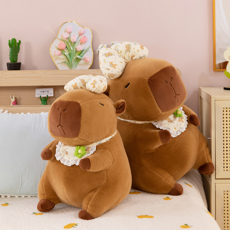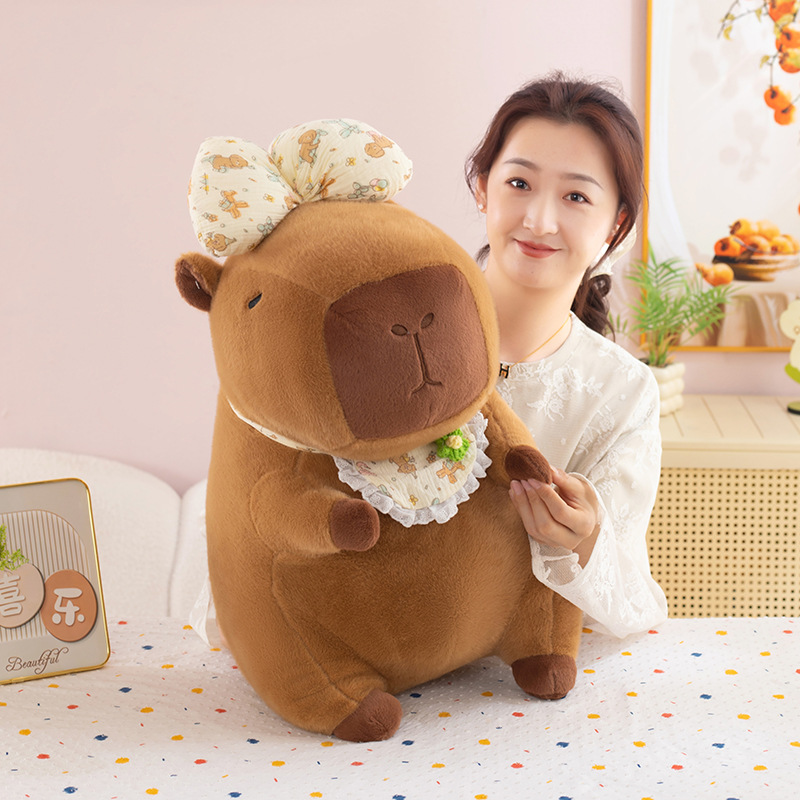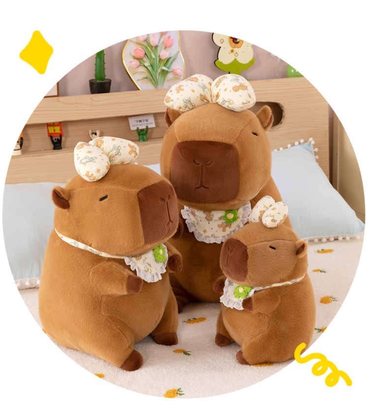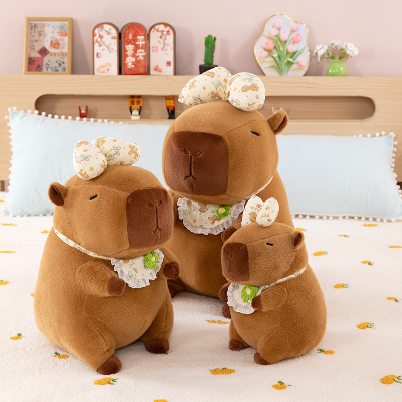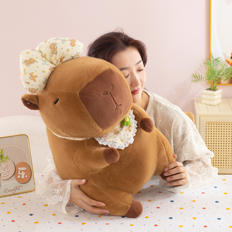 卡皮巴拉系列网红围兜水豚毛绒玩具呆萌君公仔抱枕水豚鼠玩偶礼品