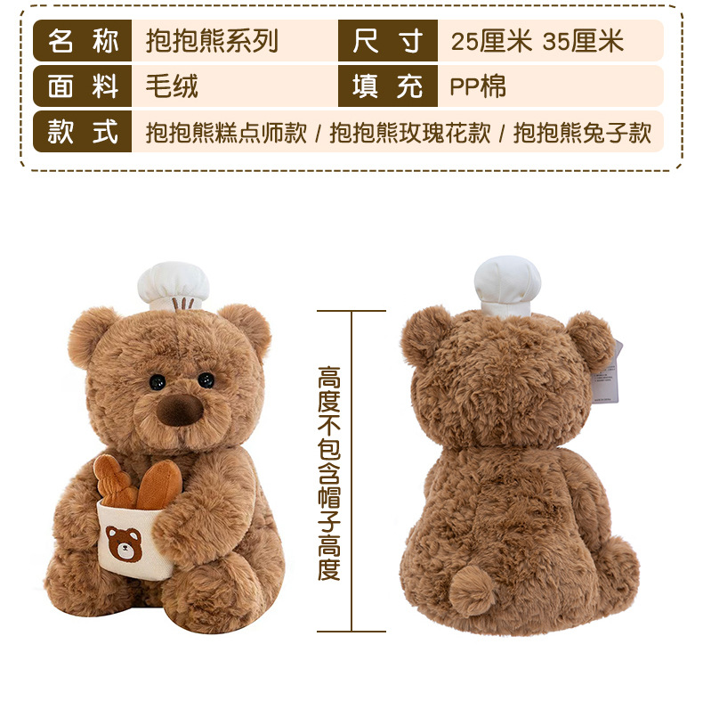 批发创意糕点师小熊公仔西点面包店毛绒玩具情人节鲜花泰迪熊玩偶