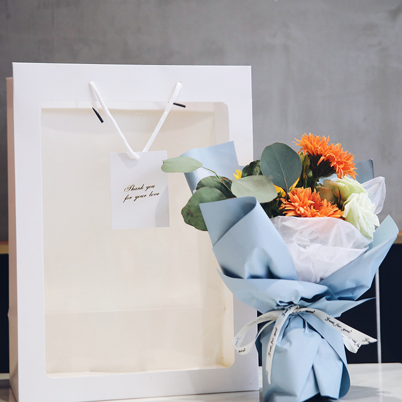 透明橱窗手提袋花店花束包装袋网红ins开窗袋情人节糖果袋 礼品袋