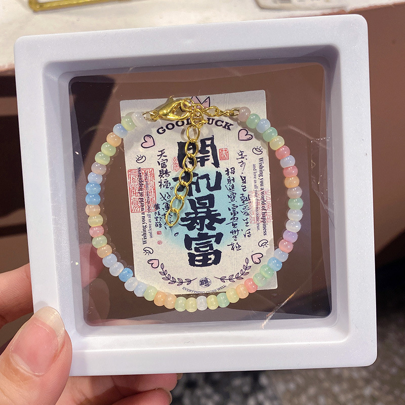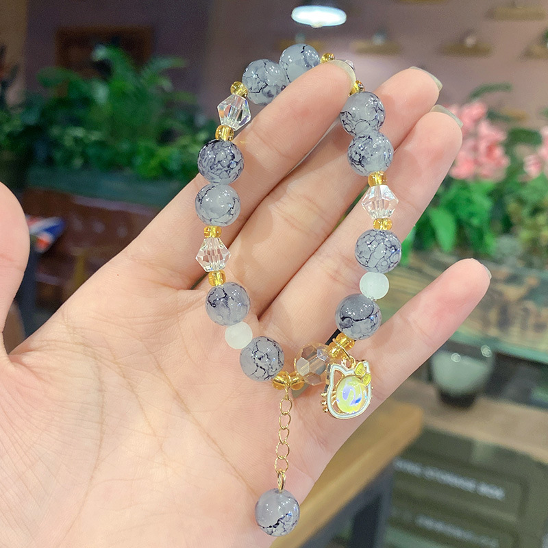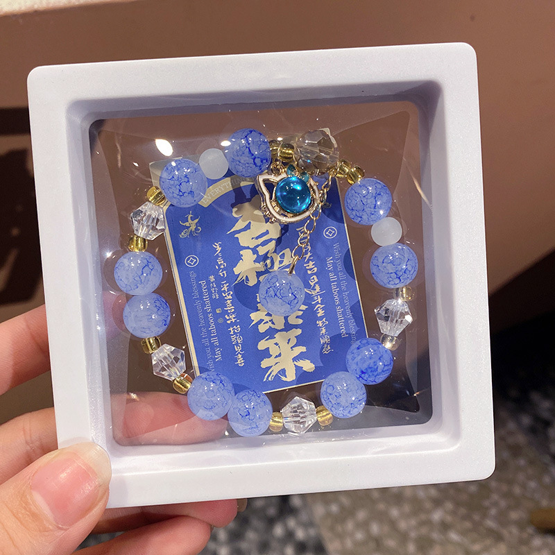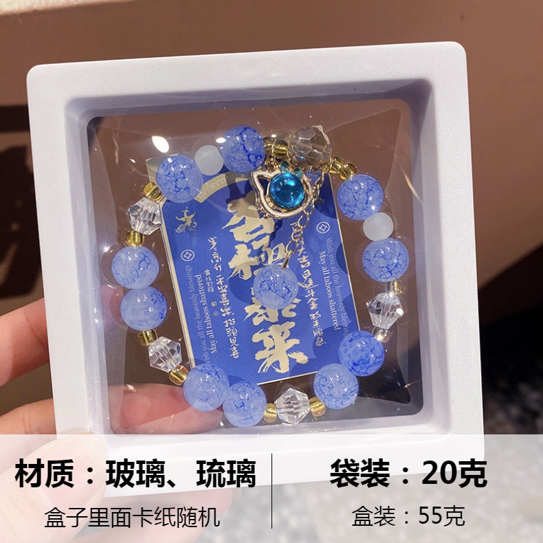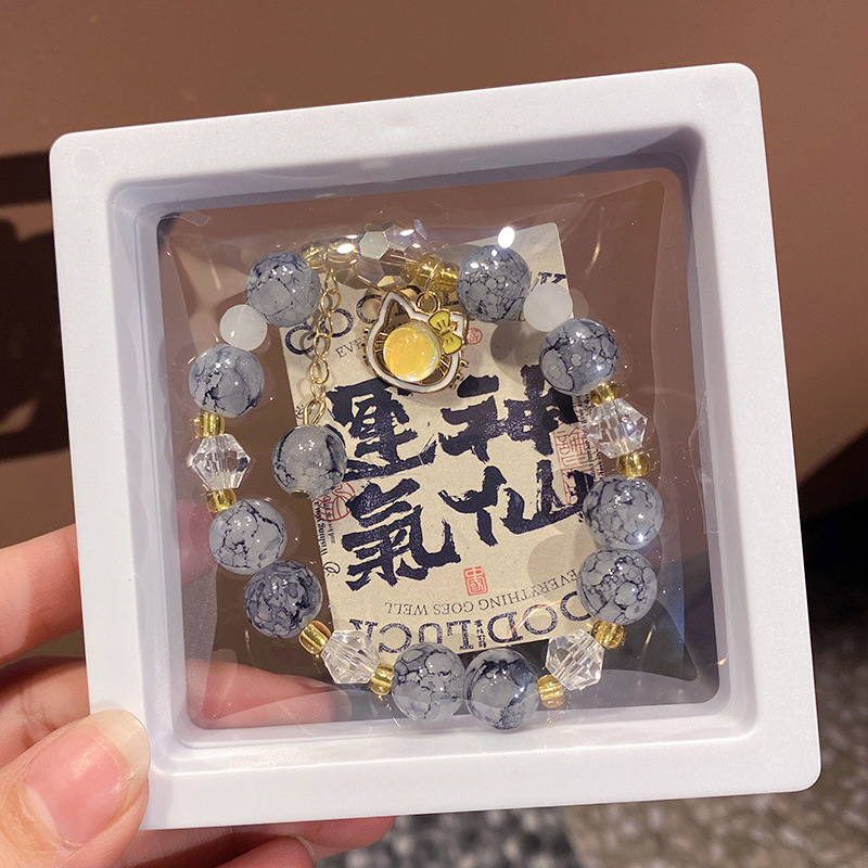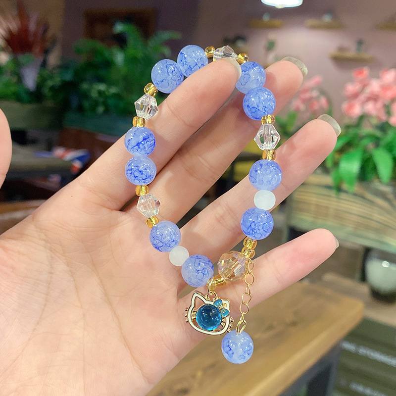 新中式青花琉璃花纹串珠手链领结猫咪头七彩闺蜜少女手链批发拿货