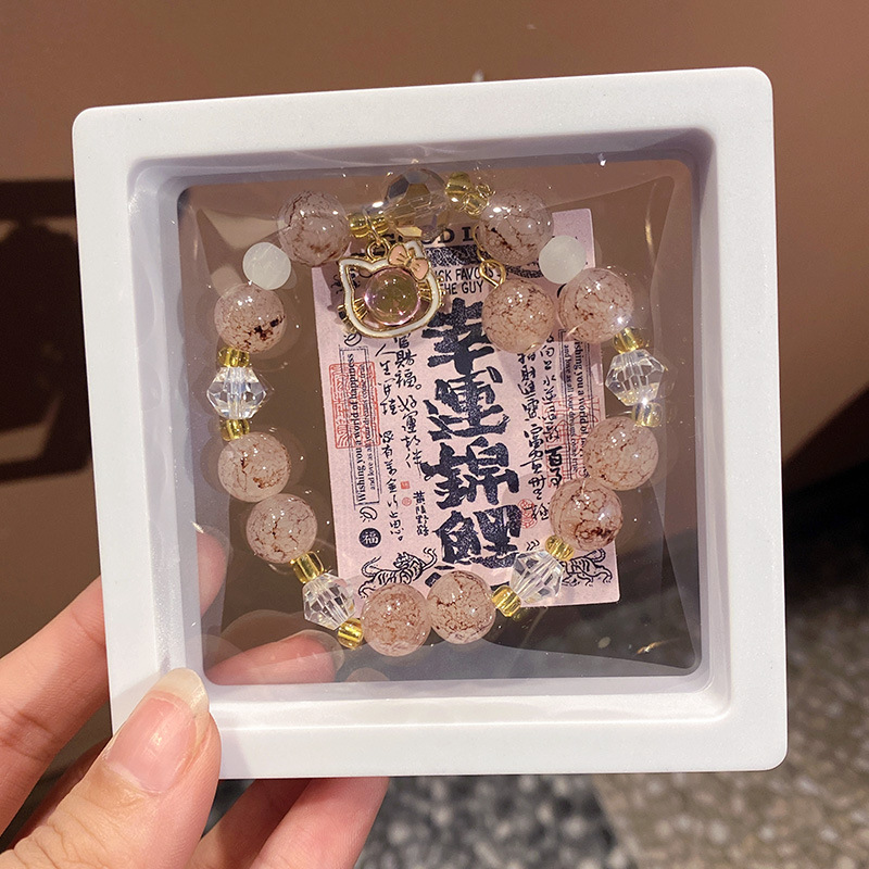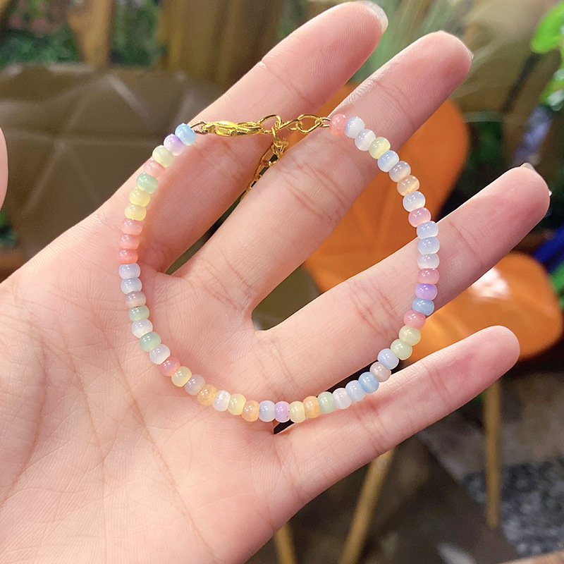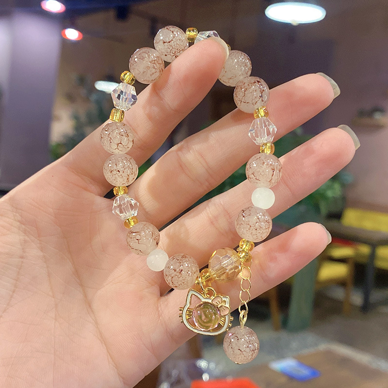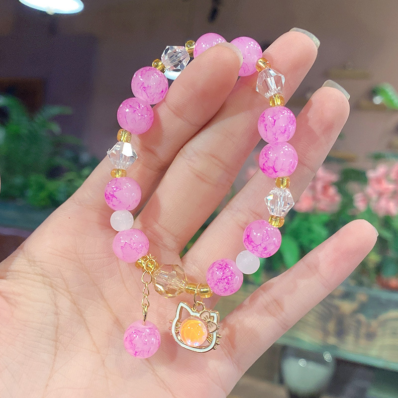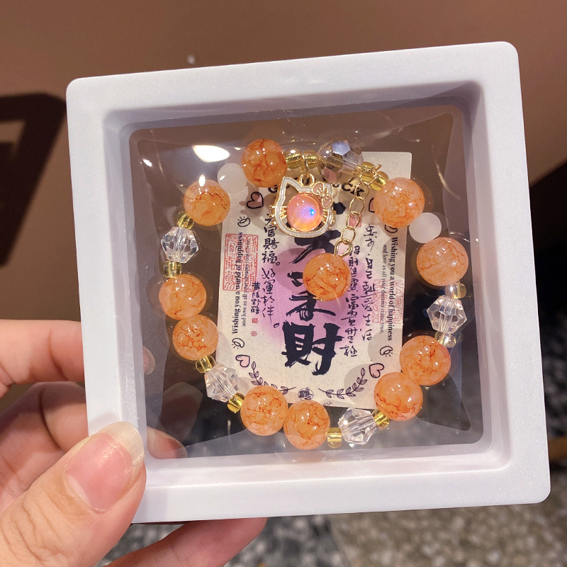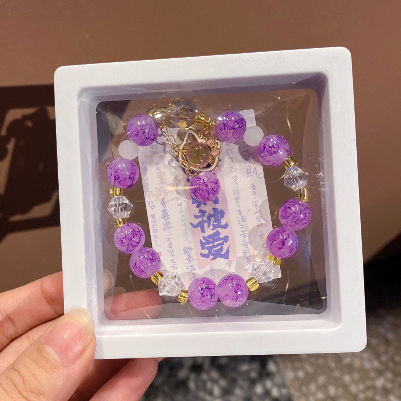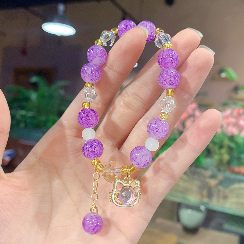 新中式青花琉璃花纹串珠手链领结猫咪头七彩闺蜜少女手链批发拿货