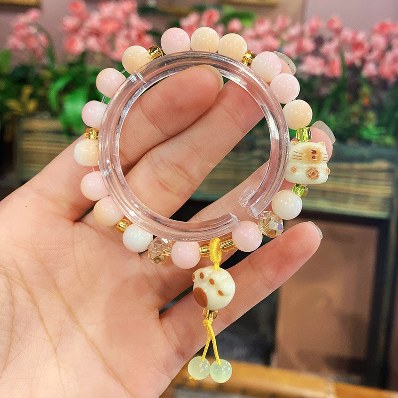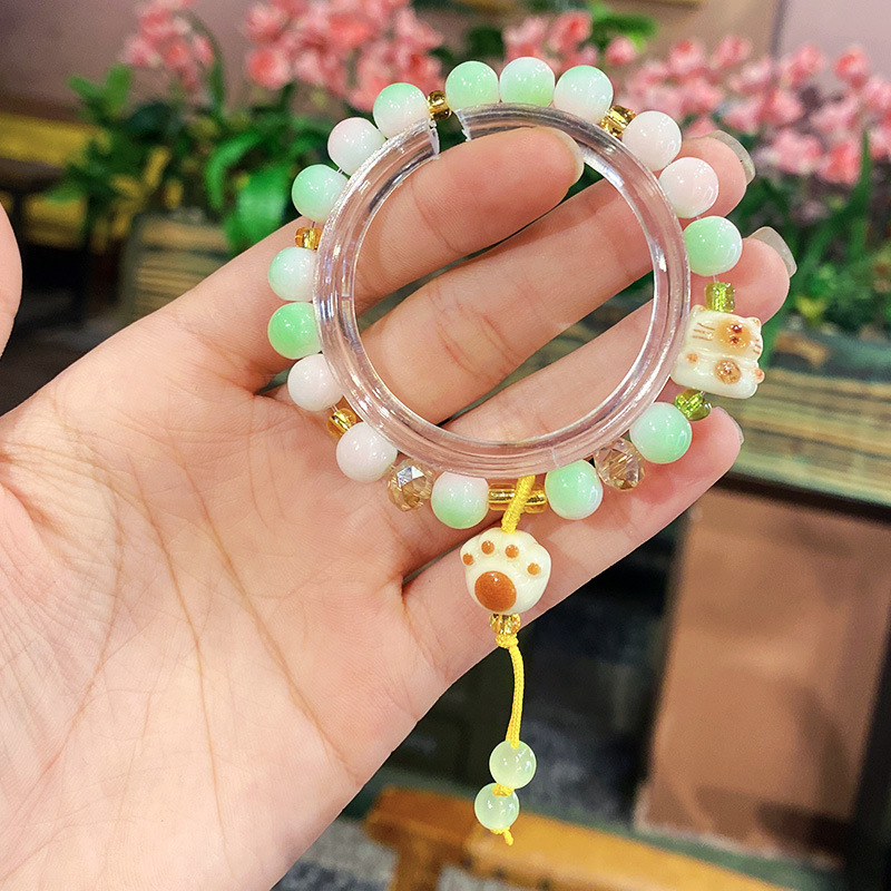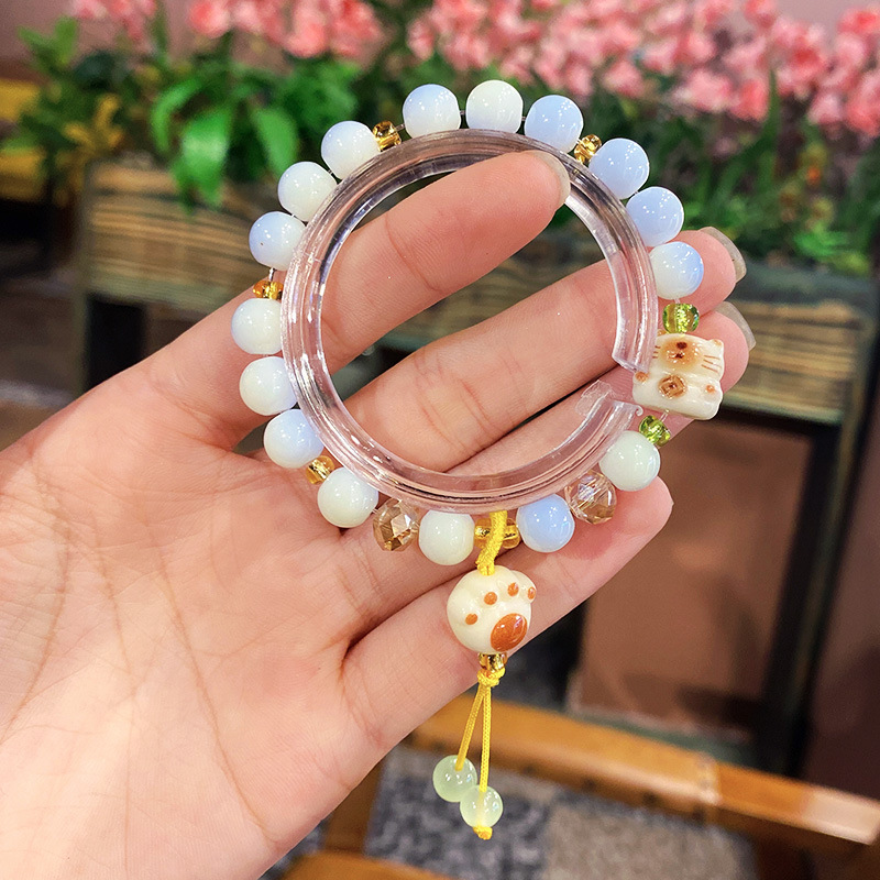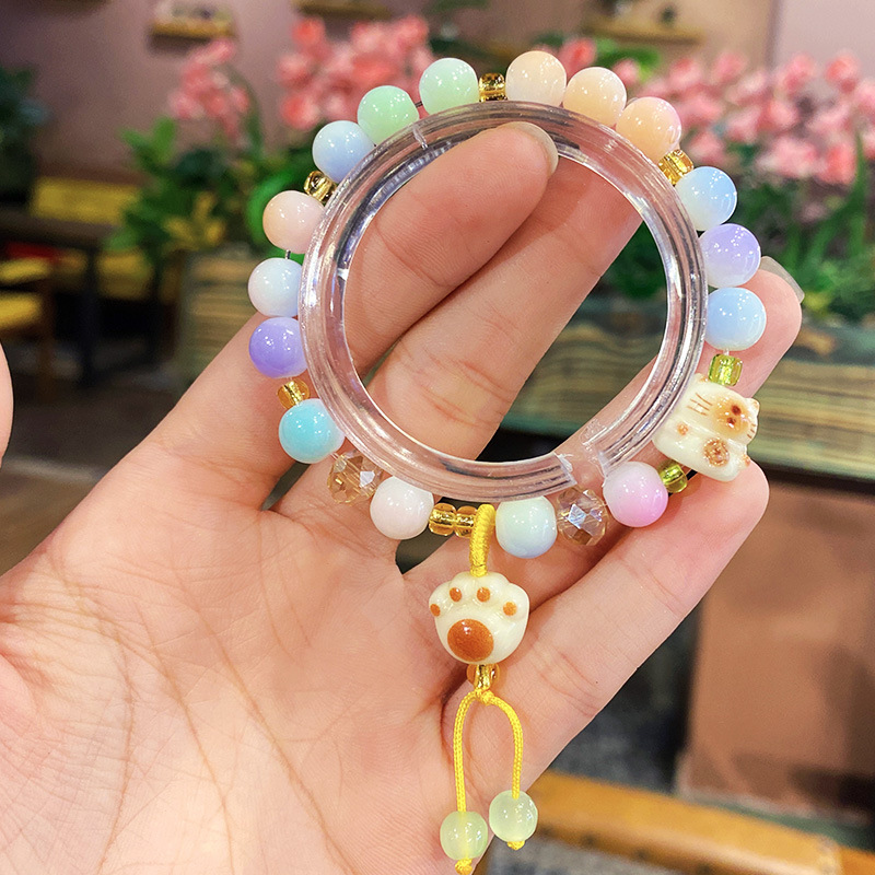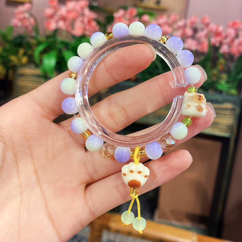新款猫爪猫咪仿陶瓷手串学生儿童琉璃手链批发礼盒装可爱甜美手饰