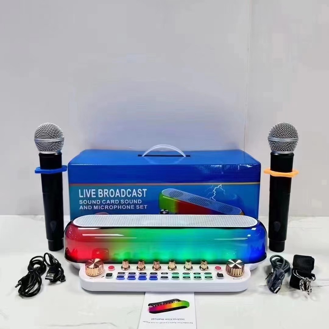 SY12英文跨境声卡音响一体机家庭k歌直播唱歌户外娱乐专业设备