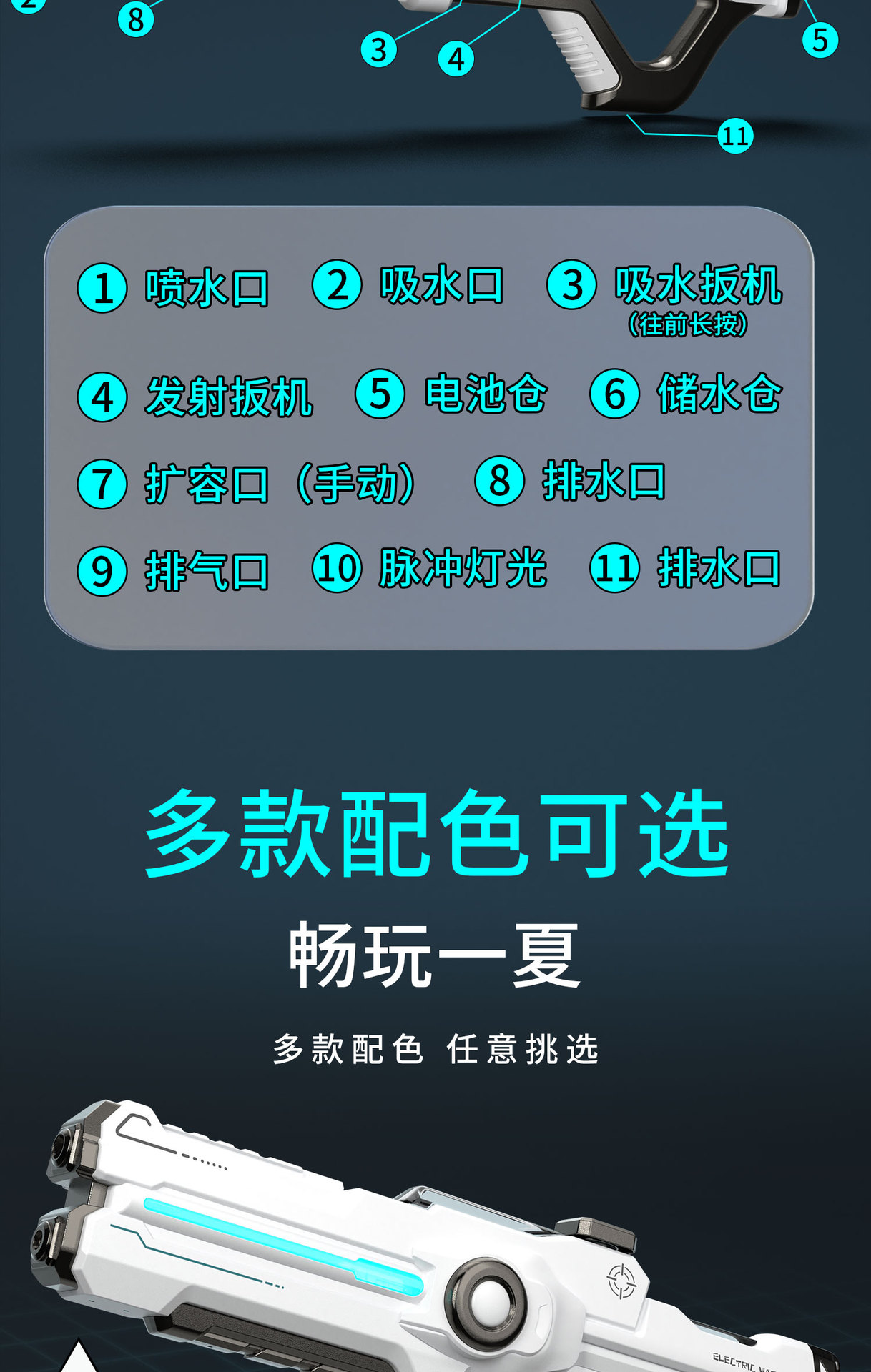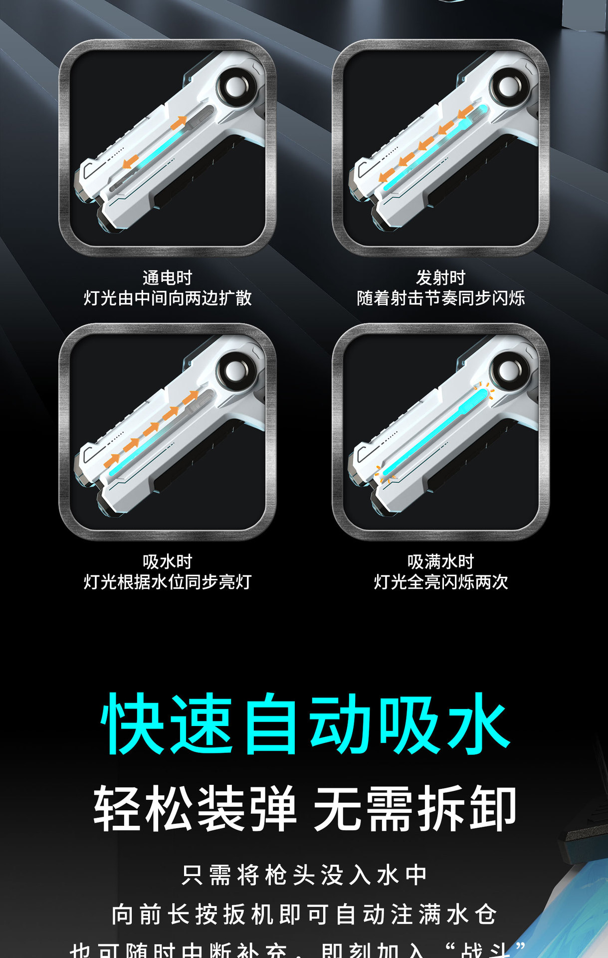新款脉冲充电电动连发水枪大容量自动吸水泼水节男孩儿童玩具水枪