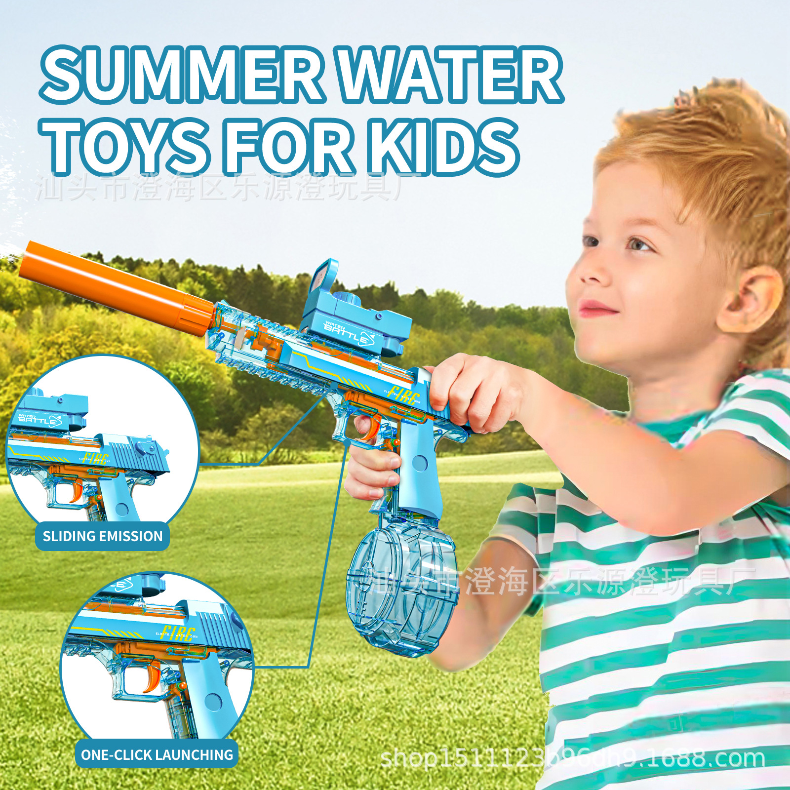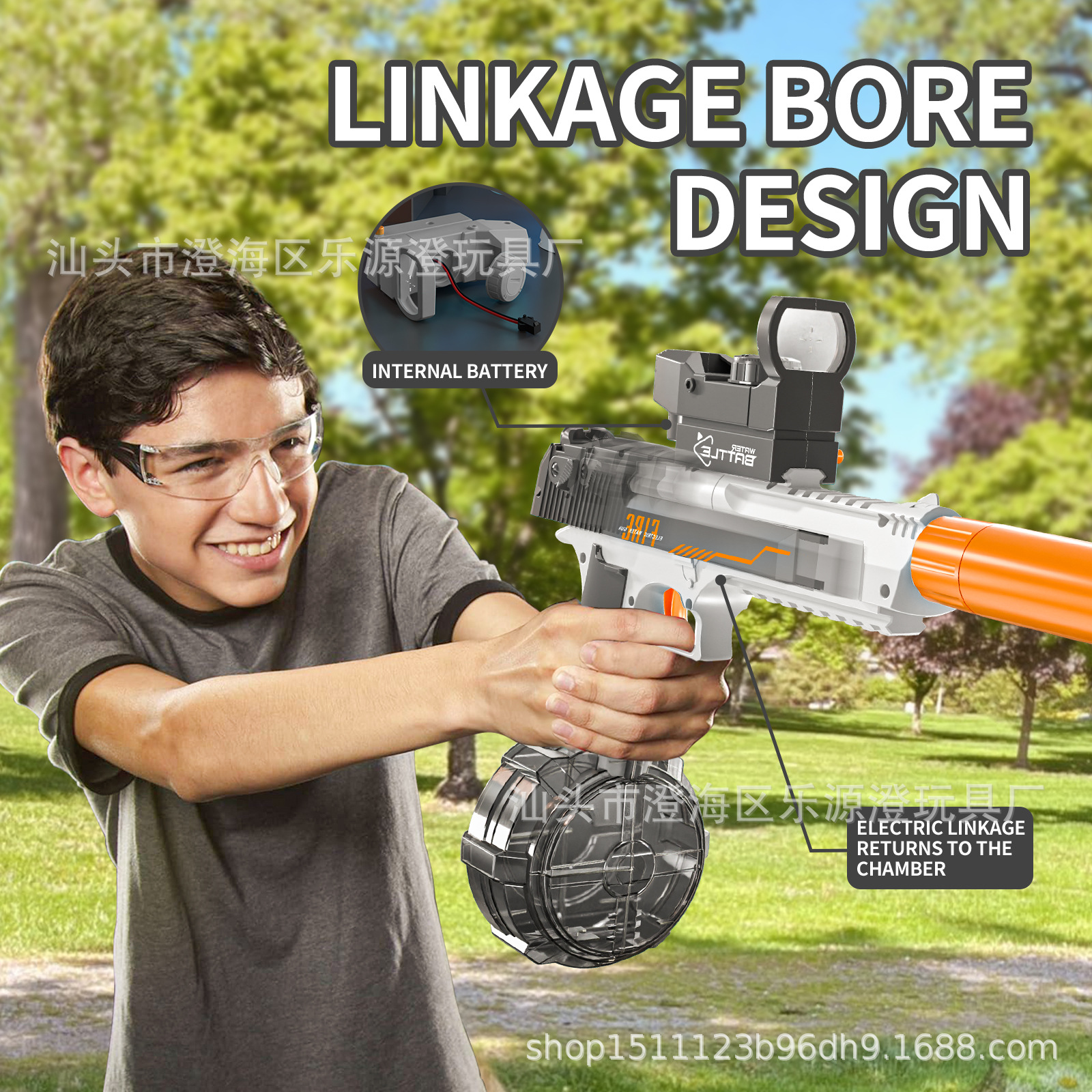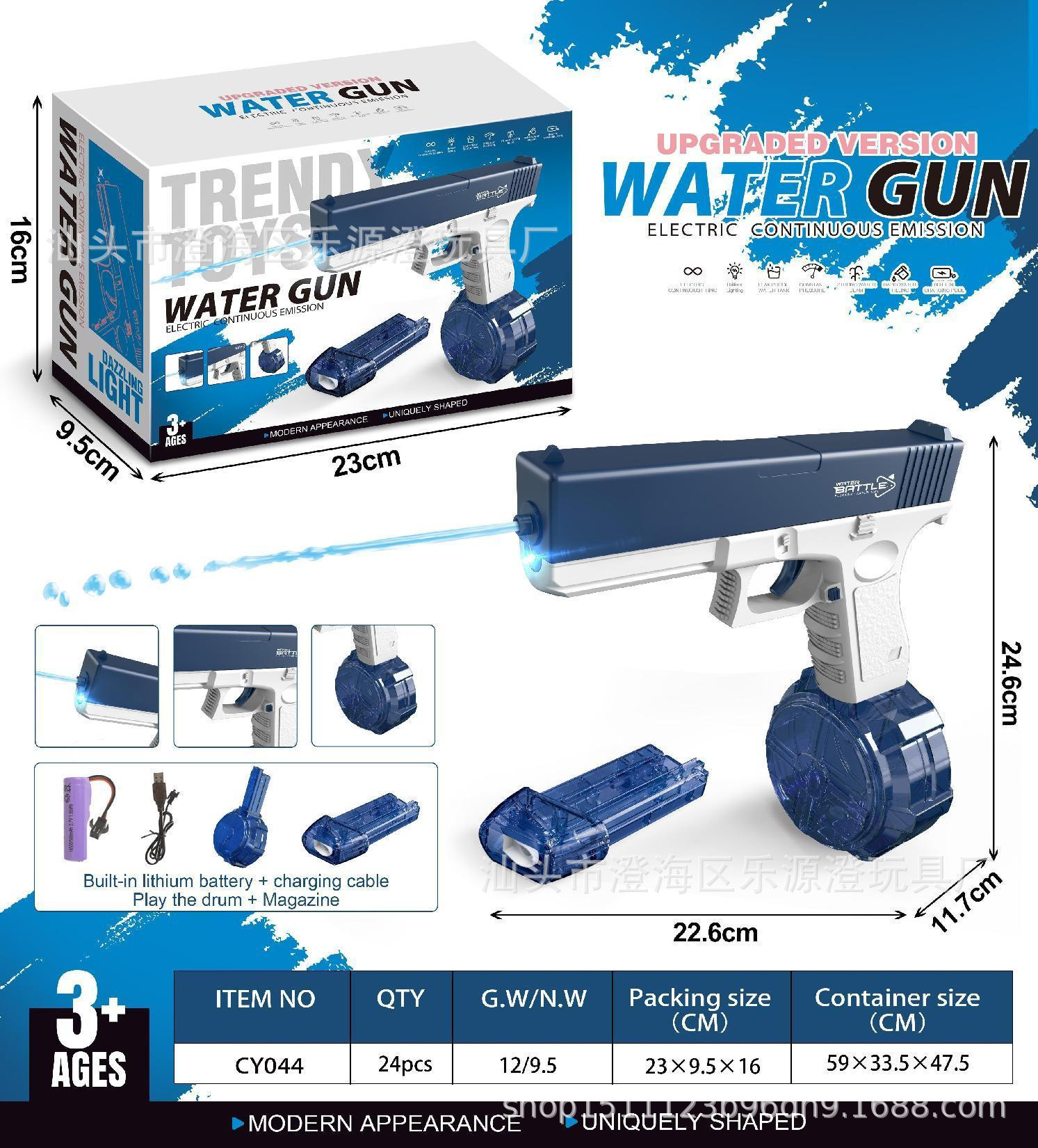 跨境新品沙漠之鹰联动透明版水枪玩具电动水枪大容量连发玩具水枪