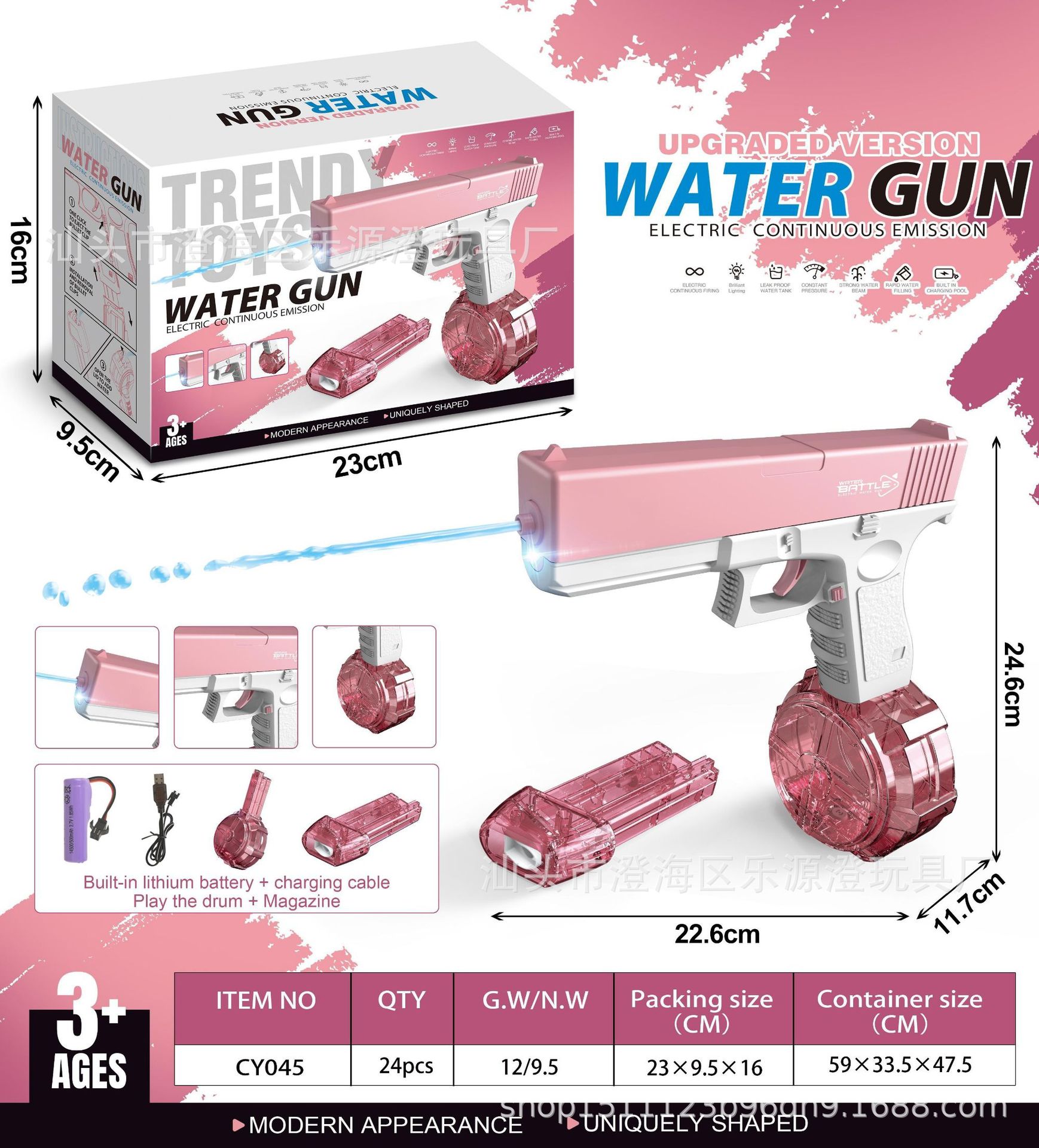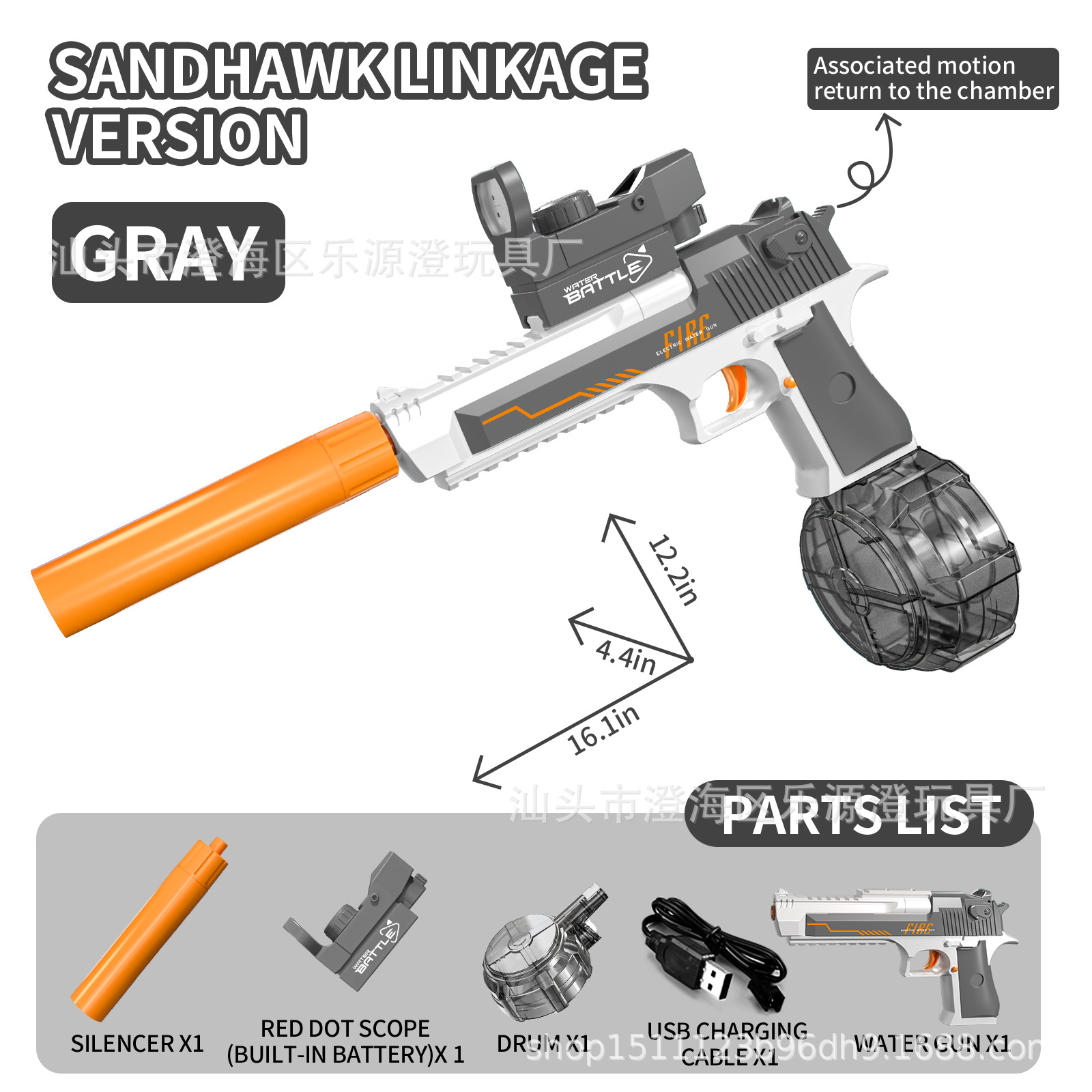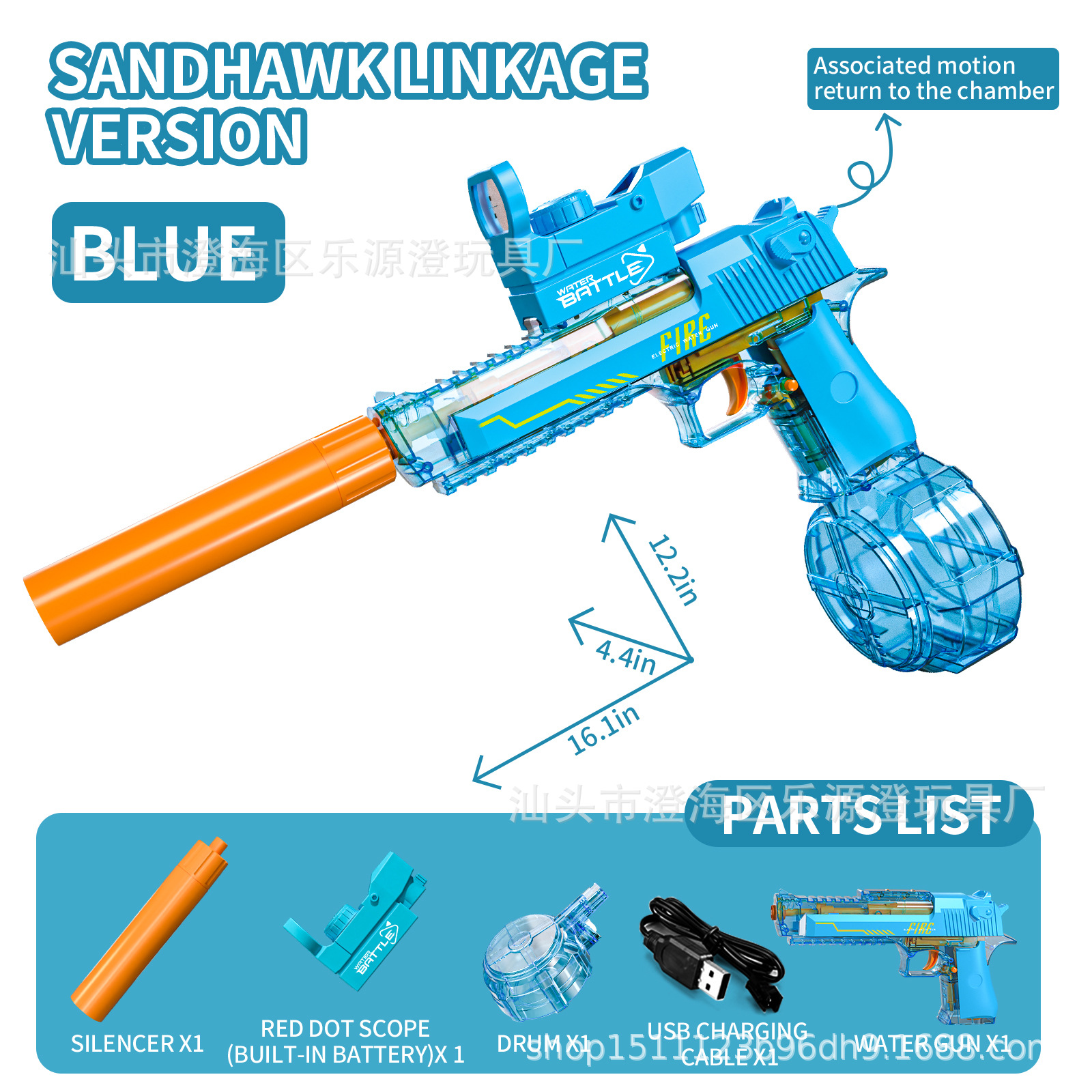 跨境新品沙漠之鹰联动透明版水枪玩具电动水枪大容量连发玩具水枪