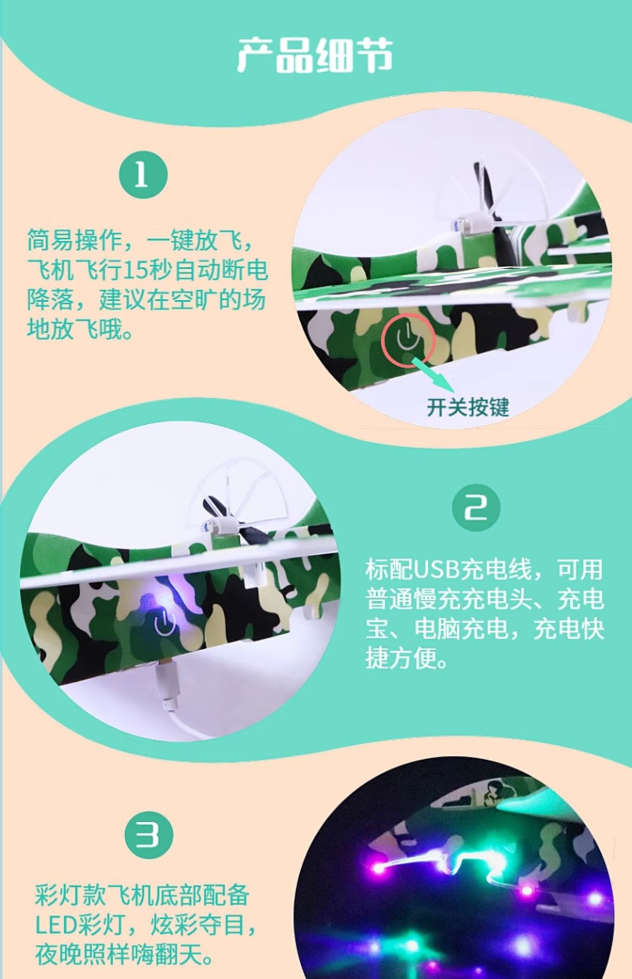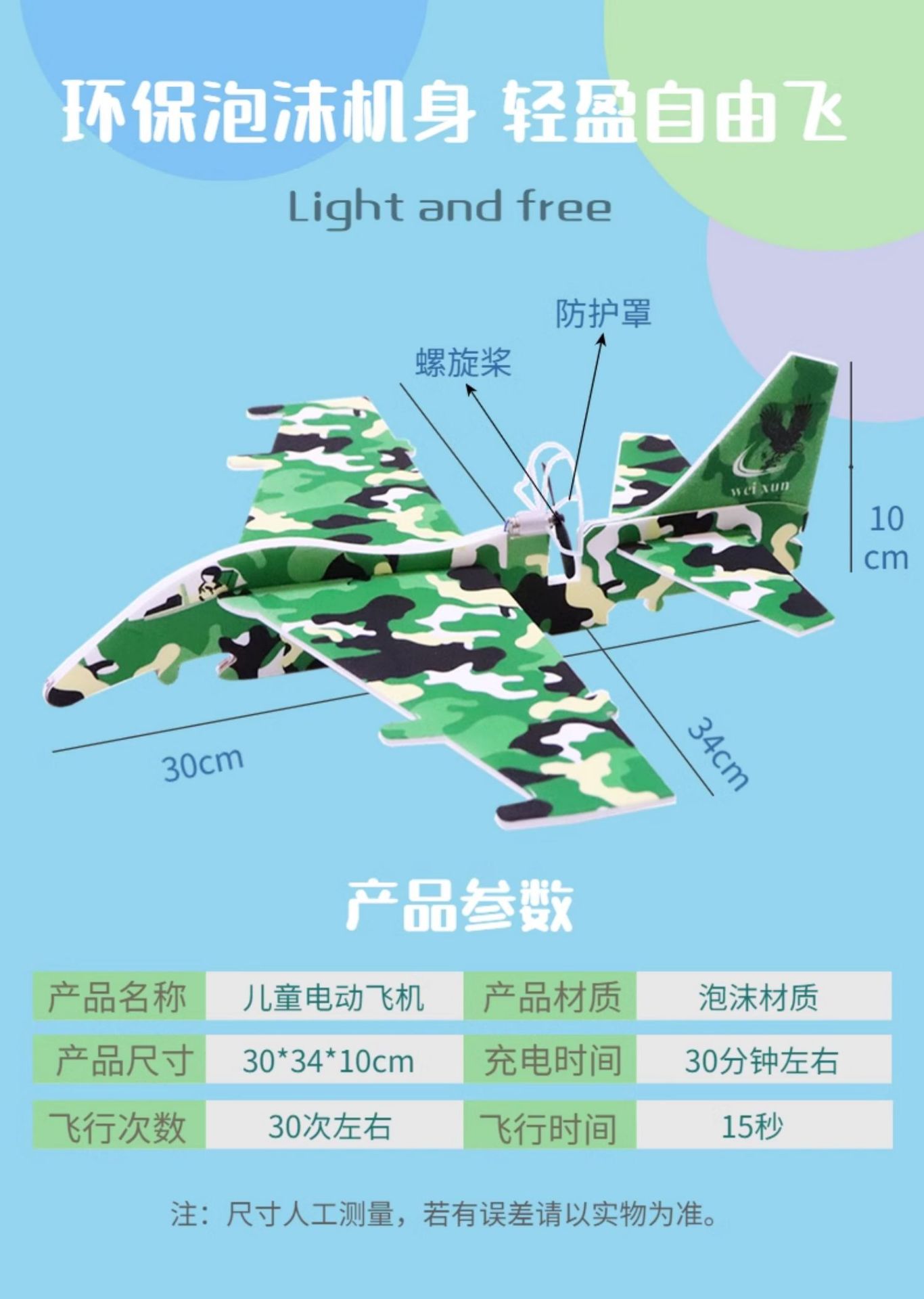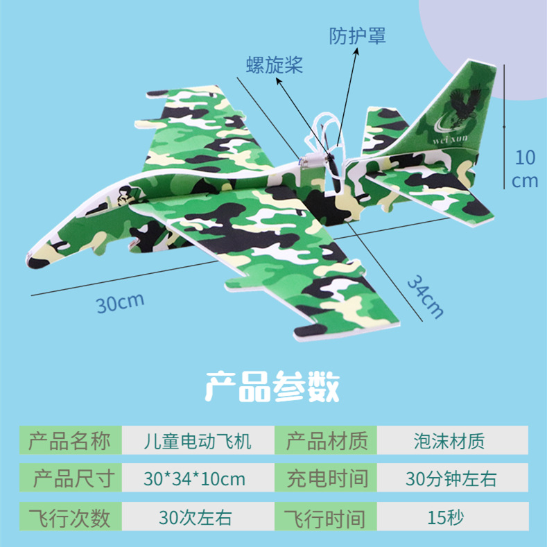 电动飞机玩具儿童泡沫小飞机航模模型拼装手抛充电户外战斗滑翔机