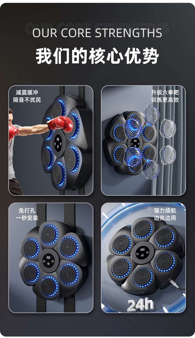 智能拳击音乐拳击机家用成人电子墙靶儿童打拳反应靶发泄训练器材