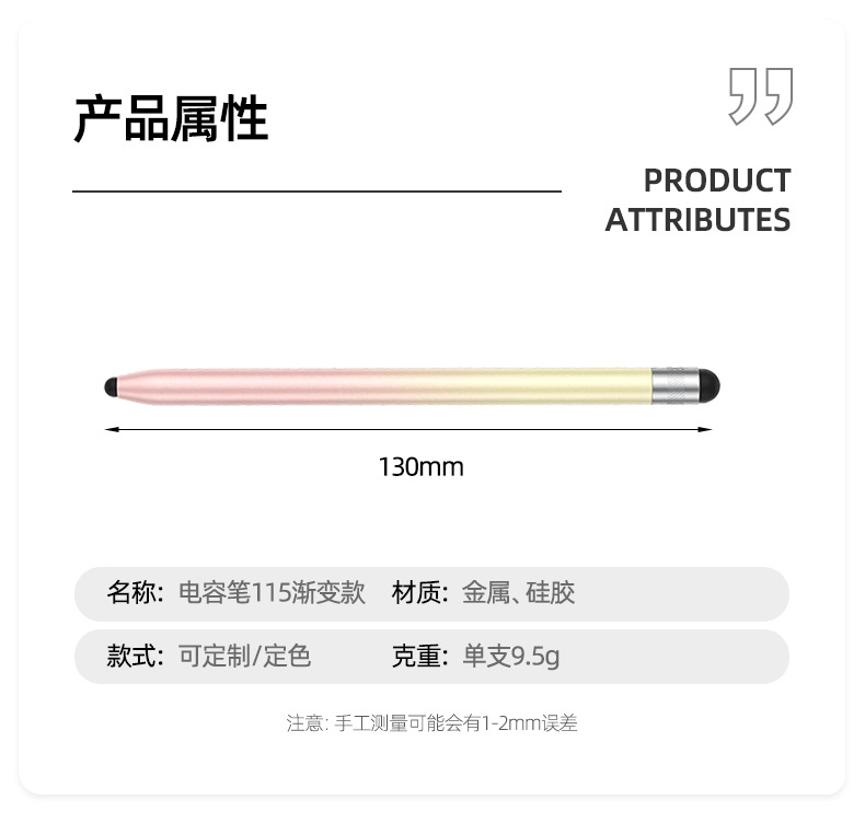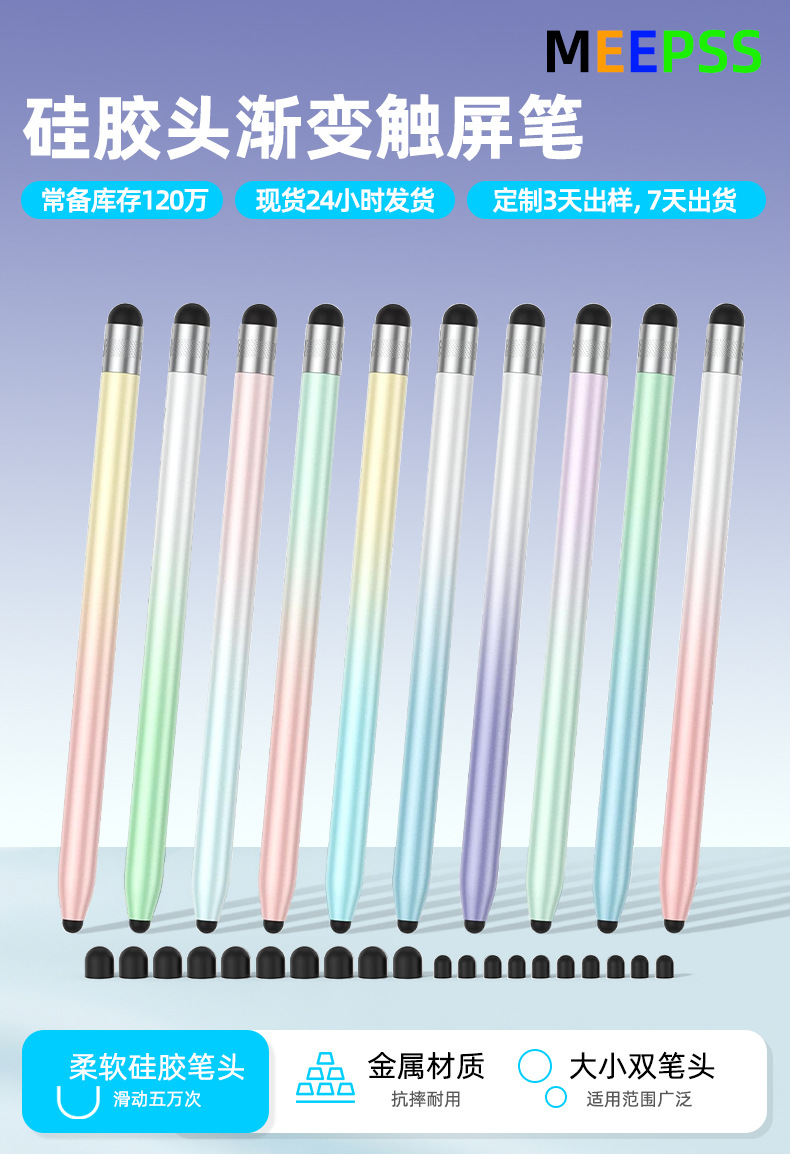 渐变色双头触控笔平板智能手机电容笔橡胶头安卓通用剪辑触屏笔