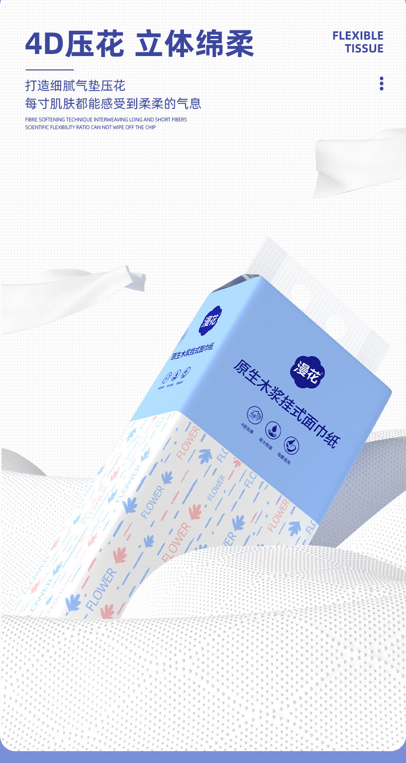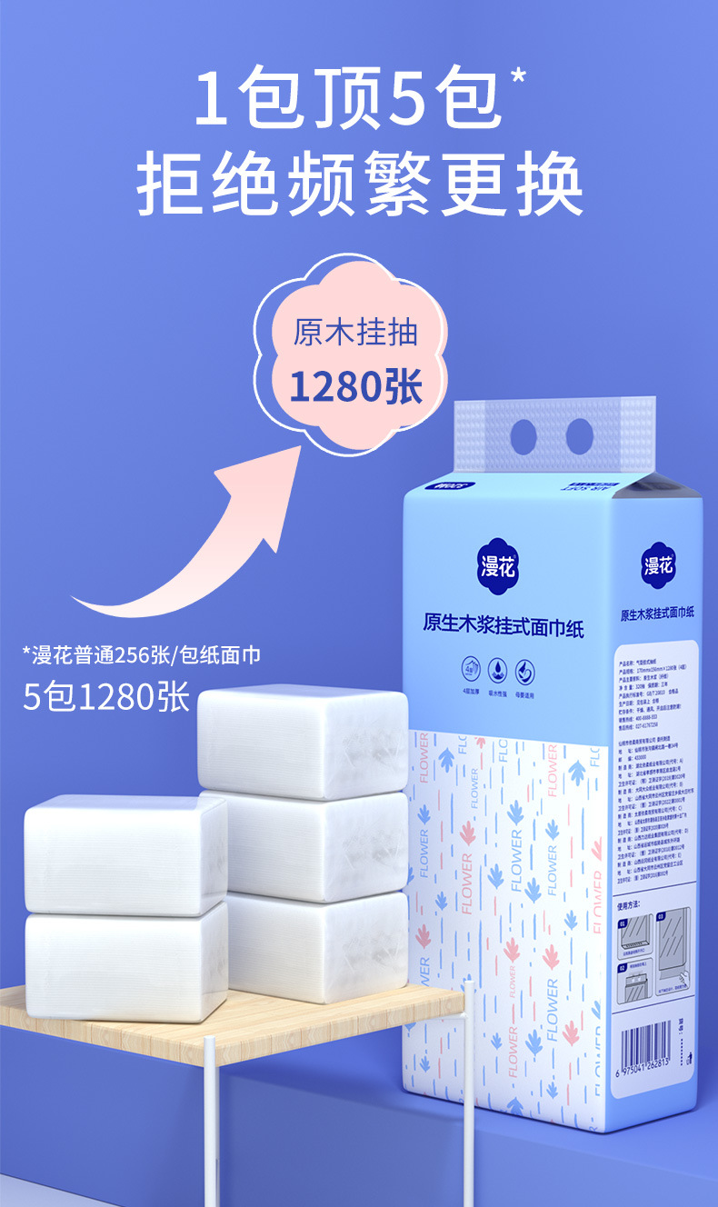 漫花挂式抽纸1280张整箱纸巾家用面巾纸加厚餐巾纸厕用卫生纸代发