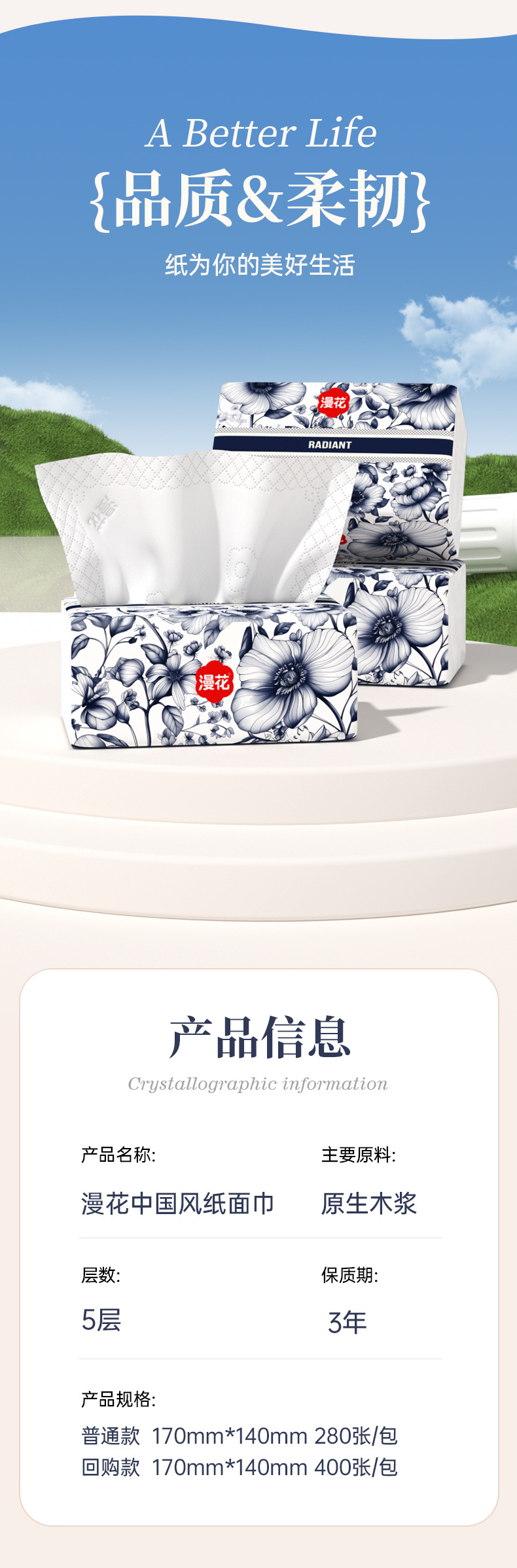 漫花抽纸中国风系列家用纸巾整箱餐巾纸大包卫生纸原木加厚面巾纸