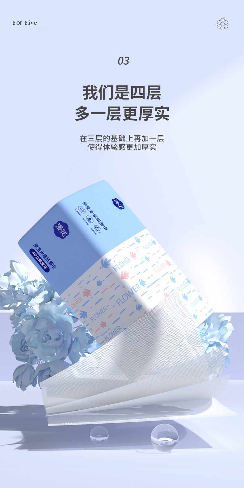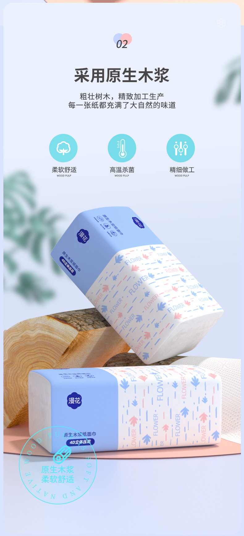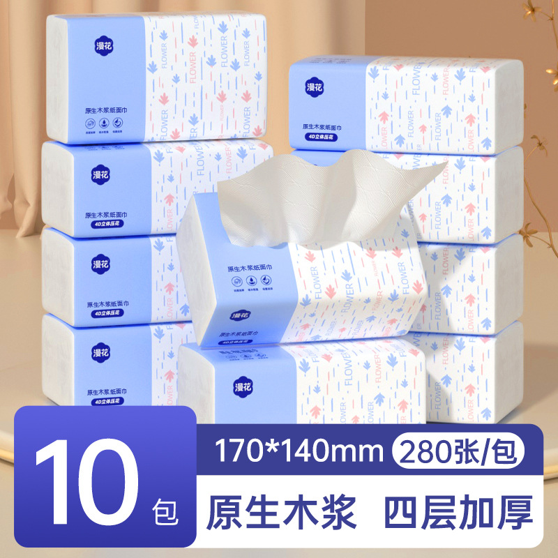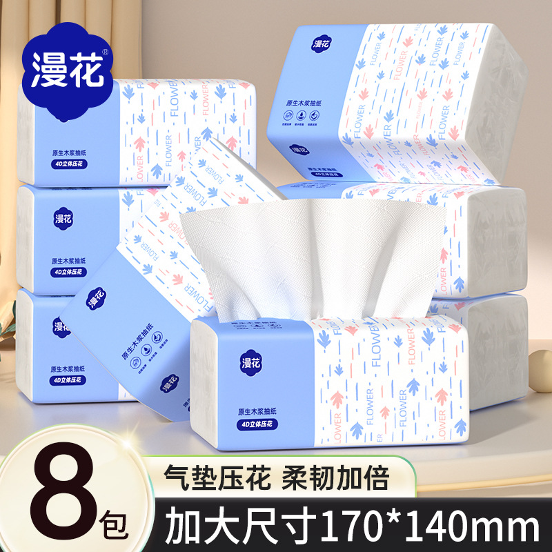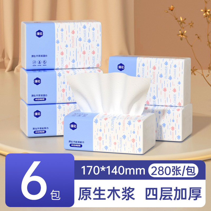 漫花纸巾抽纸30包整箱面巾纸原木四层餐巾纸气垫柔家用卫生纸代发