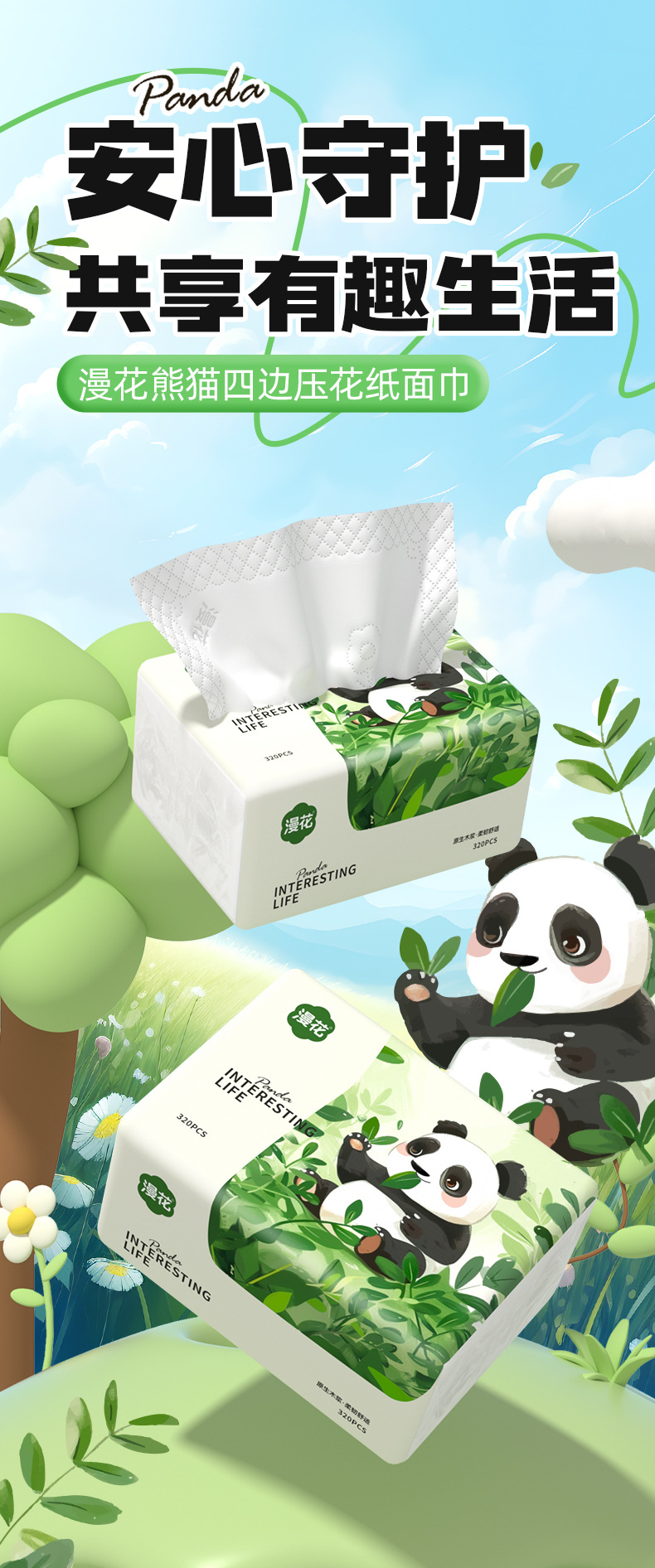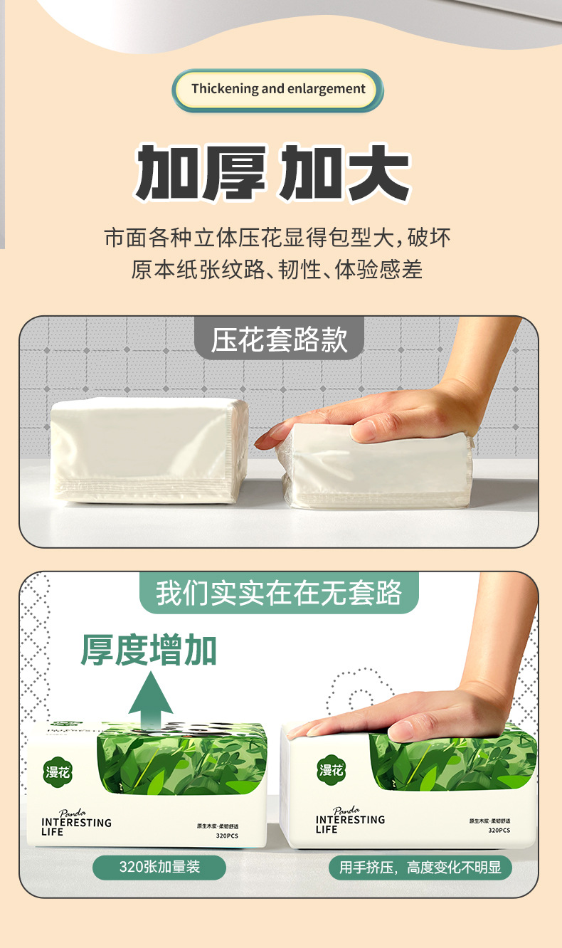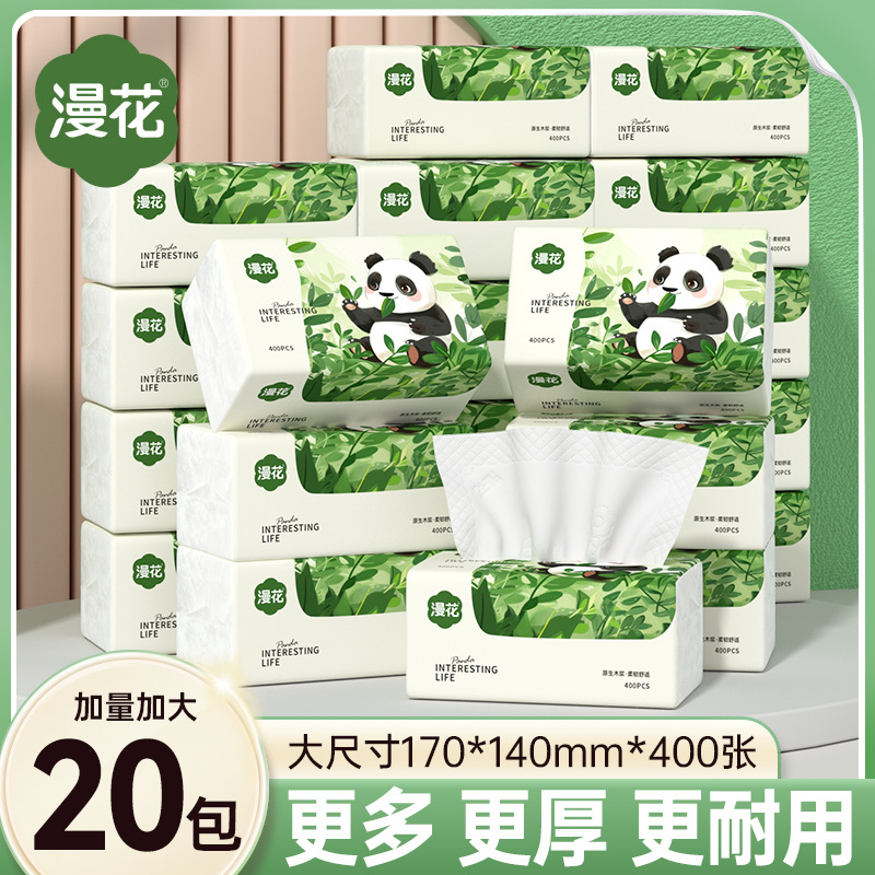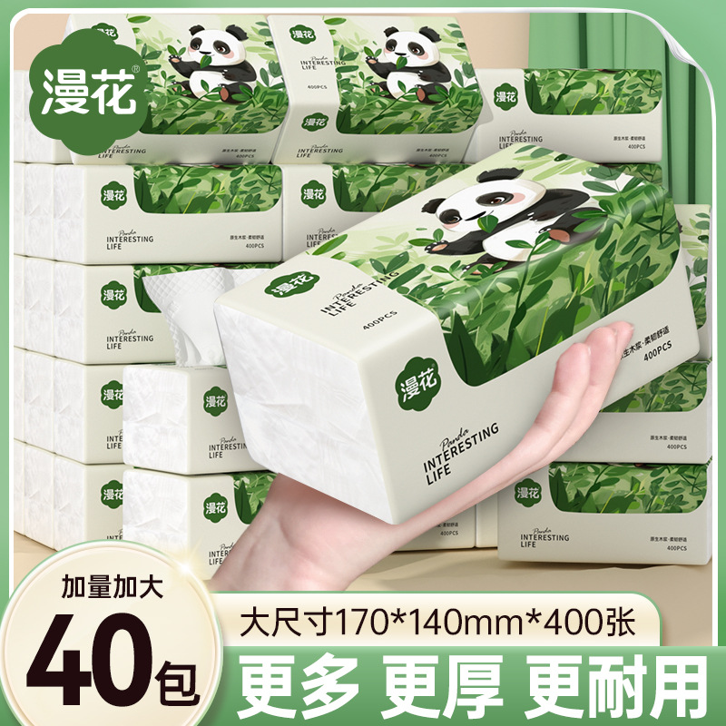 漫花抽纸家用餐巾纸320张实惠装面纸巾加厚原木清洁卫生纸代发