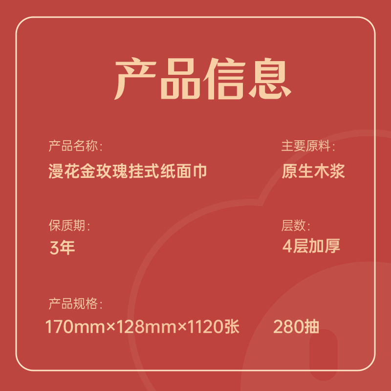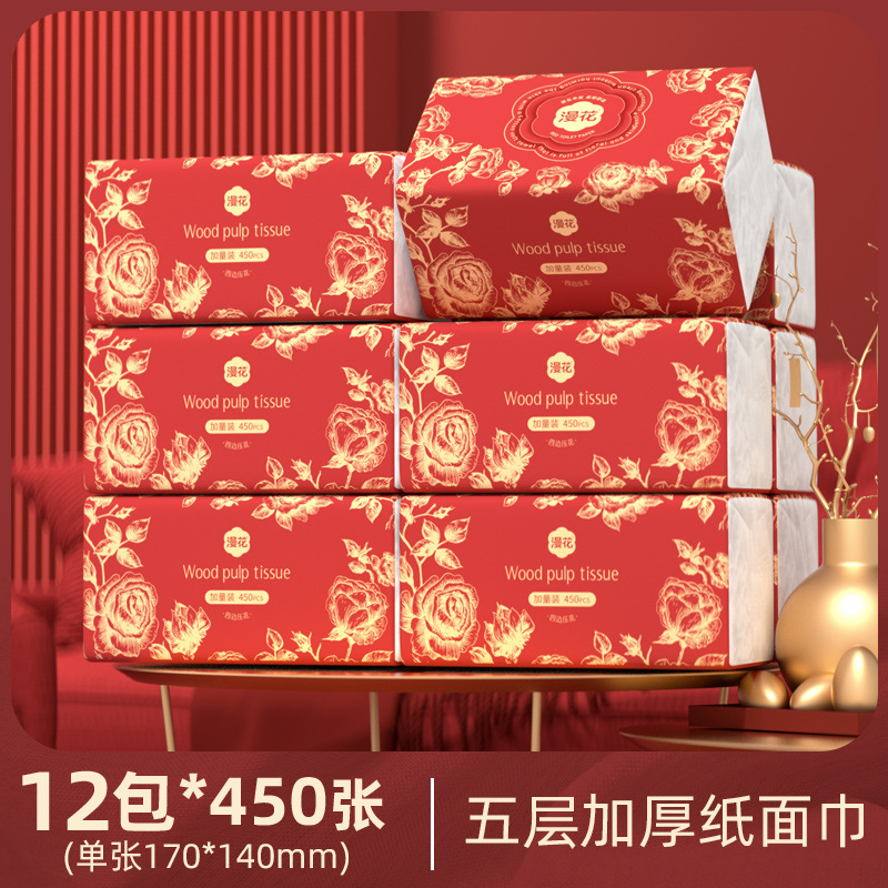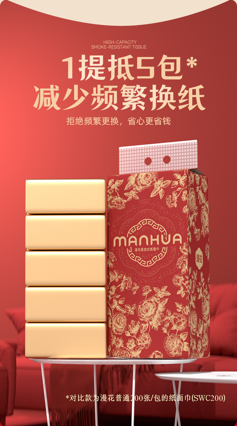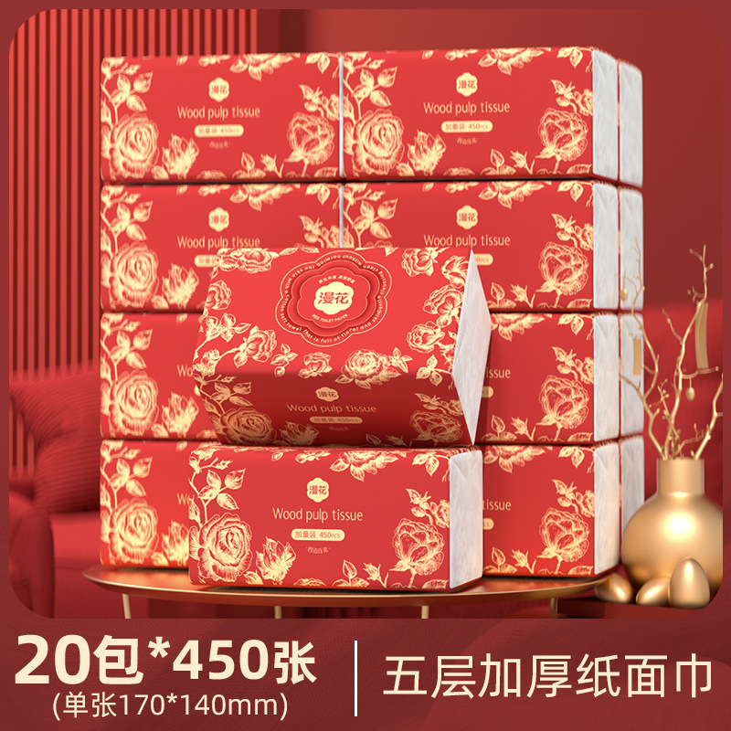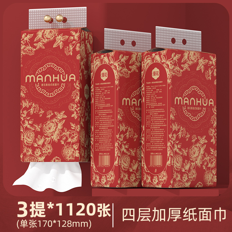 新年款10提装挂式抽纸1120张原木家用卫生纸巾四层加厚面巾纸漫花