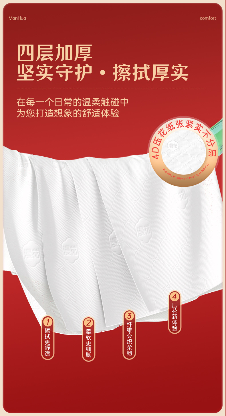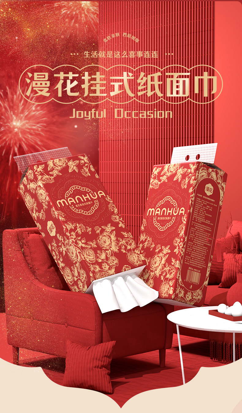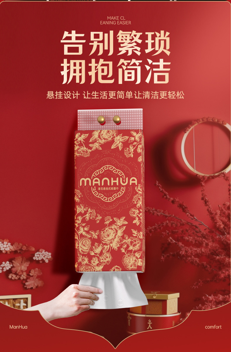 新年款10提装挂式抽纸1120张原木家用卫生纸巾四层加厚面巾纸漫花