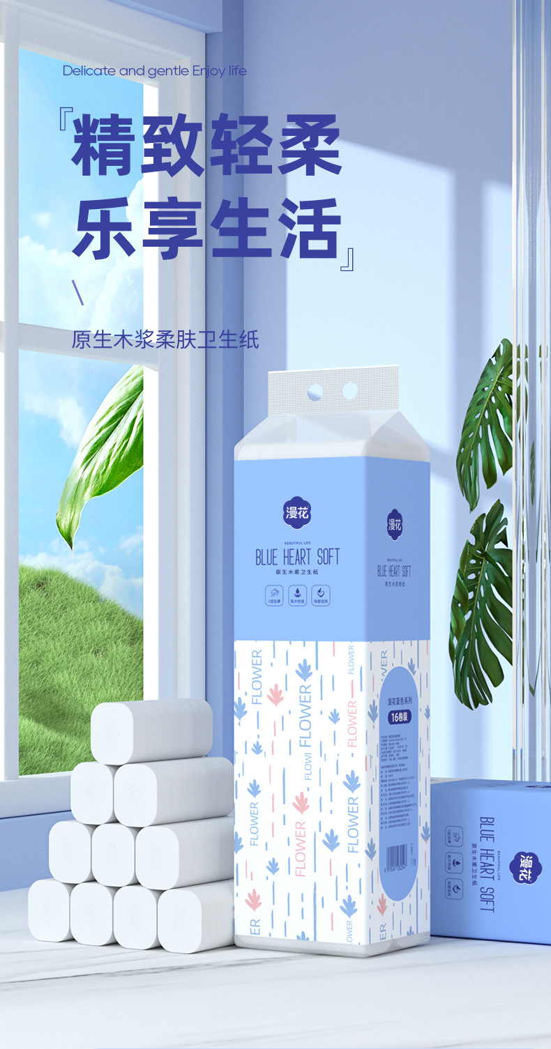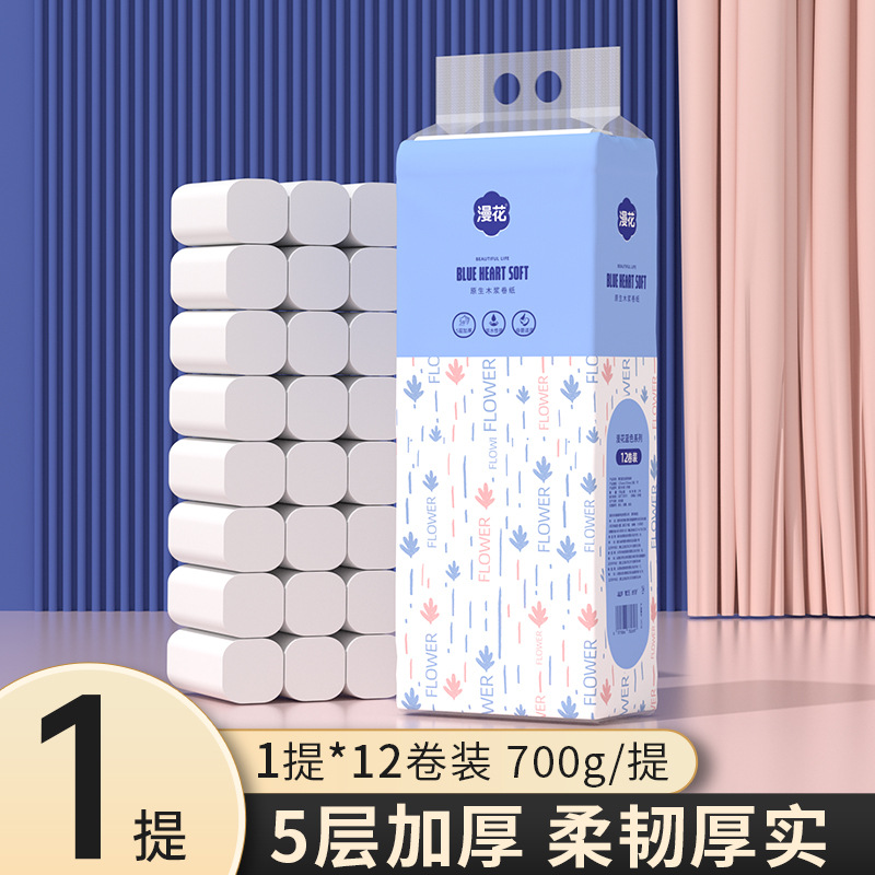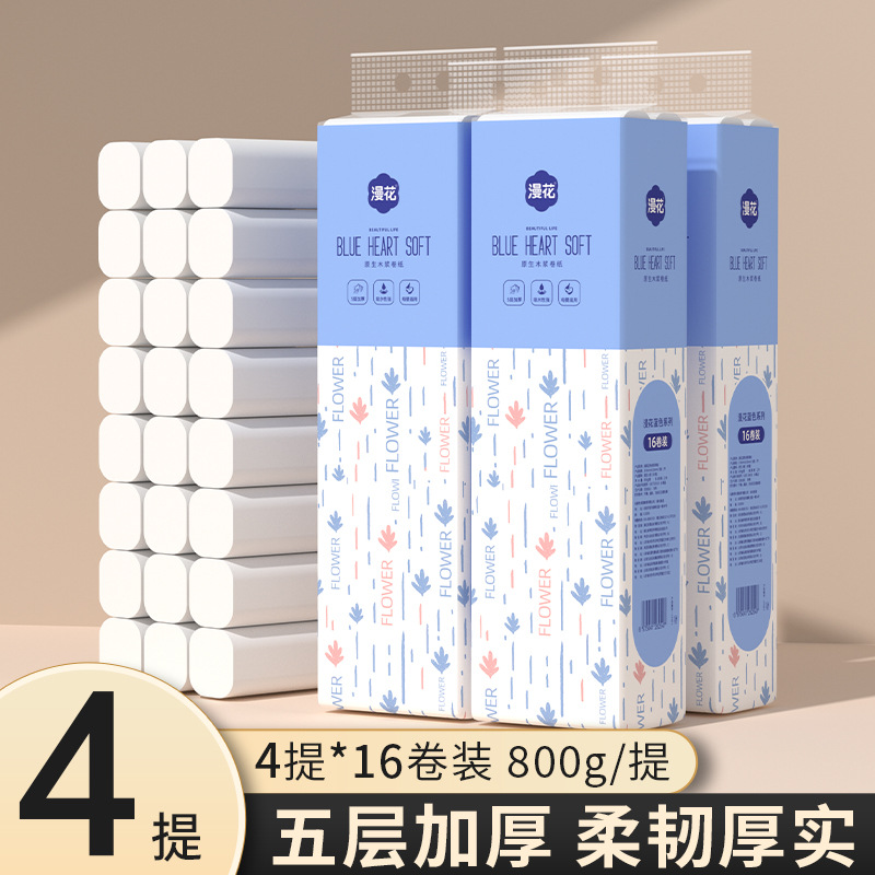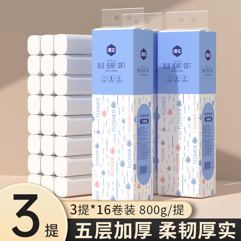 漫花卫生纸16卷家用卷纸实惠装原木无芯卷筒纸整提纸巾厂家代发