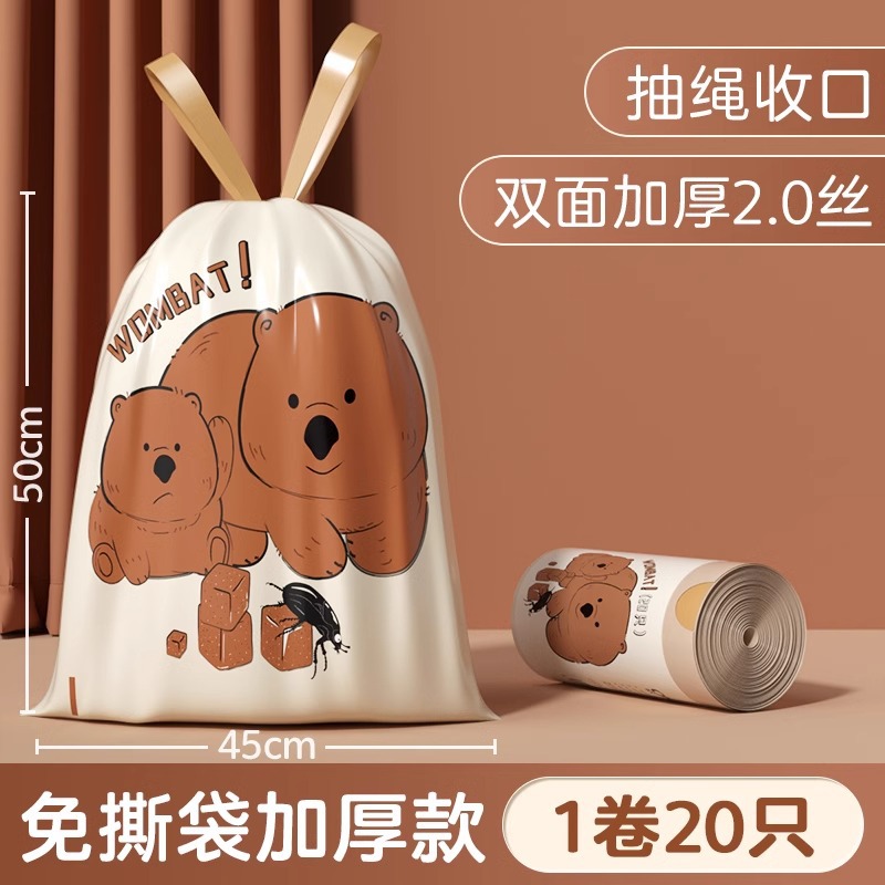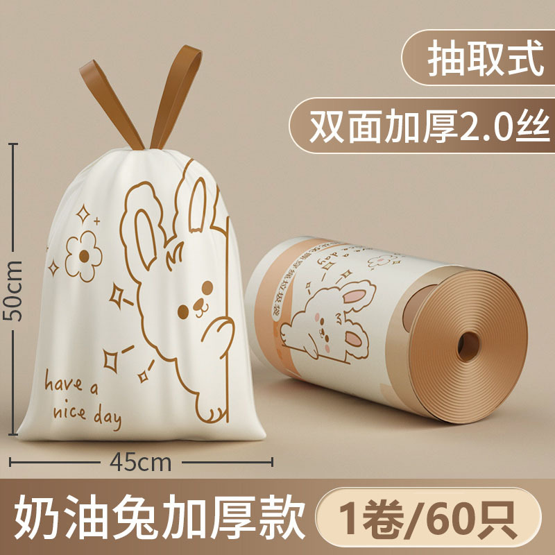 欧凯斯免撕抽绳垃圾袋家用手提式厨房加厚款不脏手塑料袋带拎手