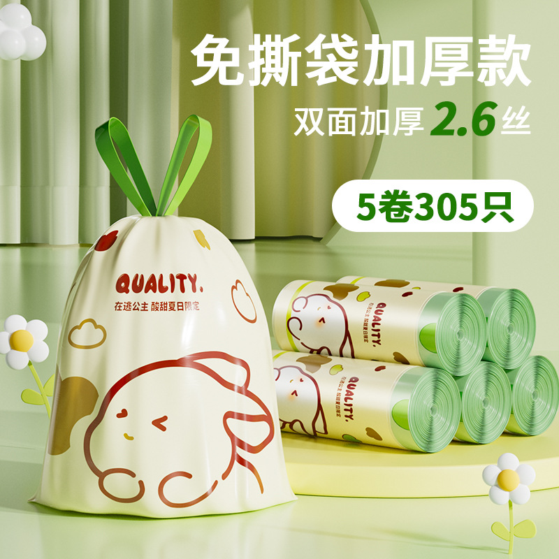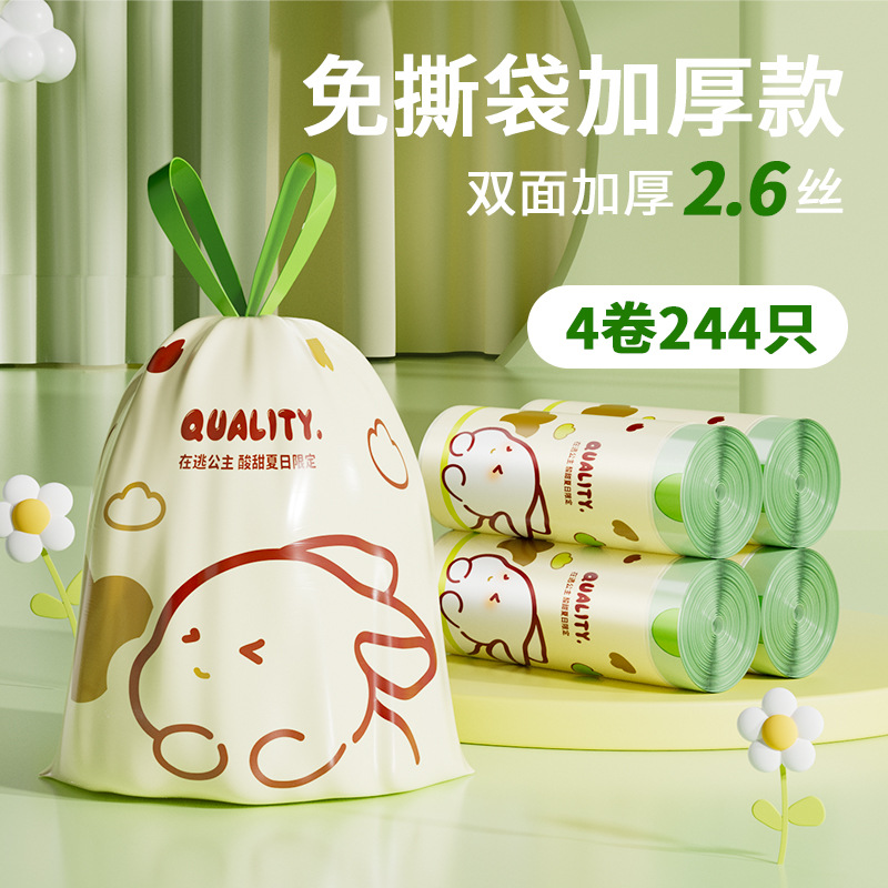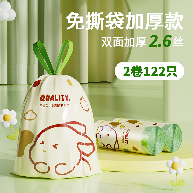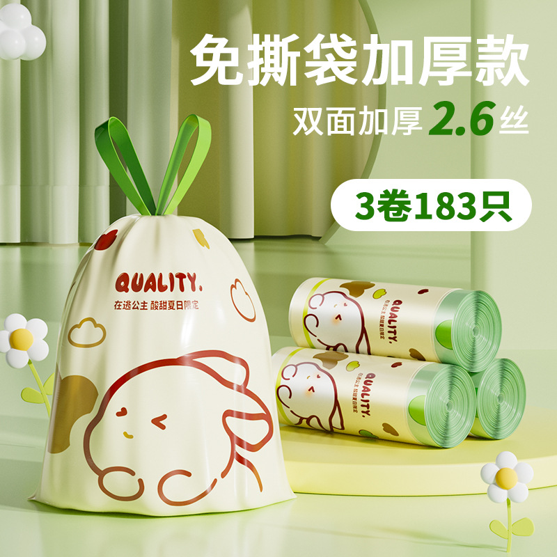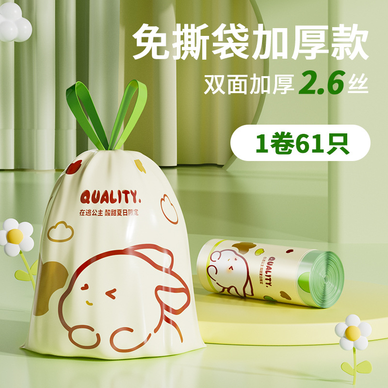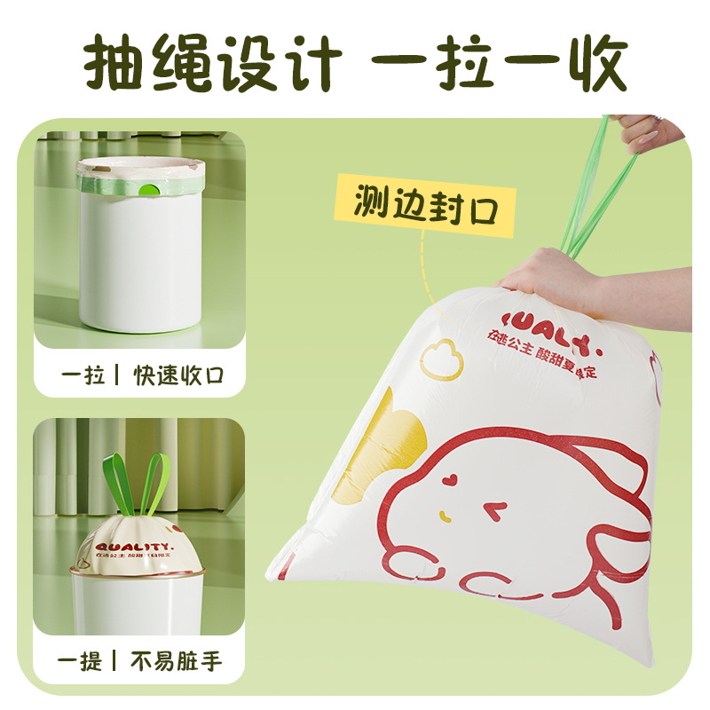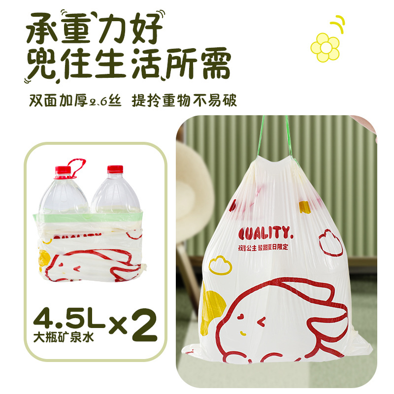 抽绳垃圾袋加厚不易破手提式塑料袋家用厨房厚款手提拉束绳垃圾袋