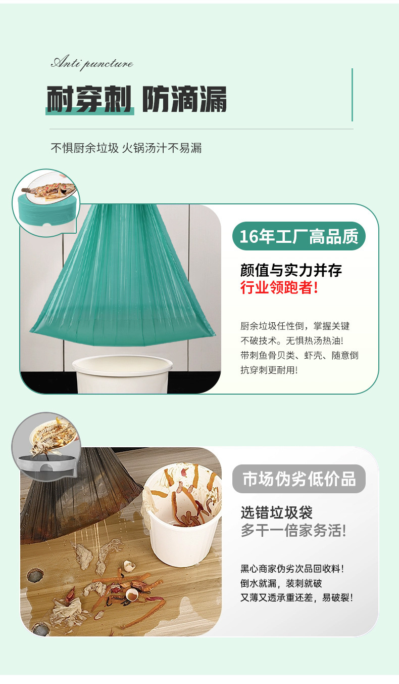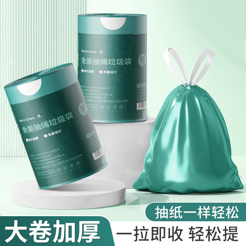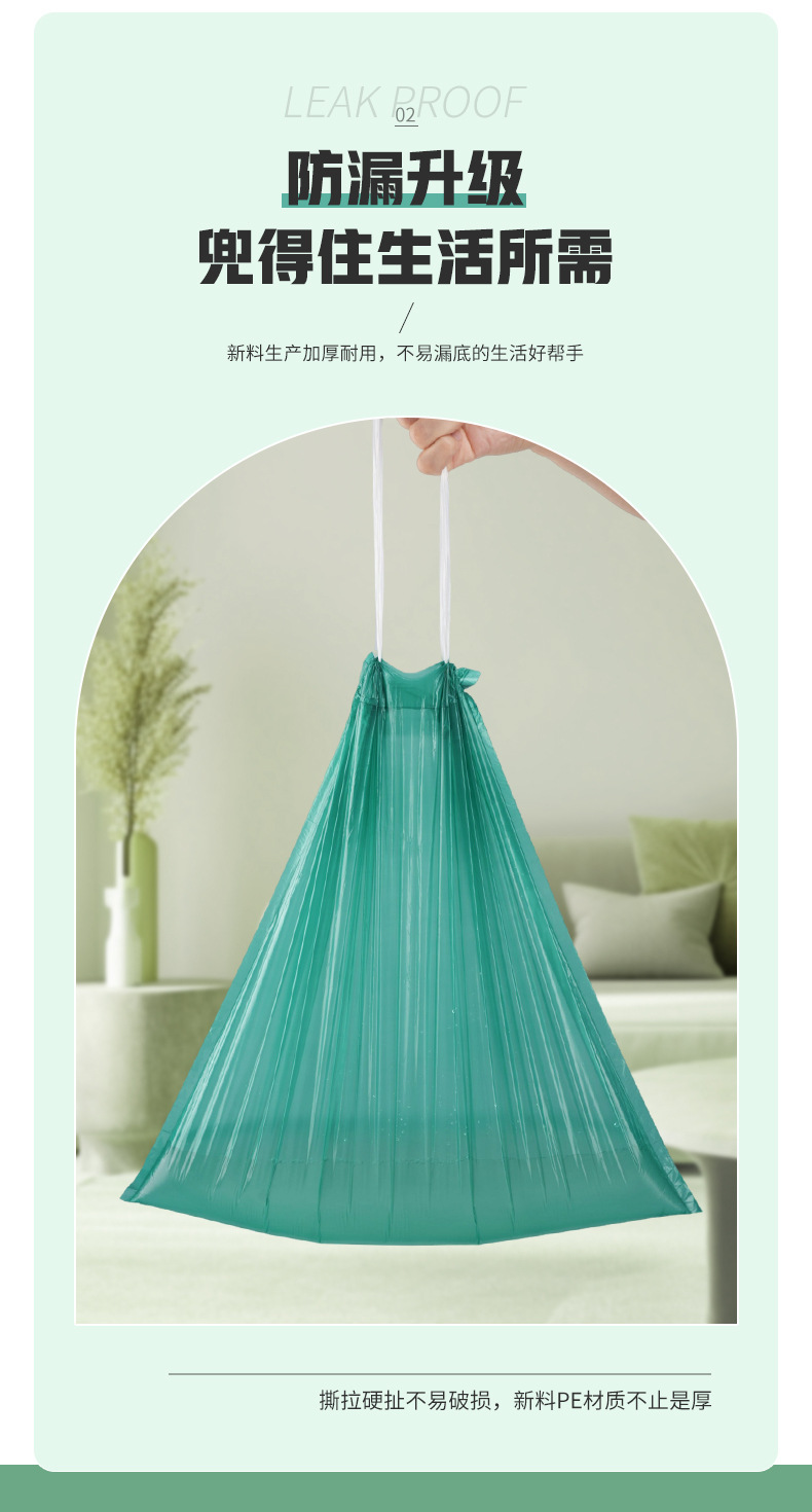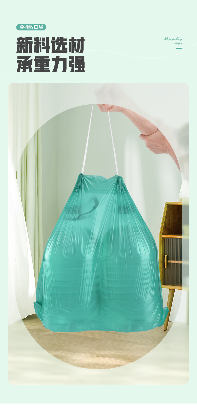 欧凯斯免撕抽绳加厚带拎手厨房垃圾袋家用居家塑料袋厚款手提式