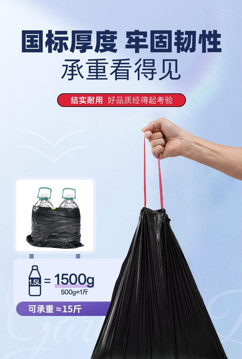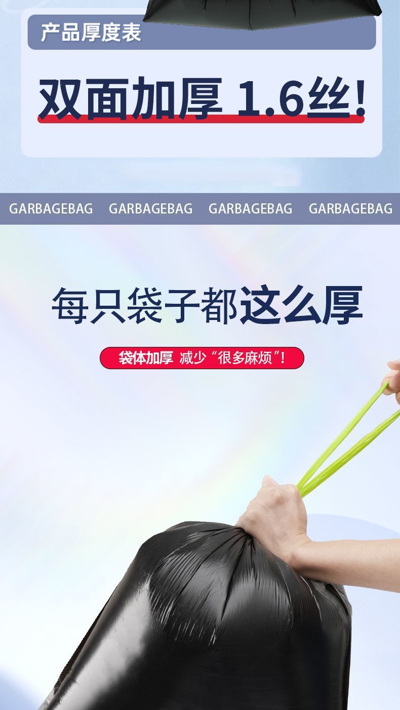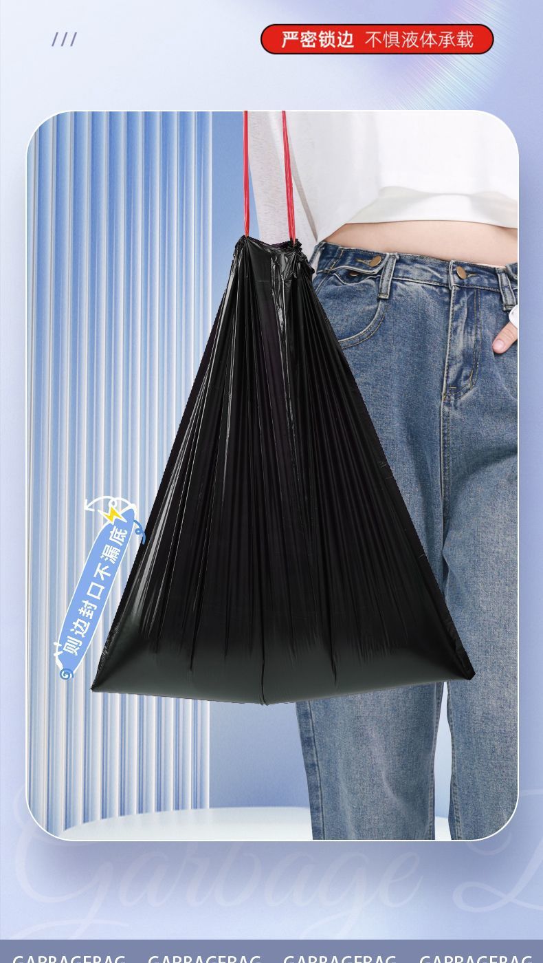垃圾袋黑色家用手提抽绳加厚不易破带拎手私密厨房清洁袋一件代发