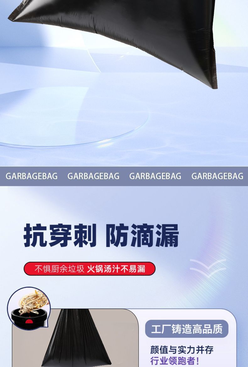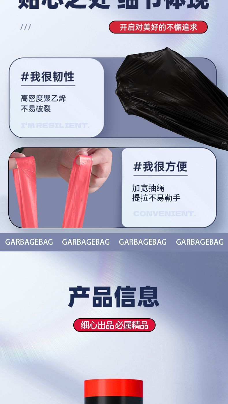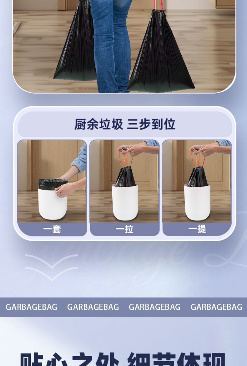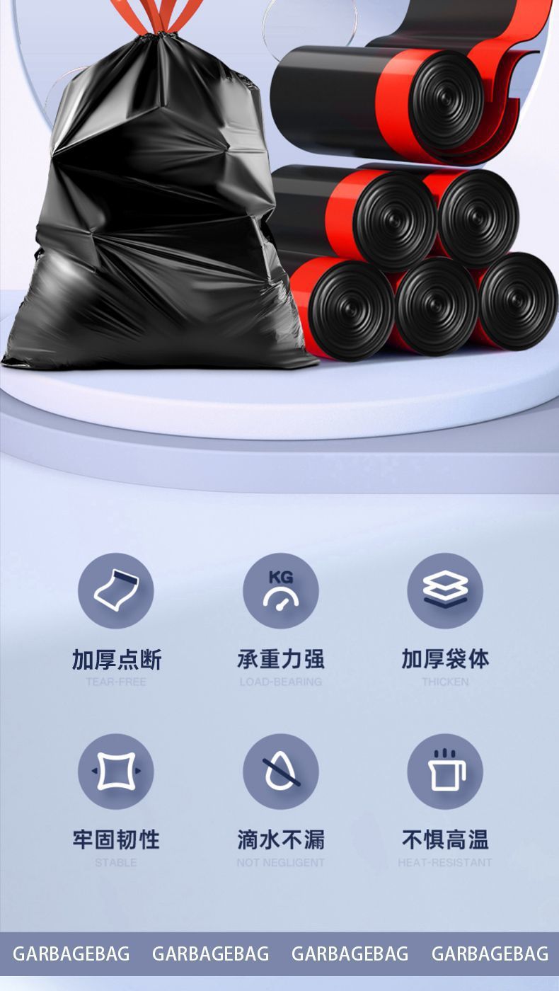 垃圾袋黑色家用手提抽绳加厚不易破带拎手私密厨房清洁袋一件代发
