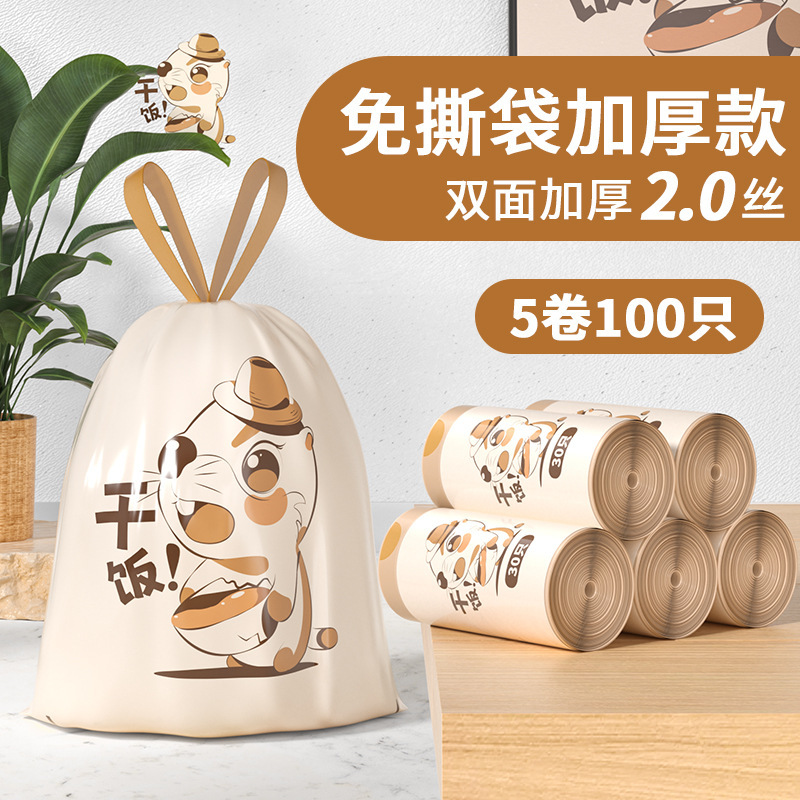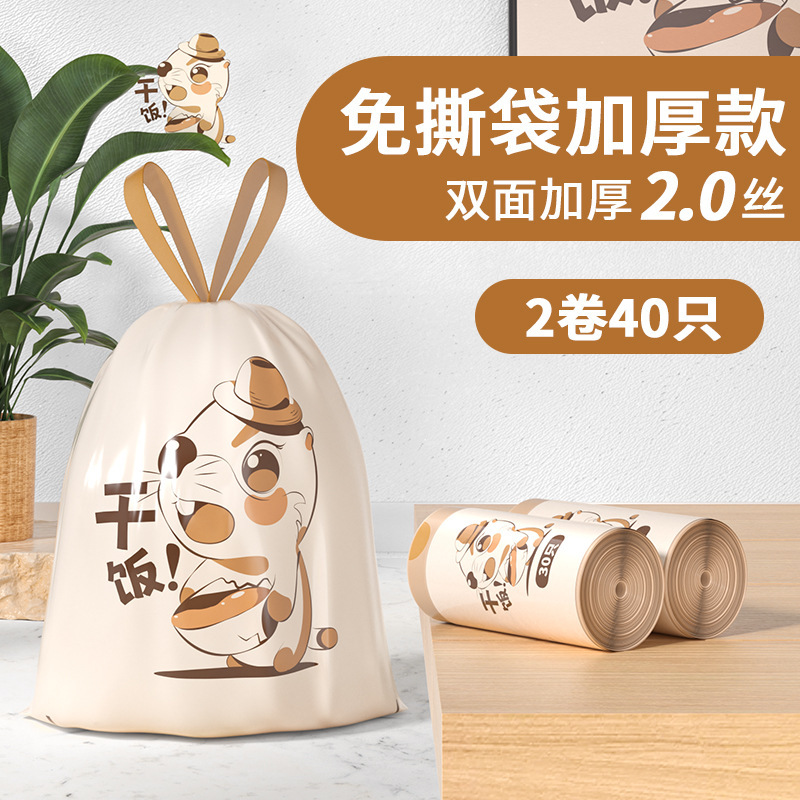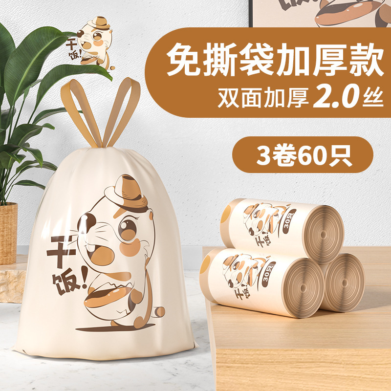 欧凯斯卡通免撕抽绳垃圾袋加厚不易破垃圾袋塑料袋家用厨房垃圾袋