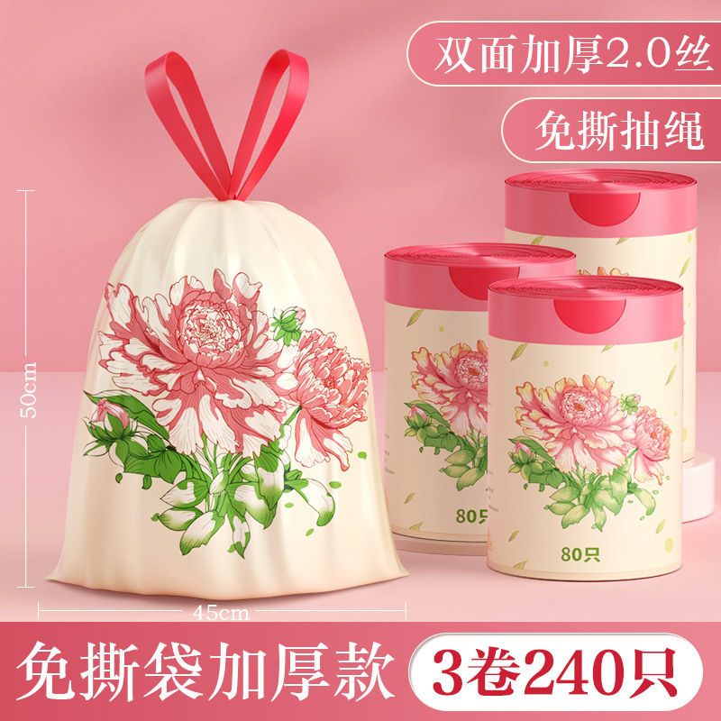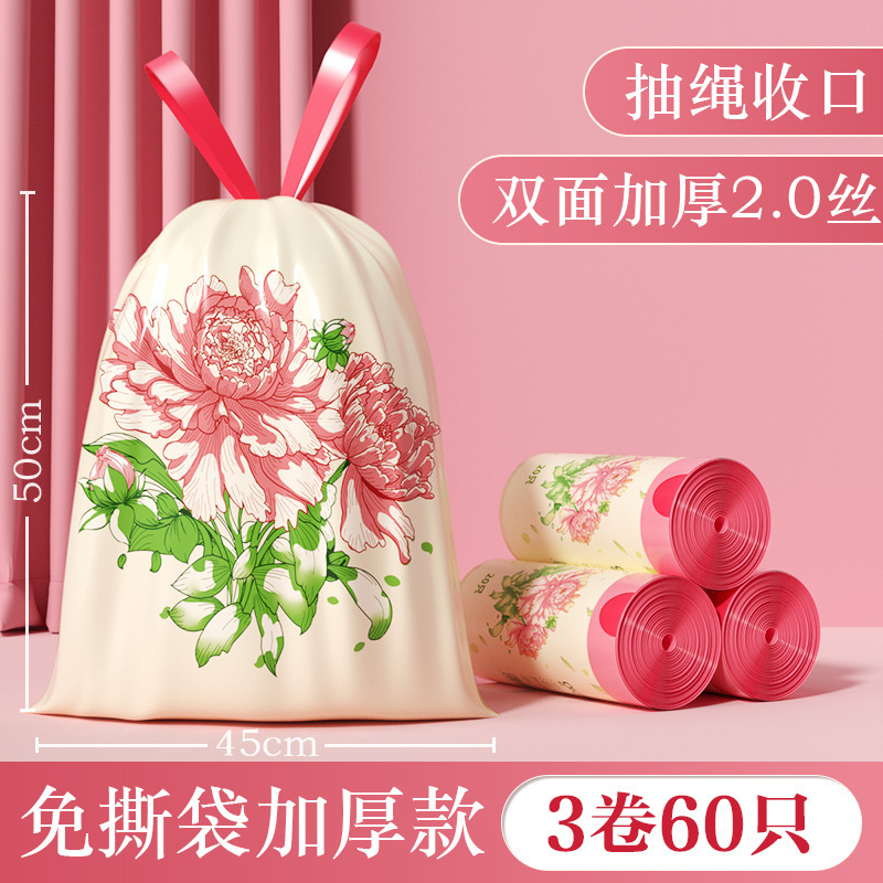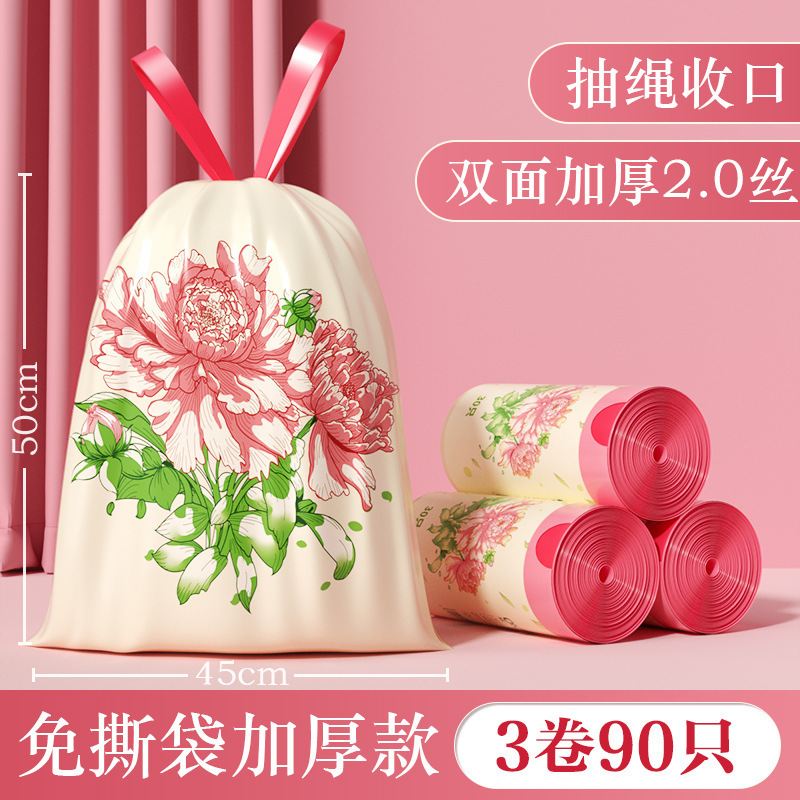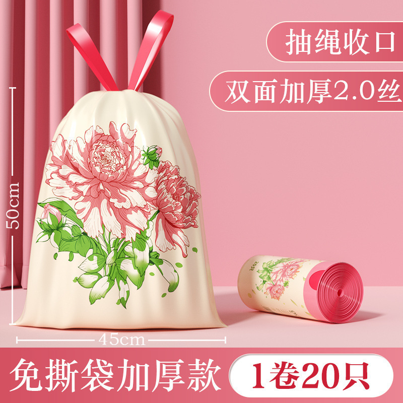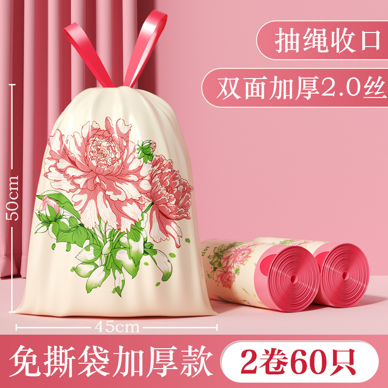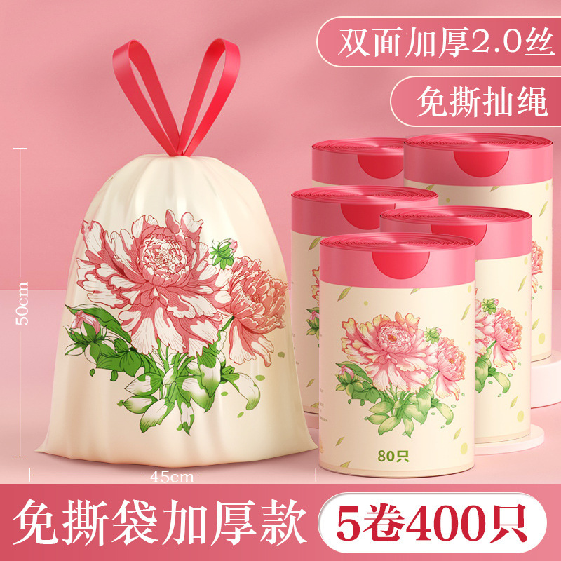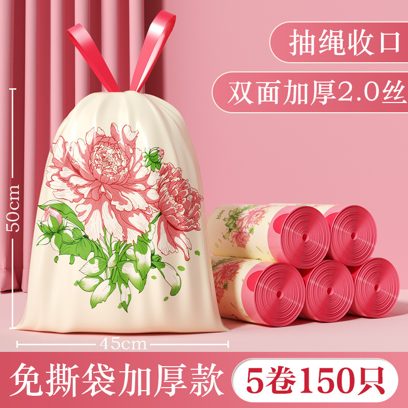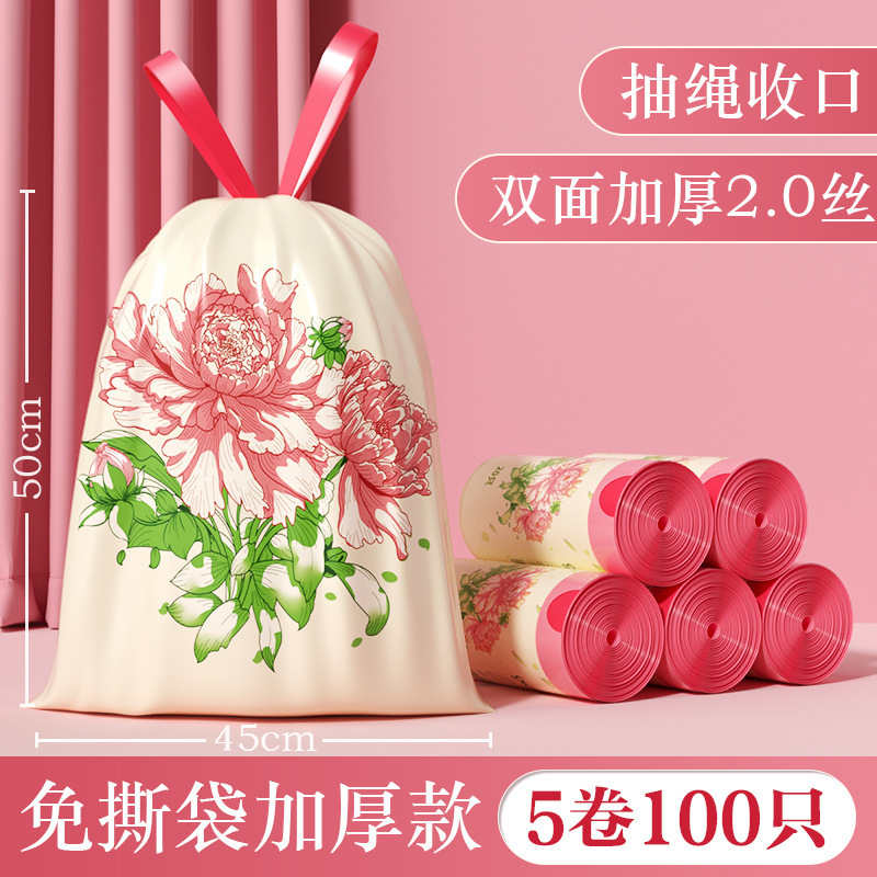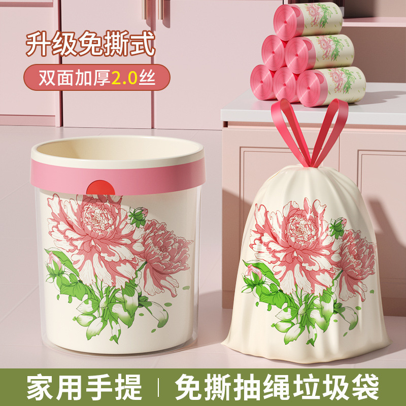 免撕抽绳式垃圾袋家用加厚款手提式大号拉束绳垃圾袋不易破代发