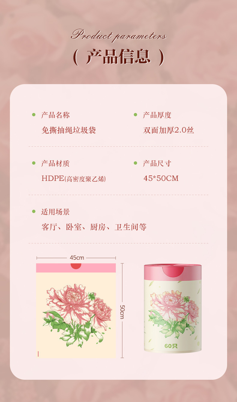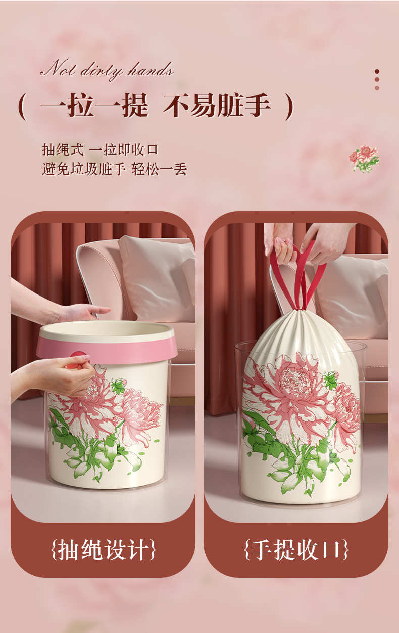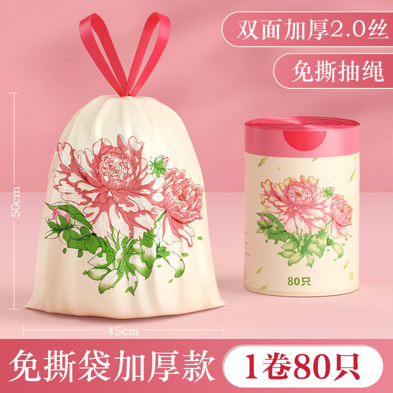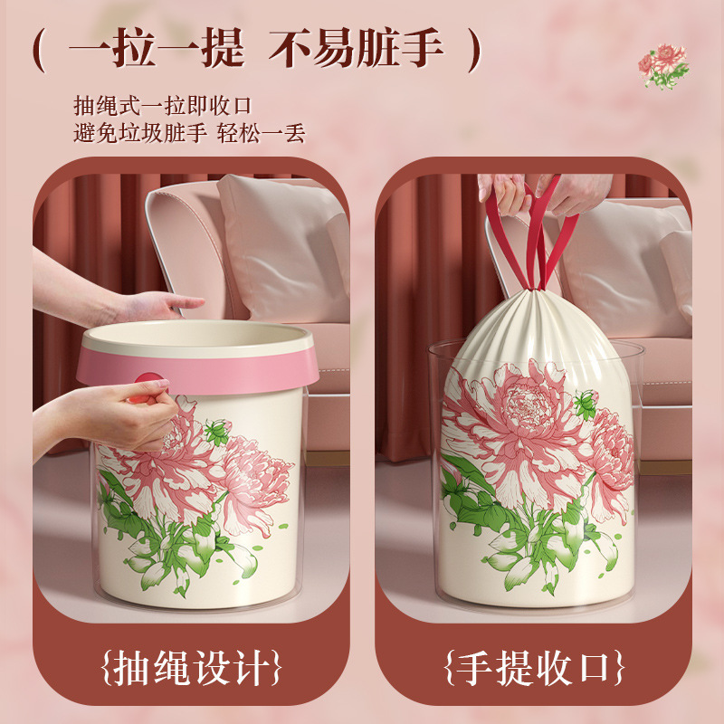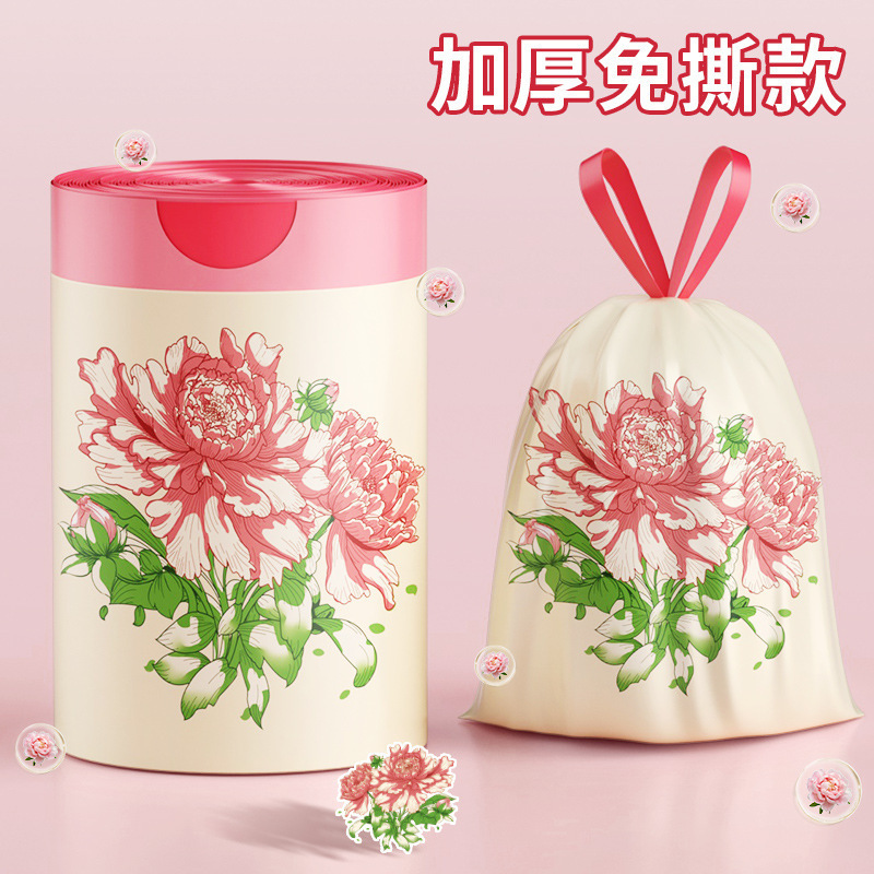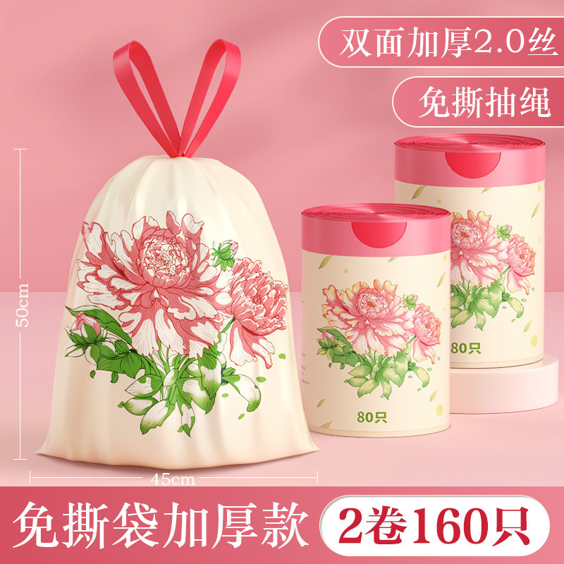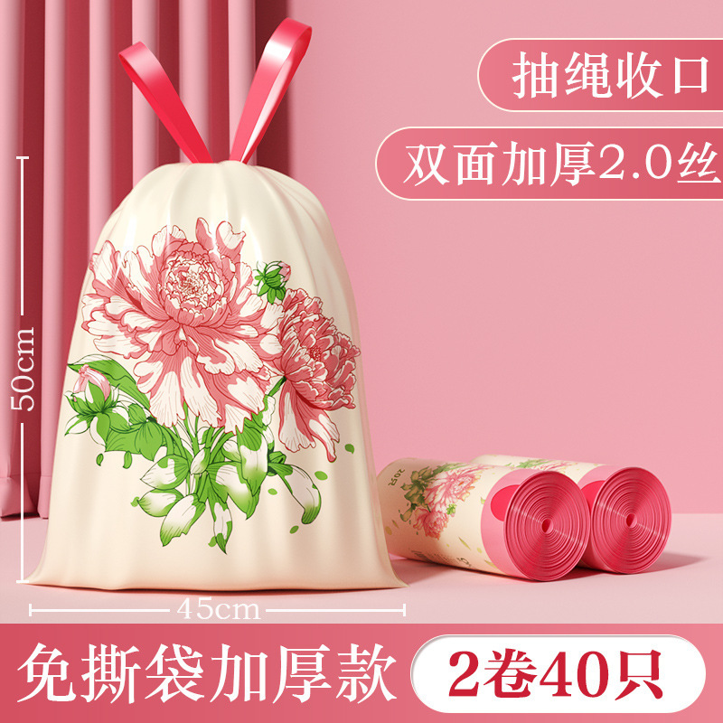免撕抽绳式垃圾袋家用加厚款手提式大号拉束绳垃圾袋不易破代发