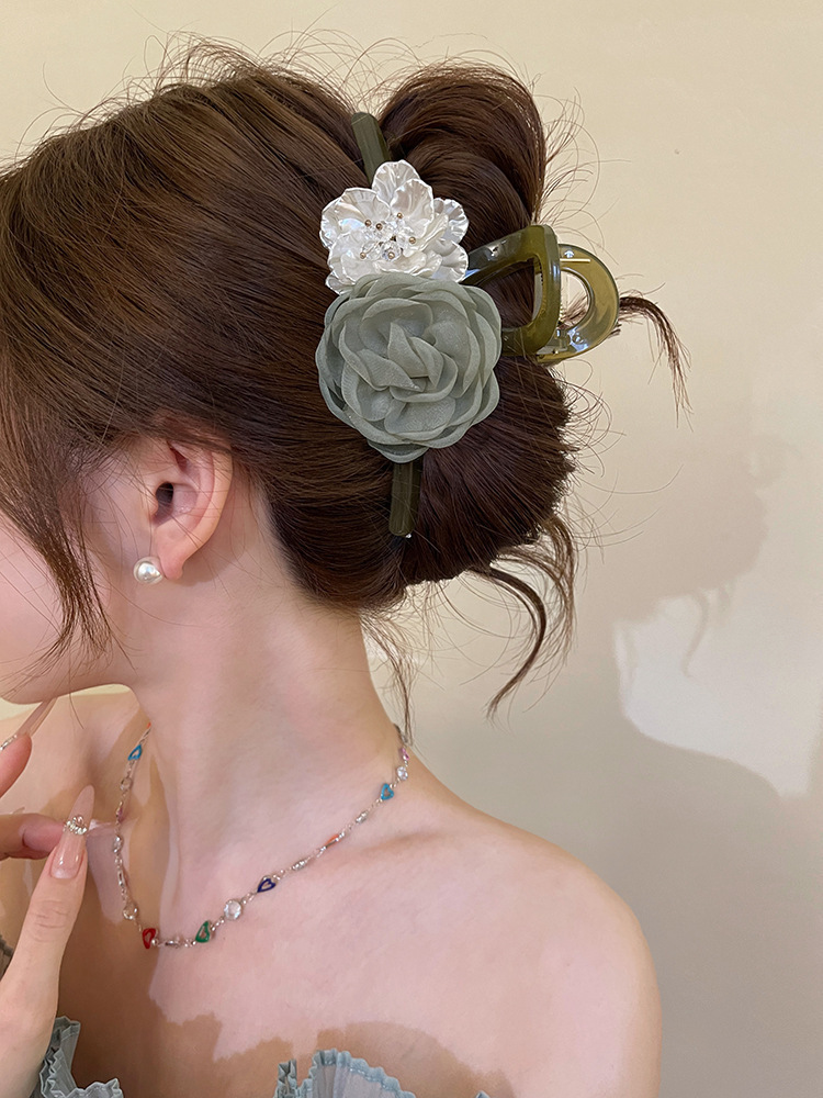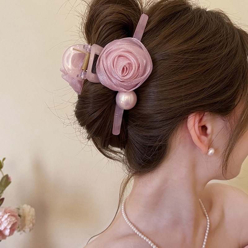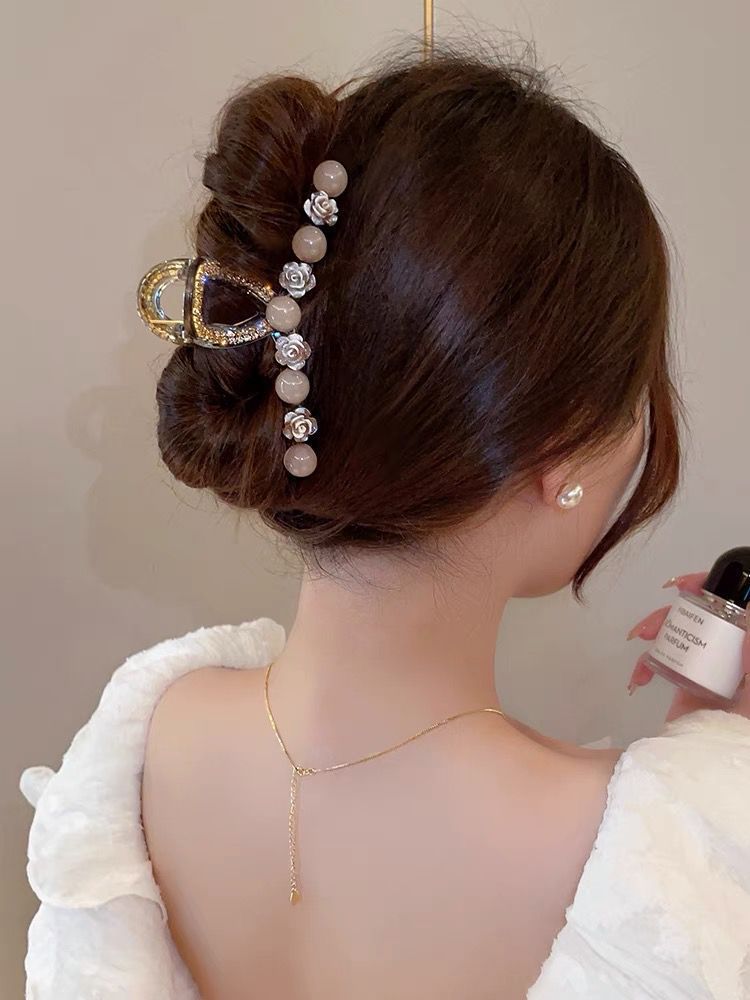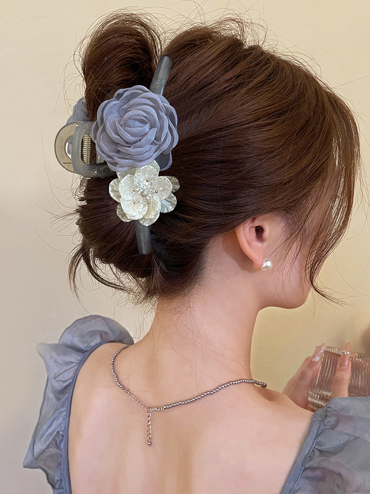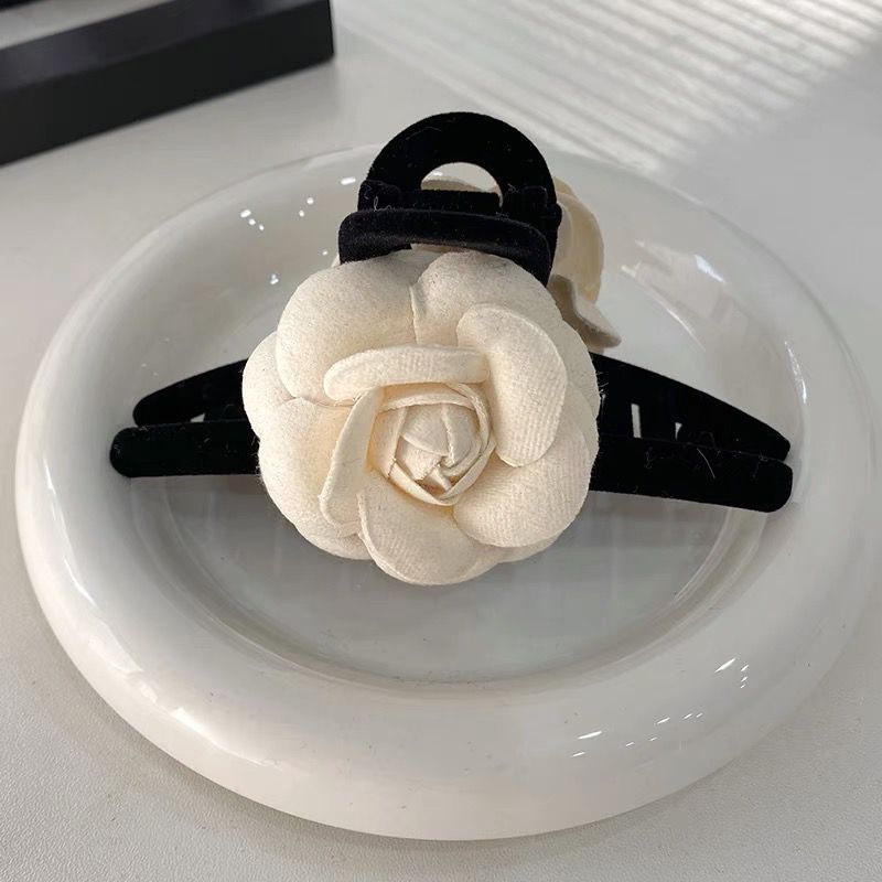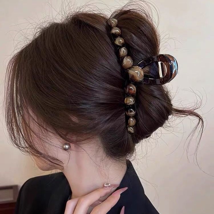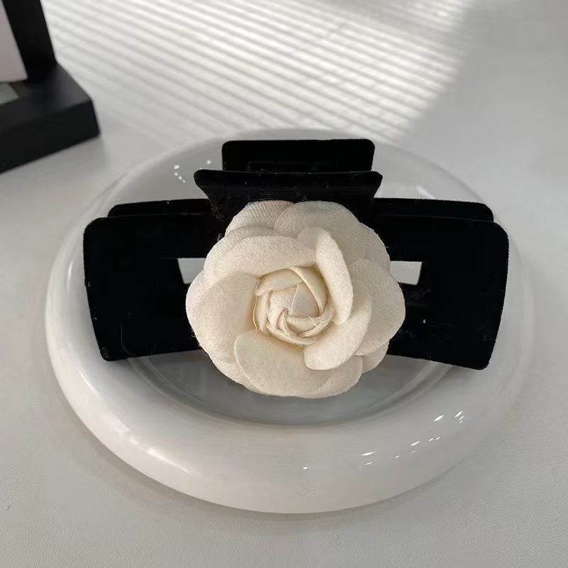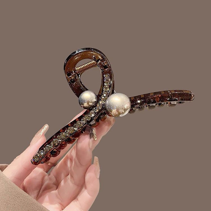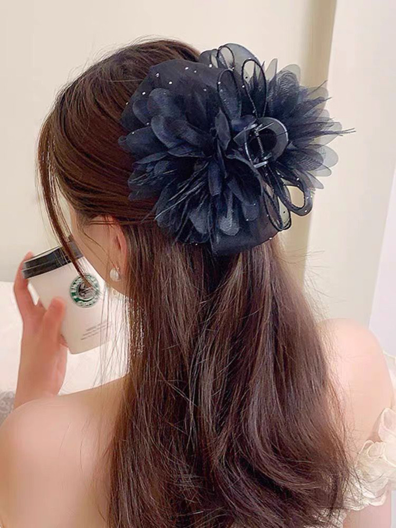 高级感缎面大号黑色蝴蝶结鲨鱼夹头饰方形钻后脑勺发夹抓夹女发卡