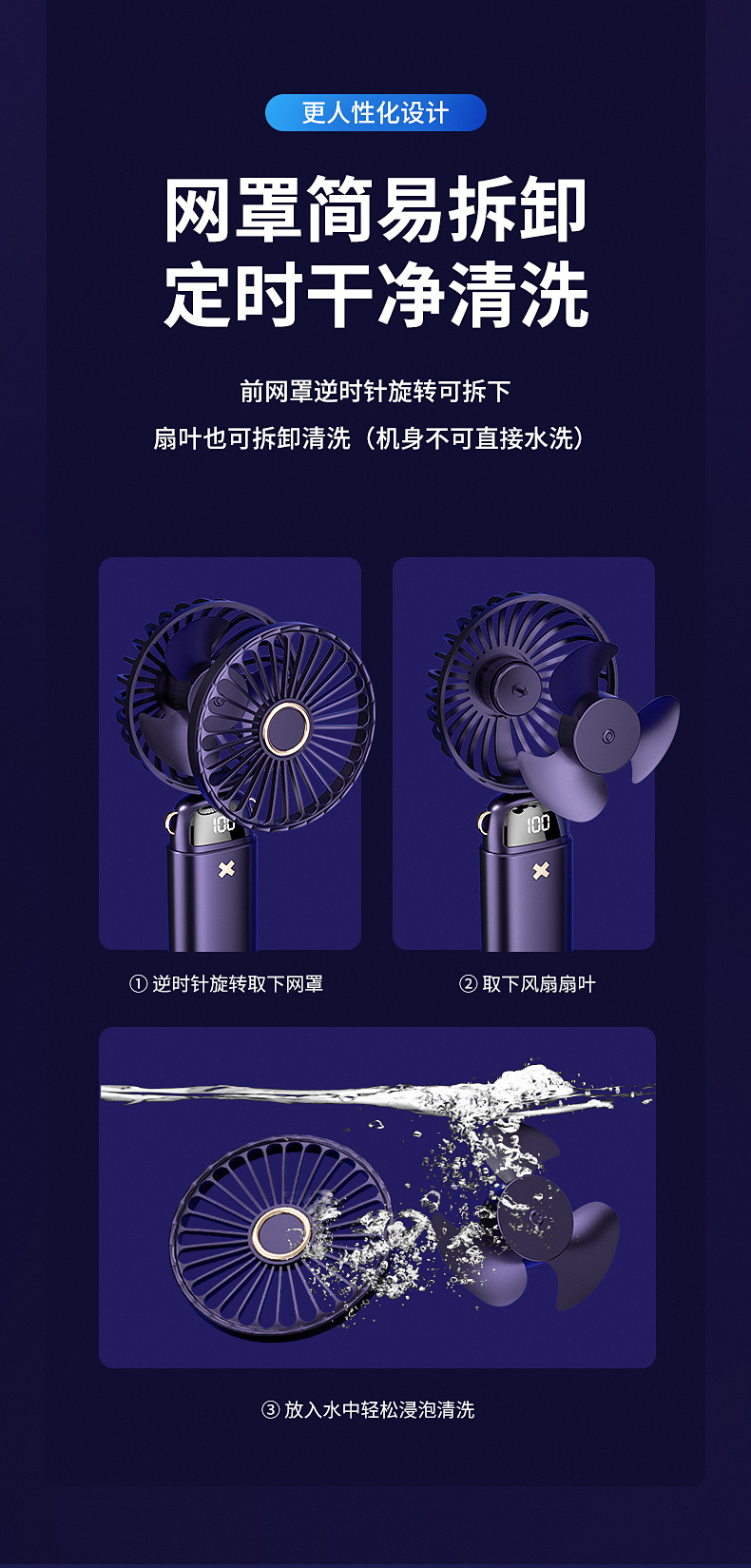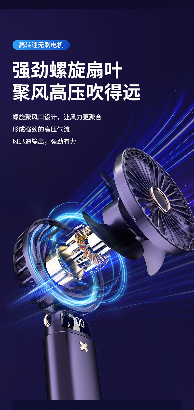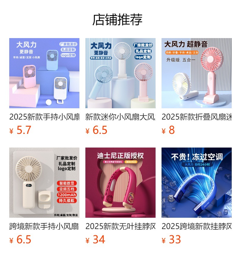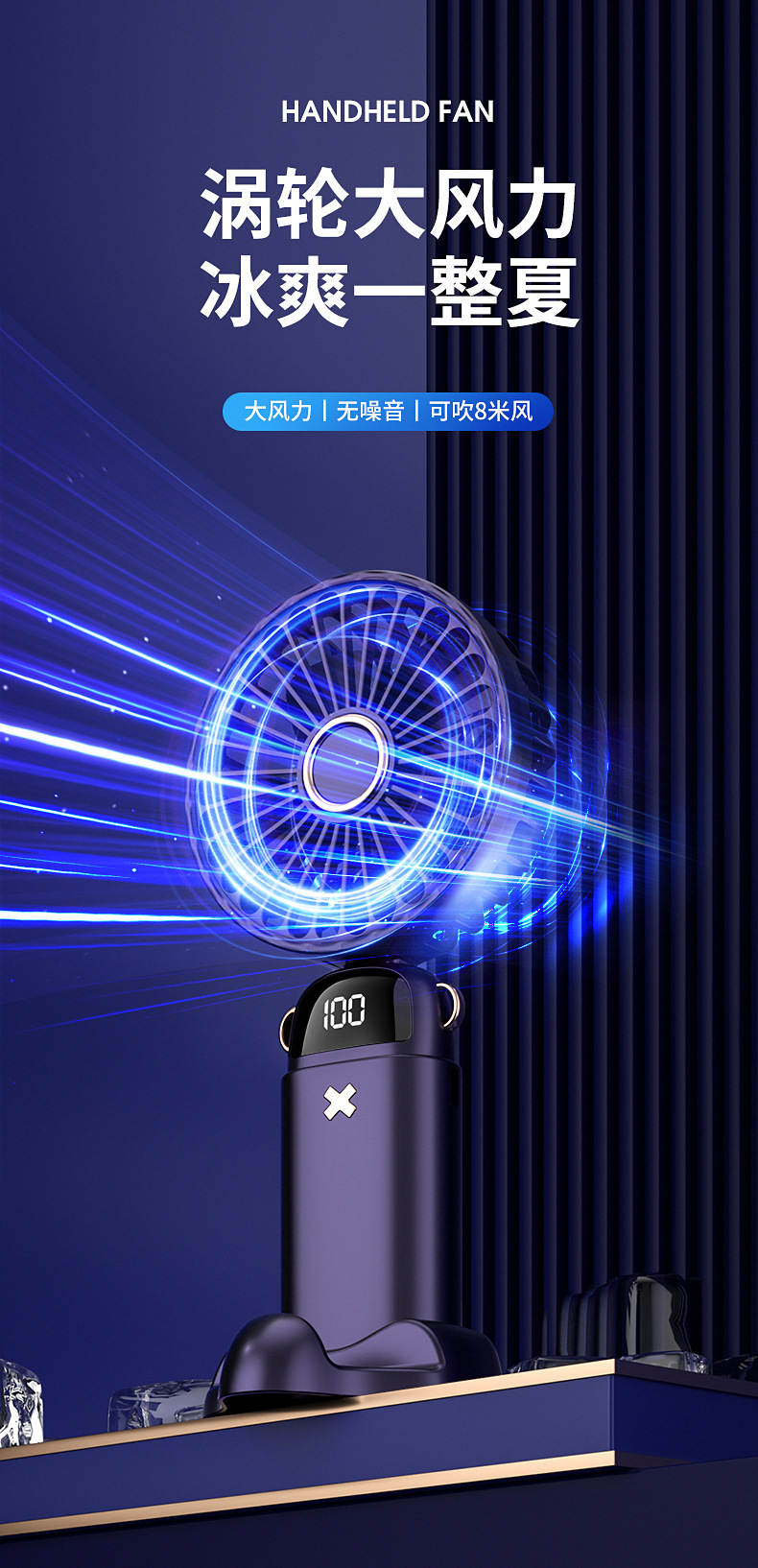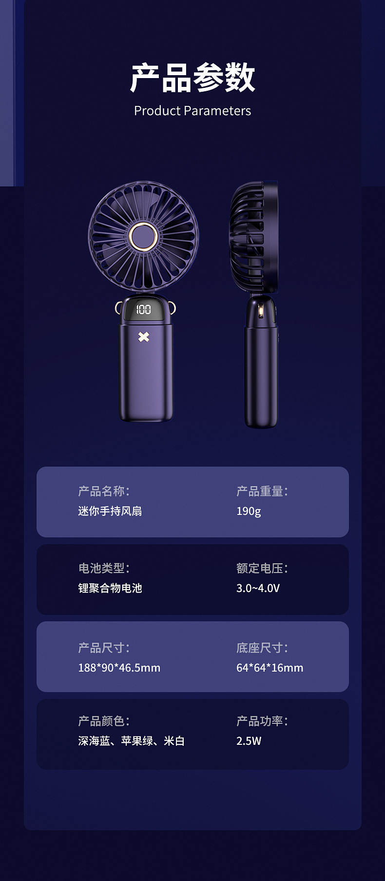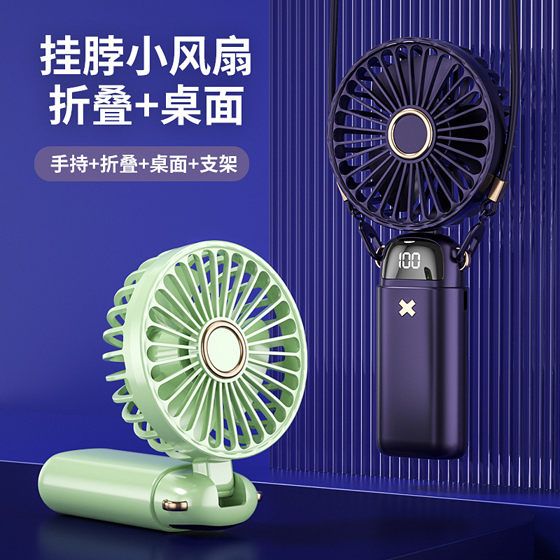 新款手持折叠小风扇usb迷你便携风扇大风力数显多功能挂脖小风扇